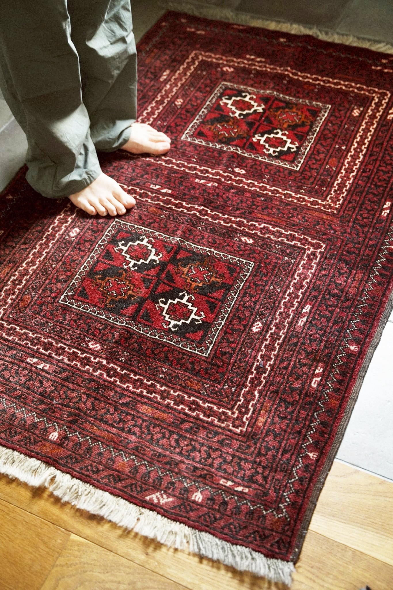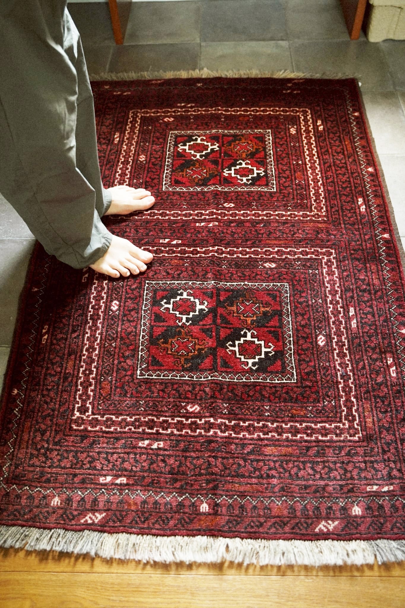 トルクメン族ならではの密度の詰まった細かな織りは肌触りも滑らかで素足で乗るととても気持ち良いです。