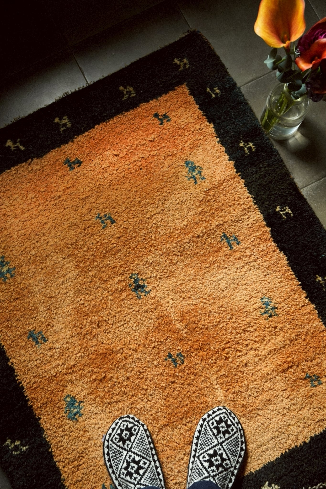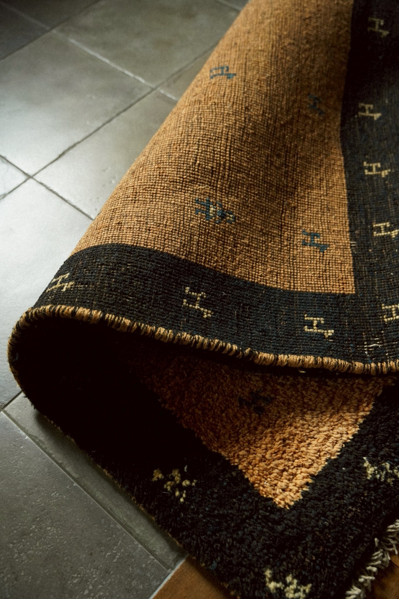 ギャッベの特徴でもあるしっかりとした毛足で踏み心地も柔らかく、リビングやベッドサイドなどお部屋のアクセントにピッタリな一枚。