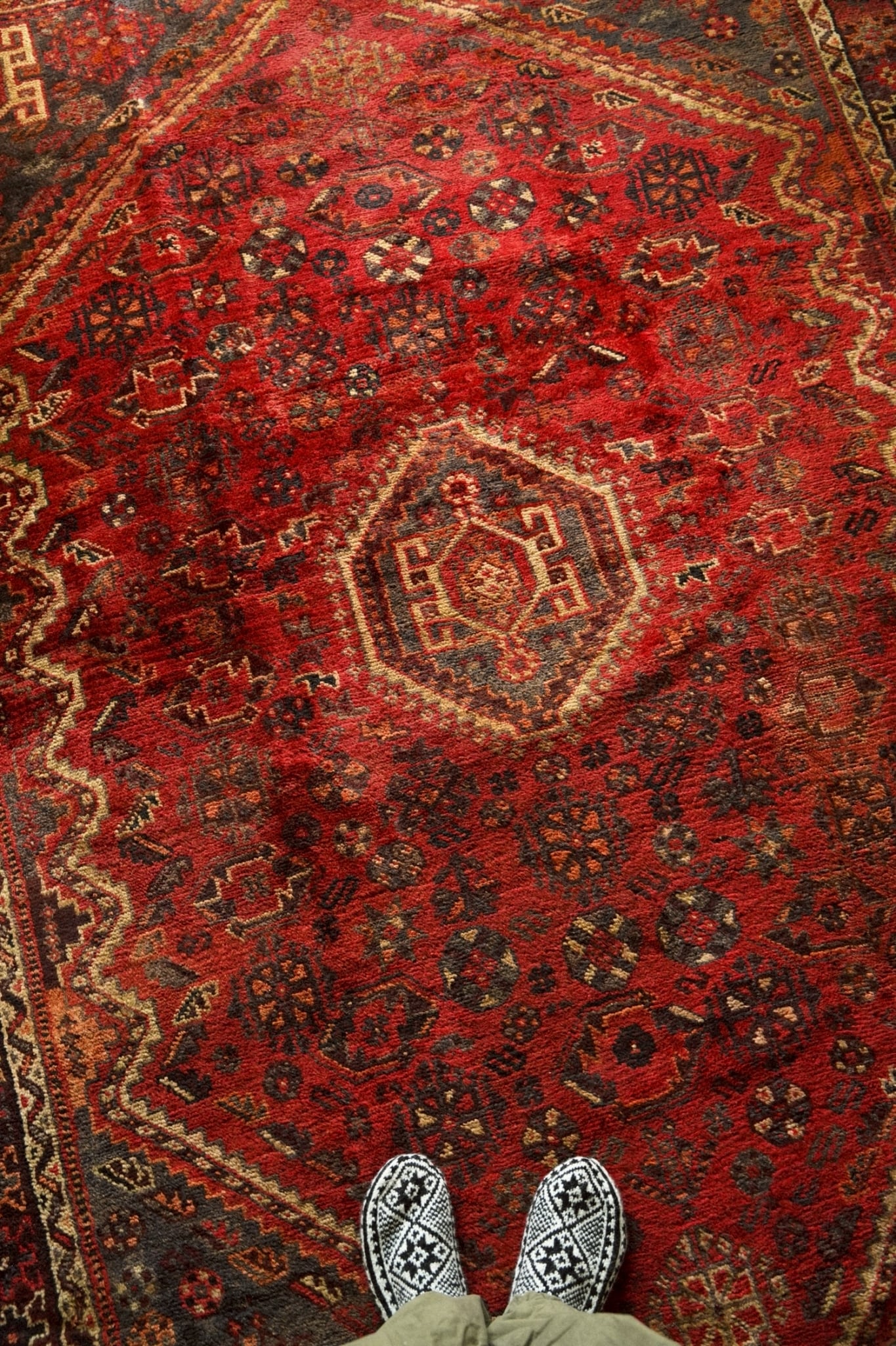 深みのある赤とくすみ感のあるネイビーの組み合わせが美しいカシュガイラグ。