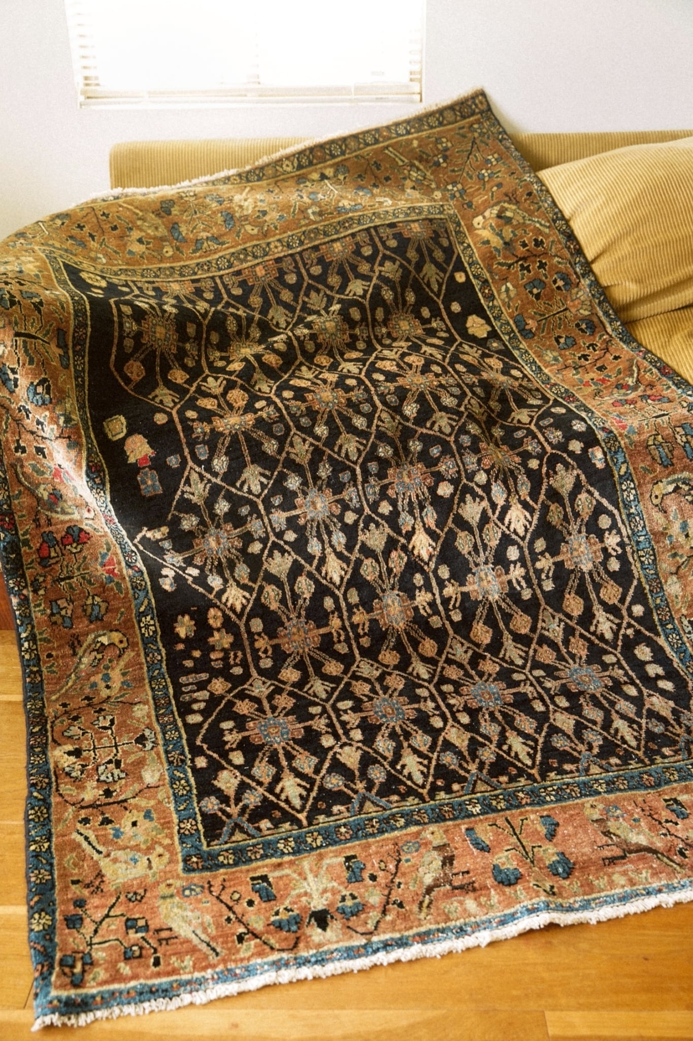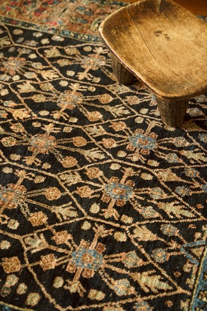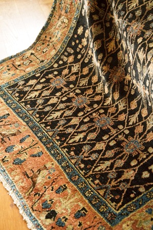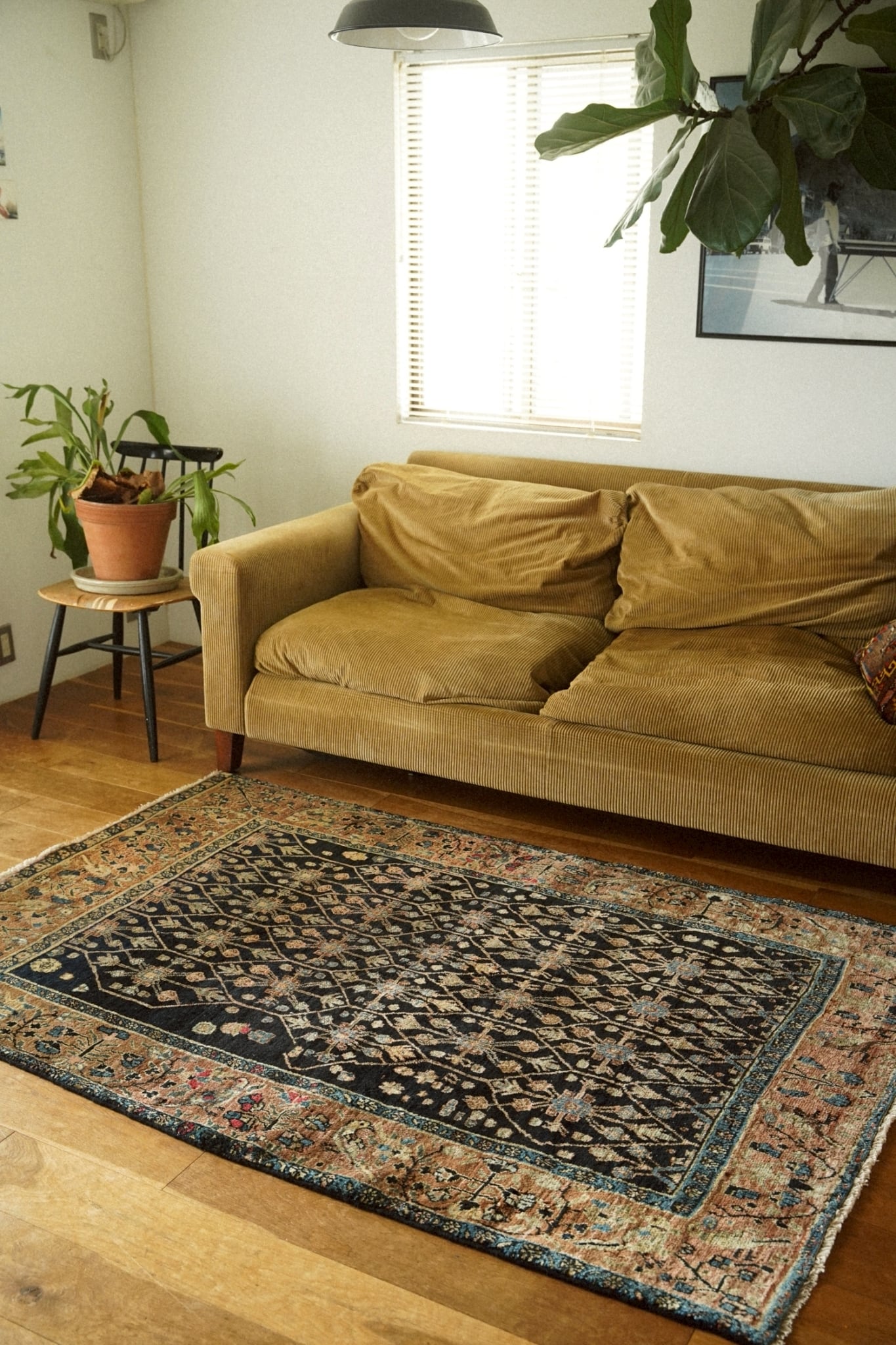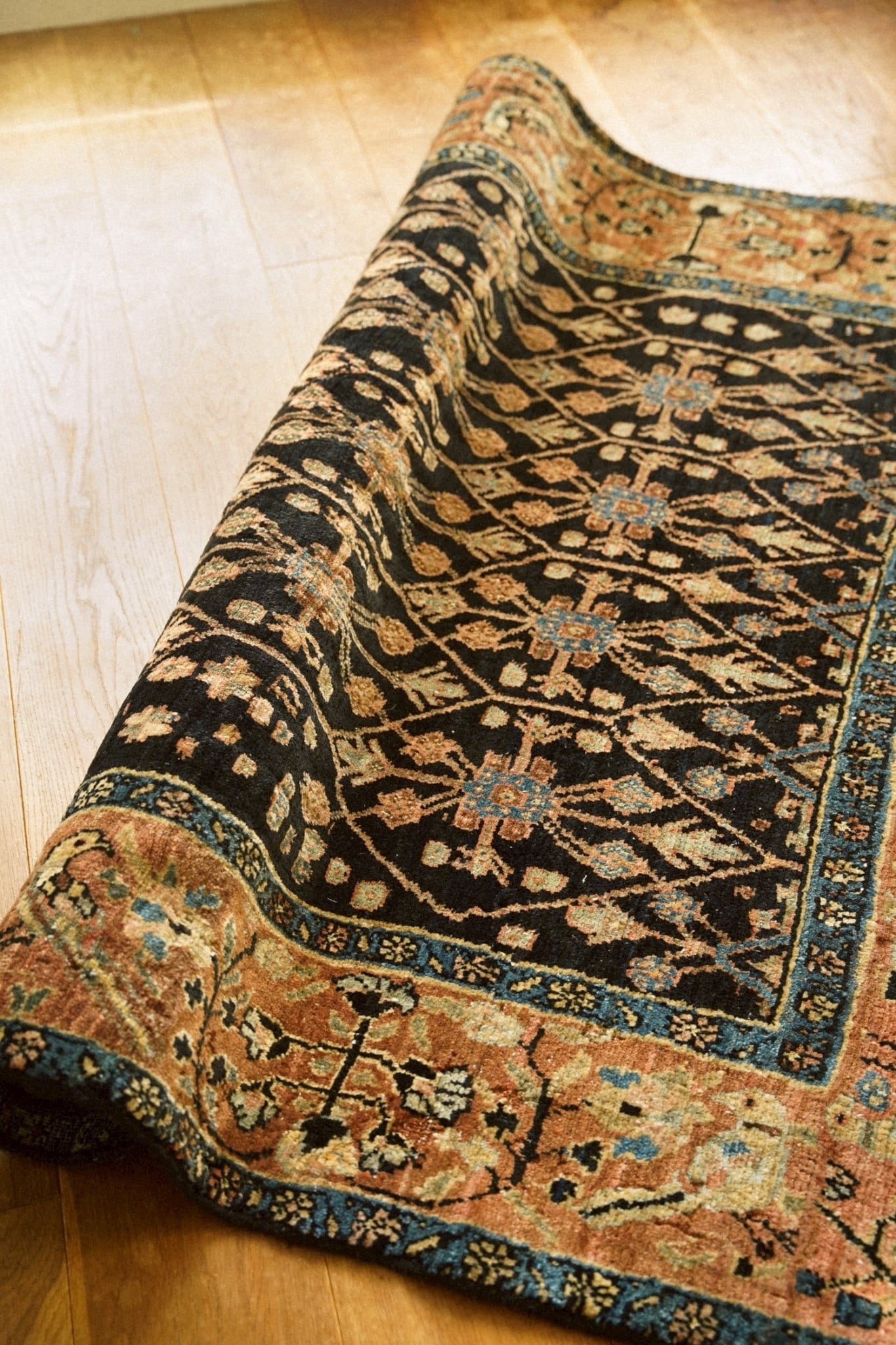 アンティークラグならではの熟成された色味とクラシカルなデザインのバランスが良く、どんな場所に敷こうか考えるだけでワクワクしますね♪