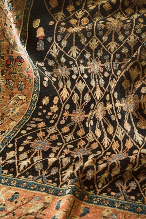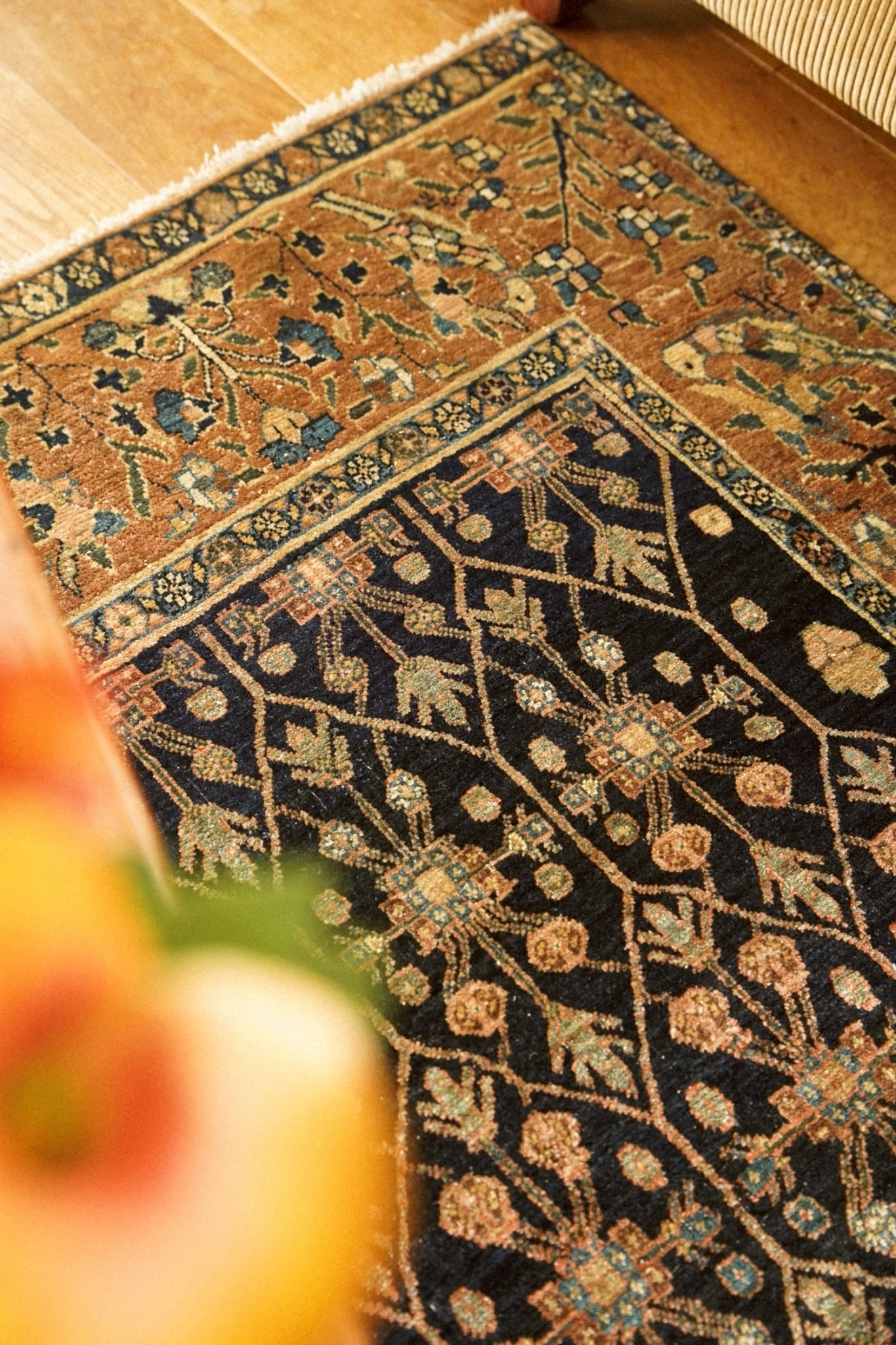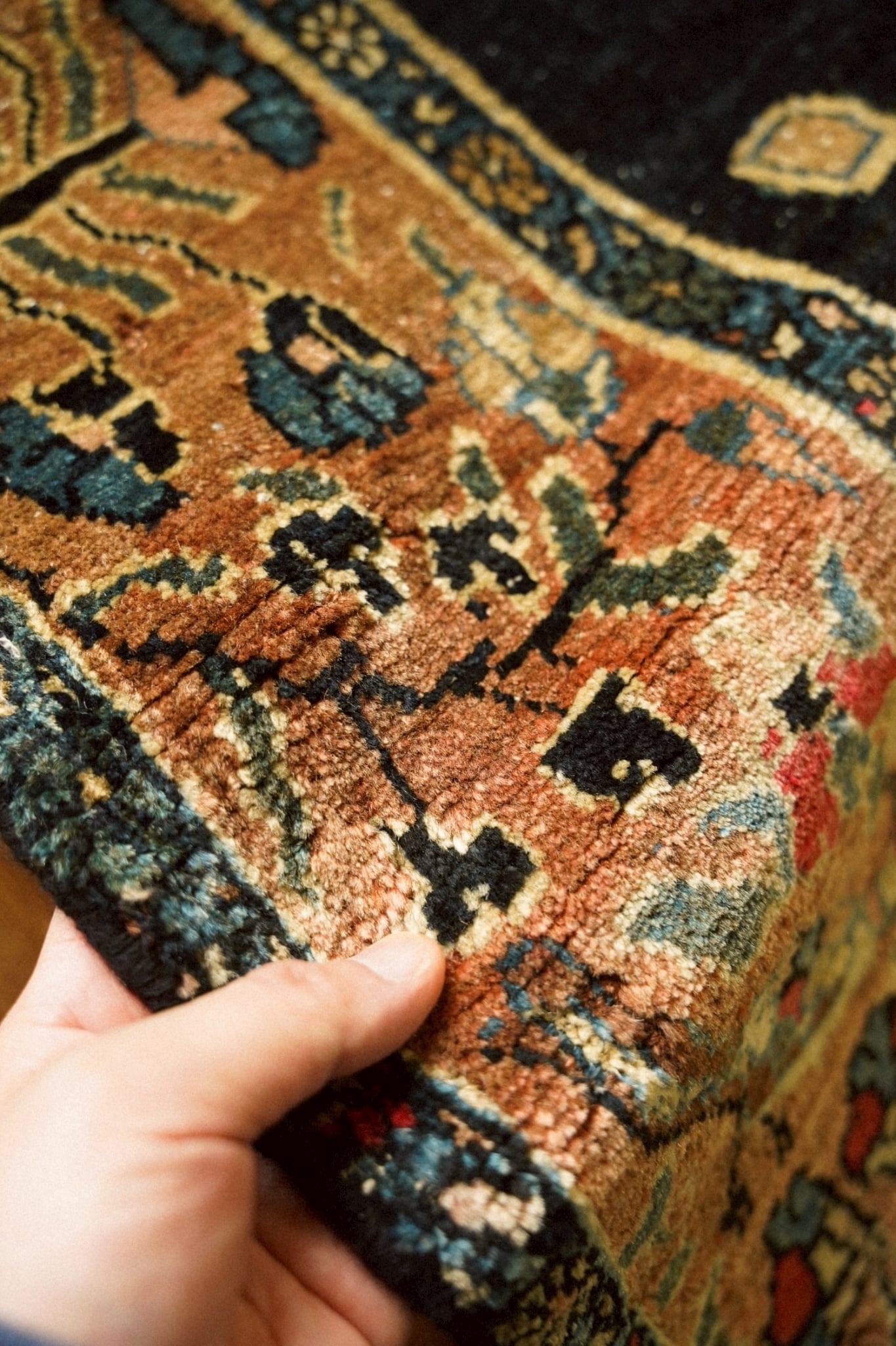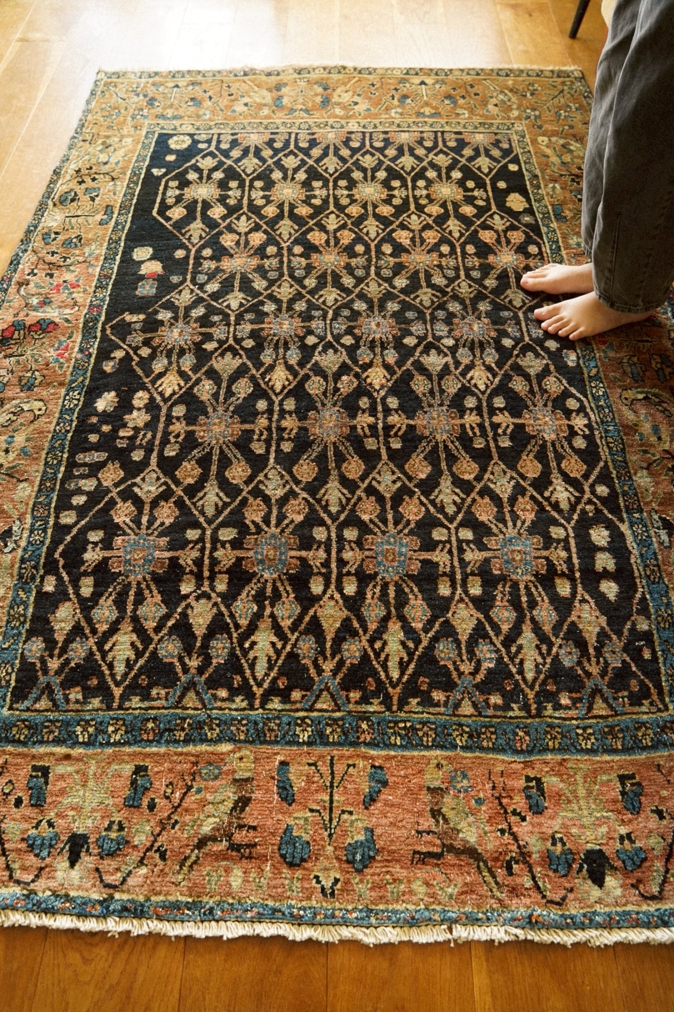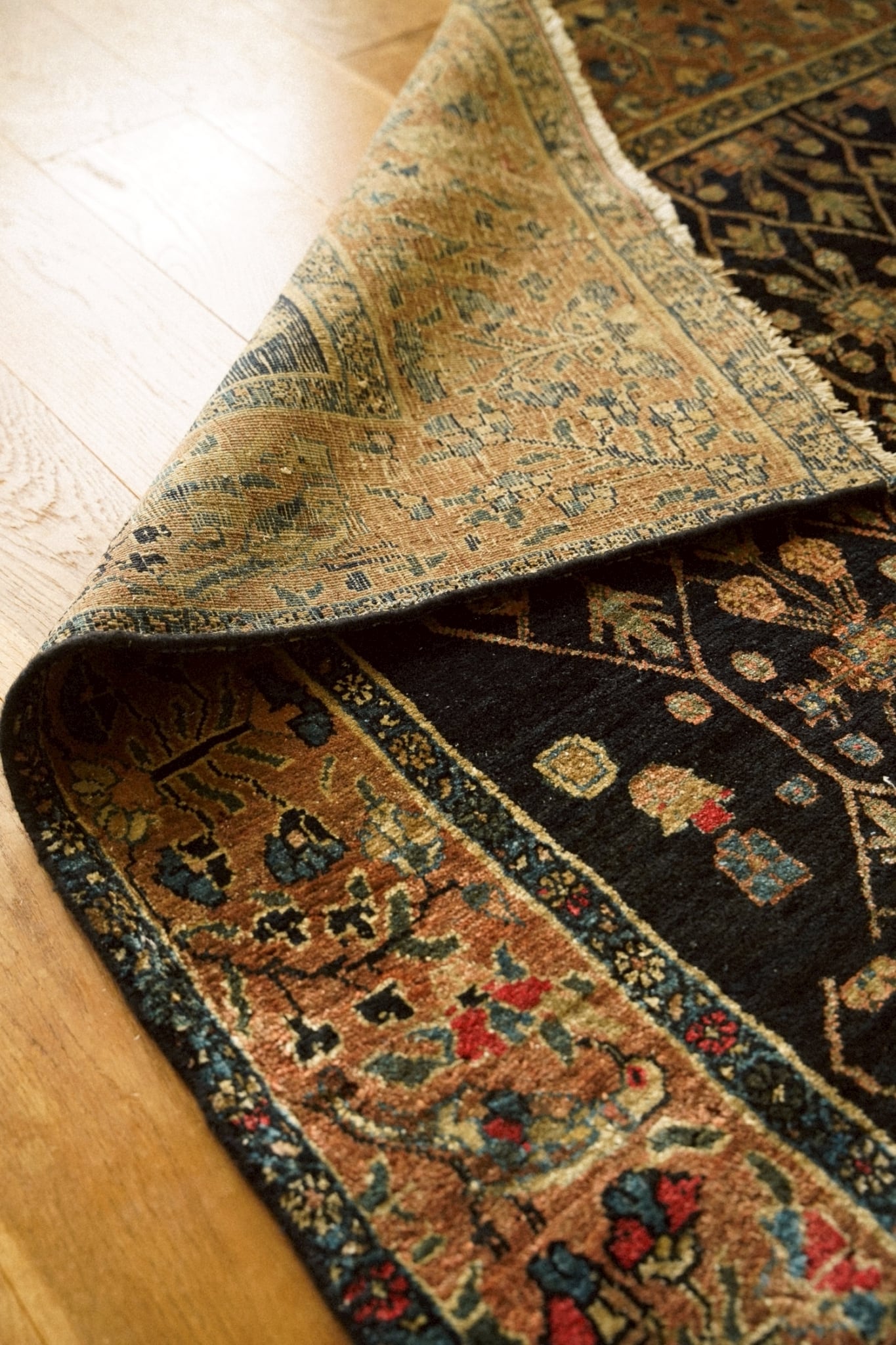 アンティークラグならではの熟成された色味とクラシカルなデザインのバランスが良く、どんな場所に敷こうか考えるだけでワクワクしますね♪