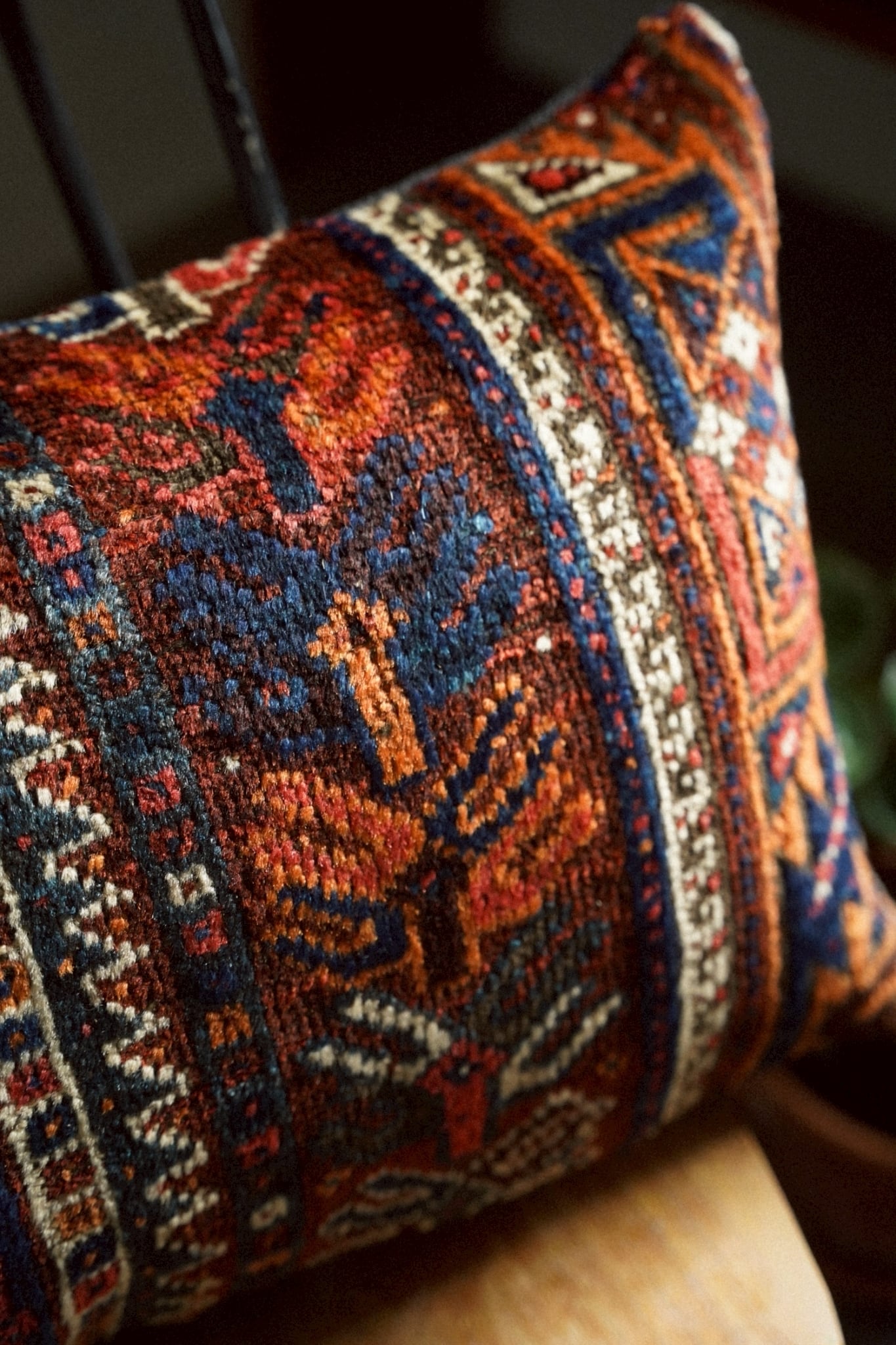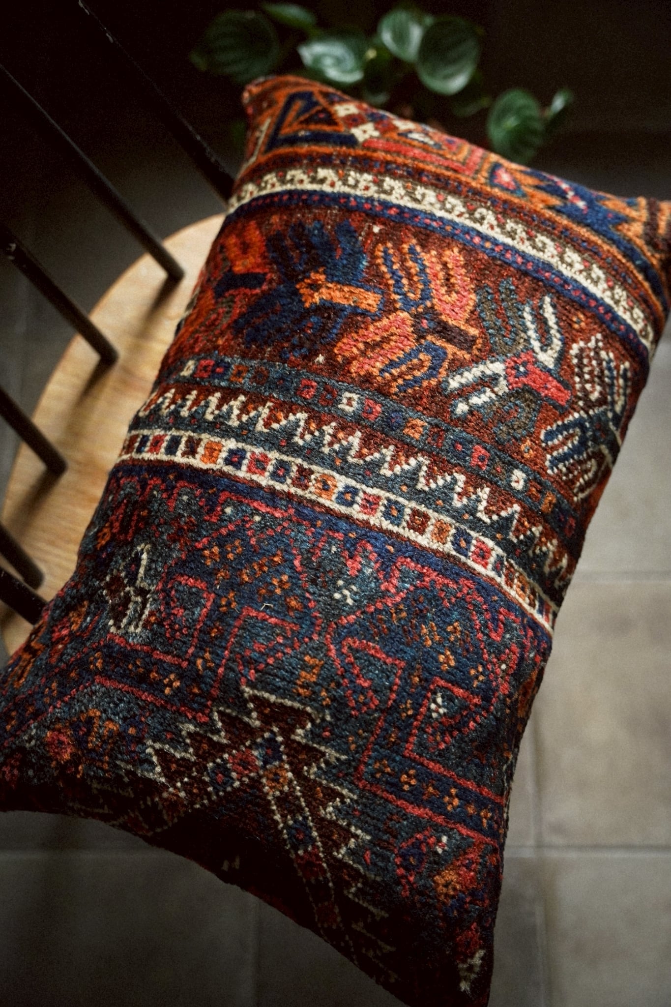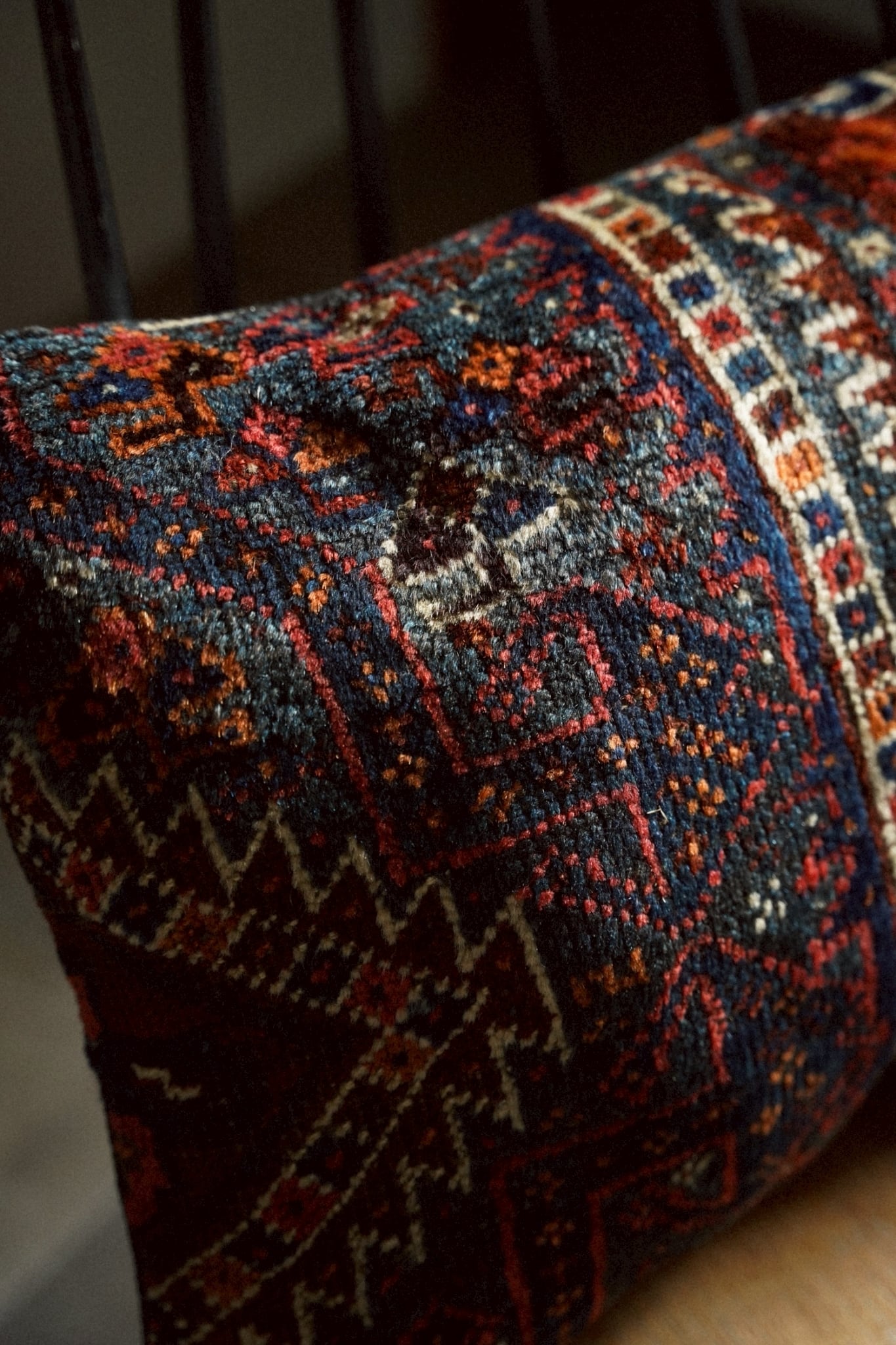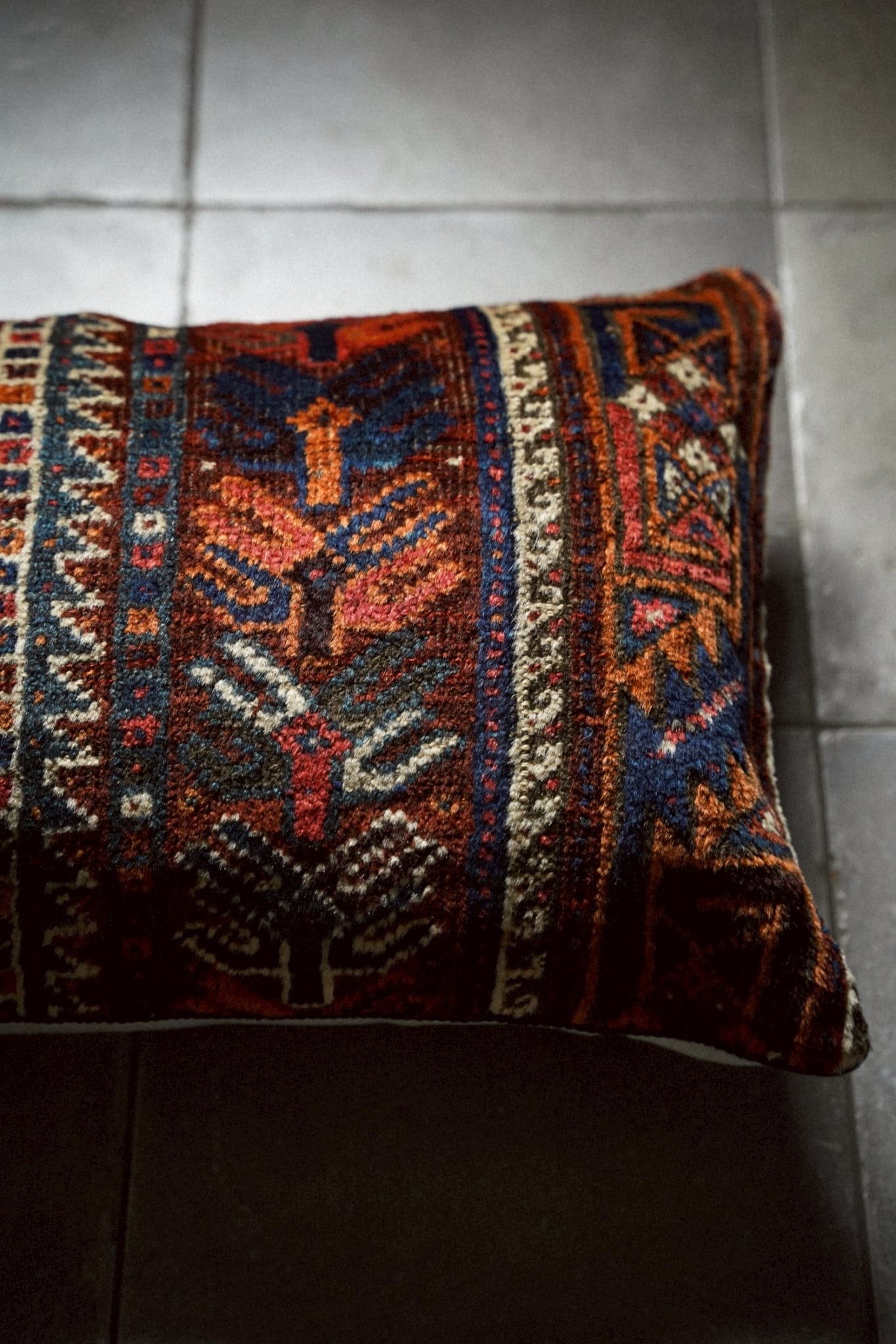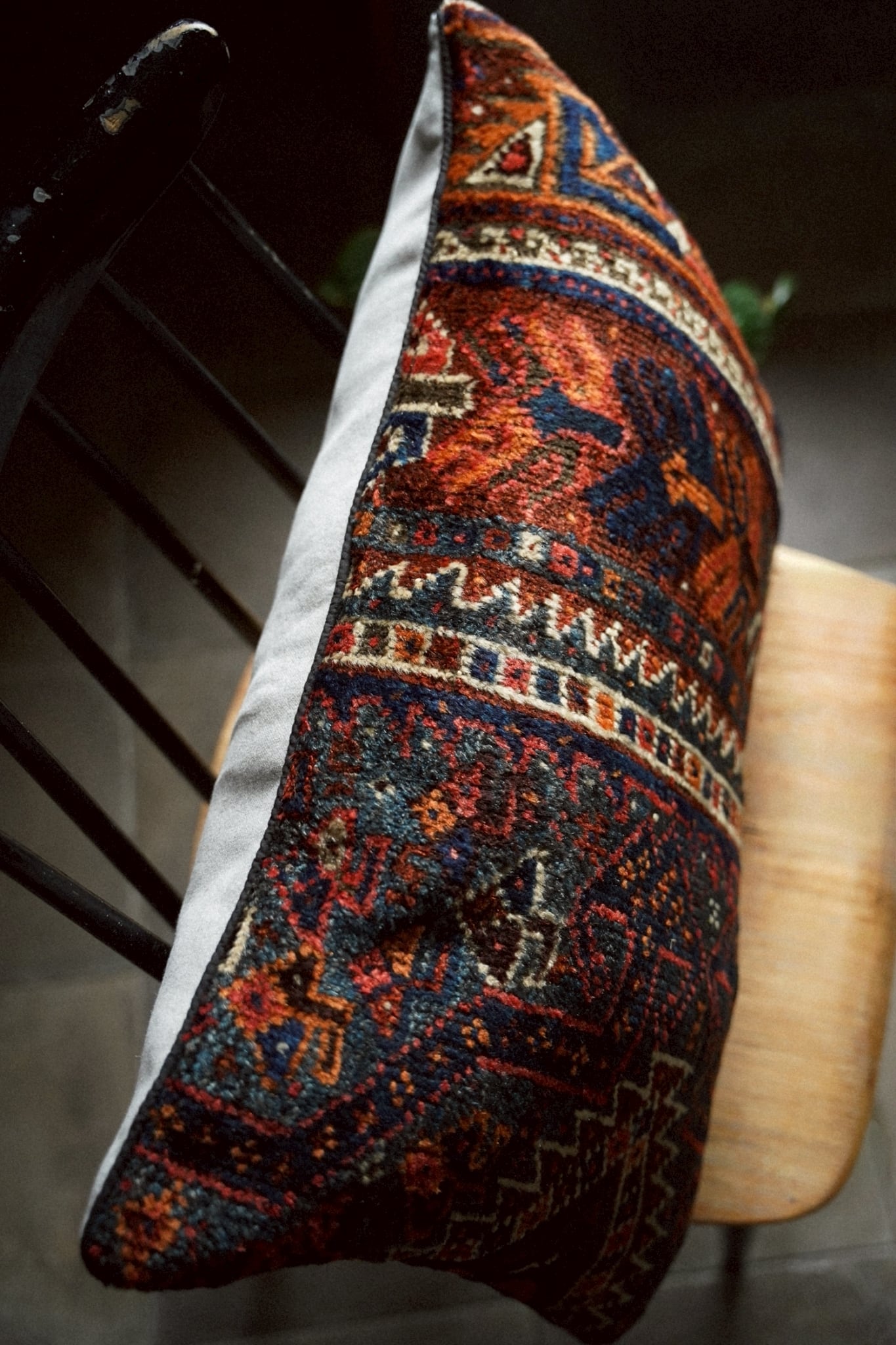 ハムセ連合によって約80年前に織られたアンティークラグを再利用して作られたクッションカバー。