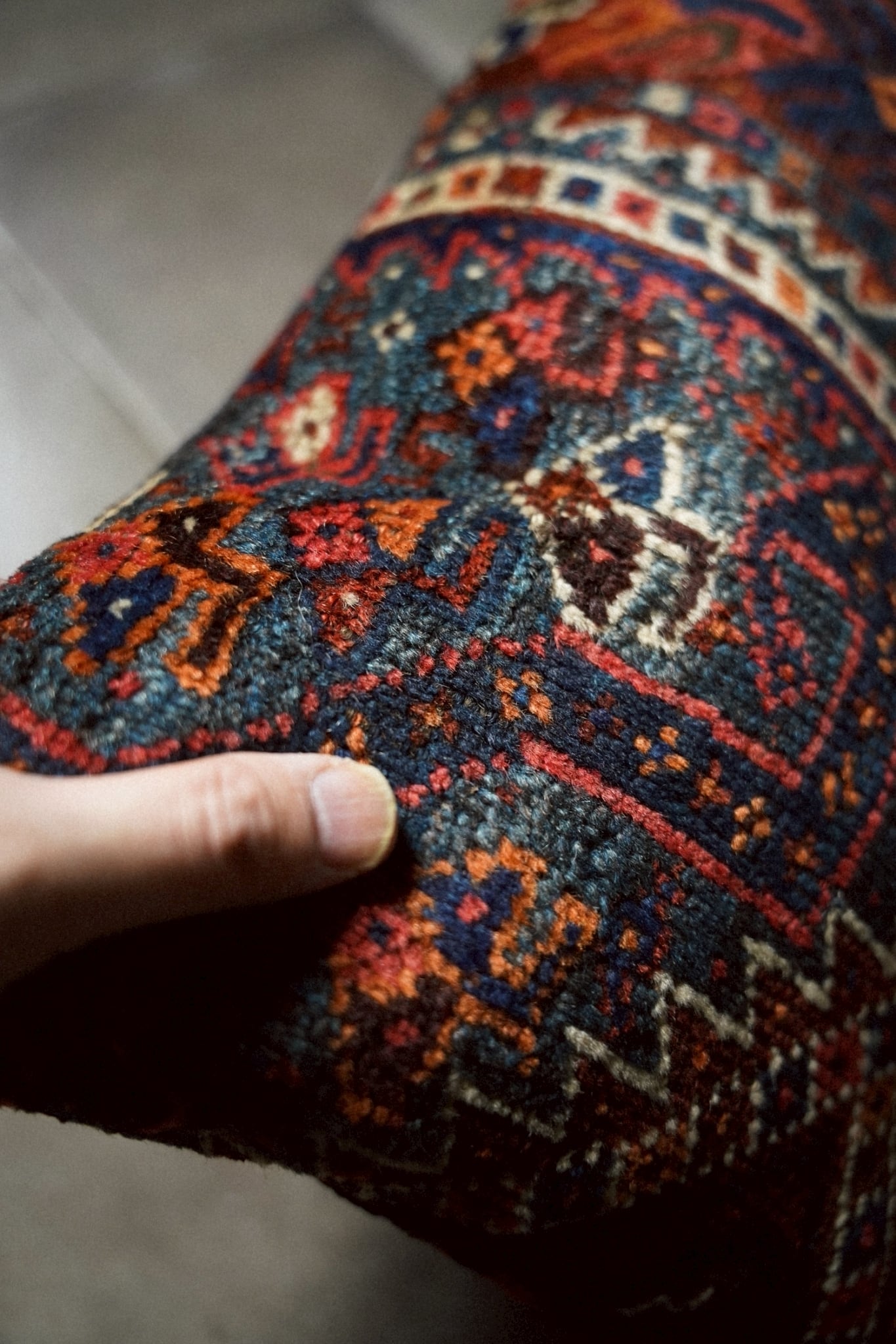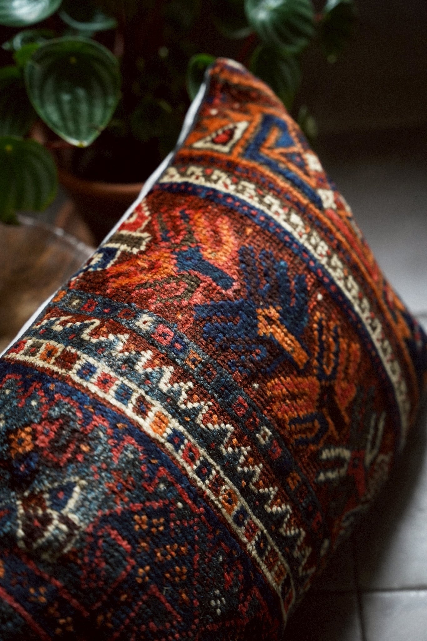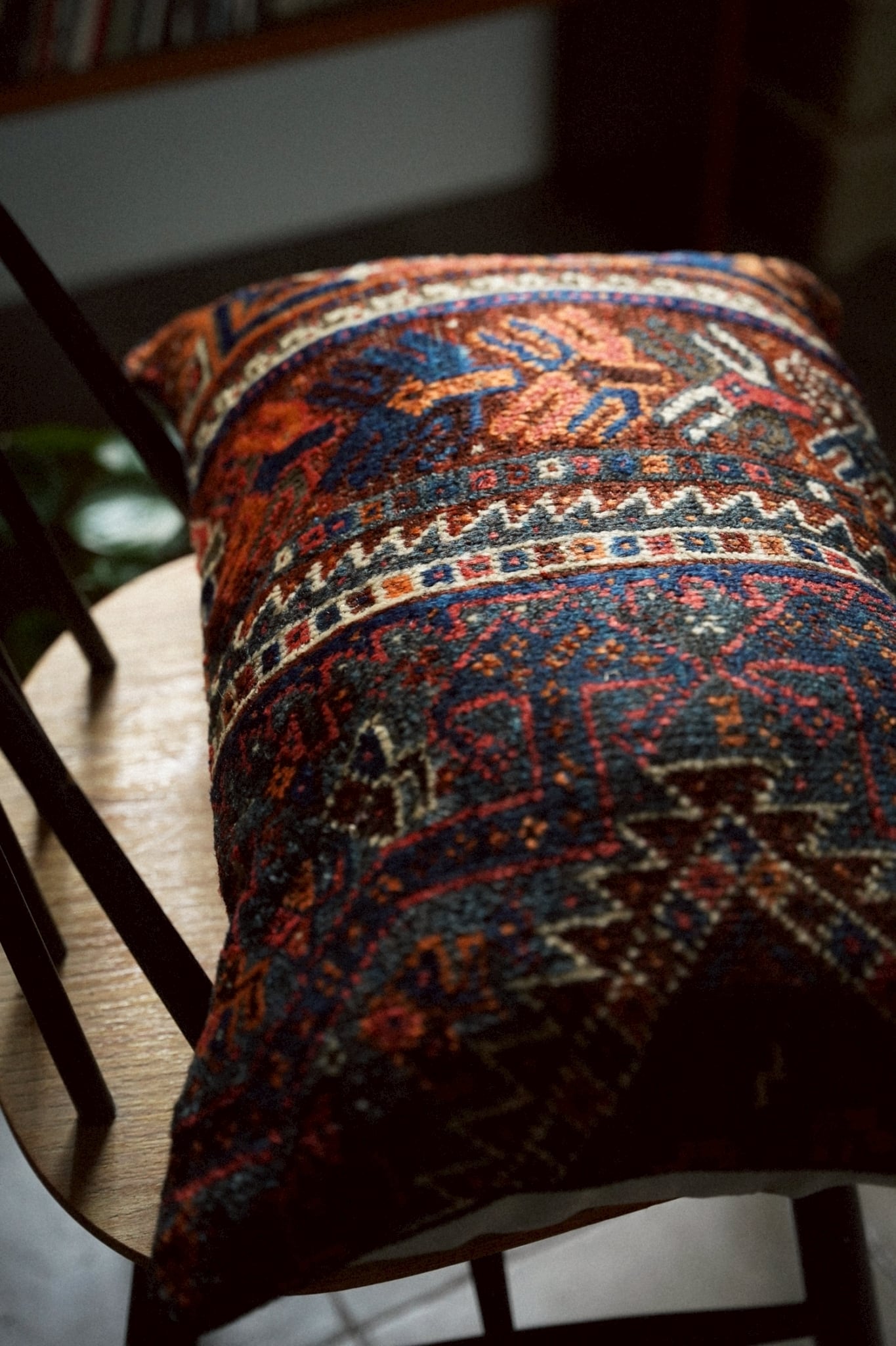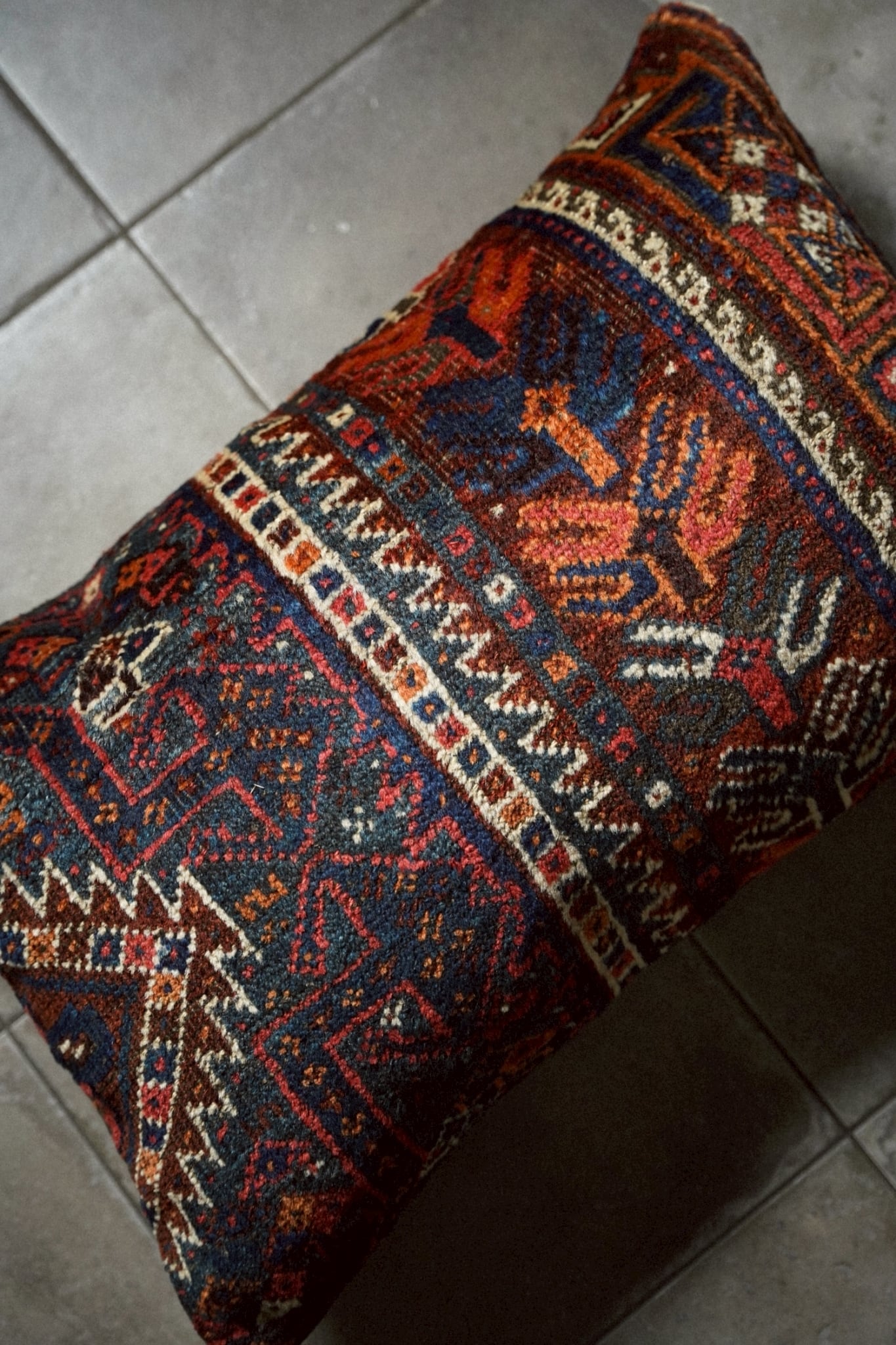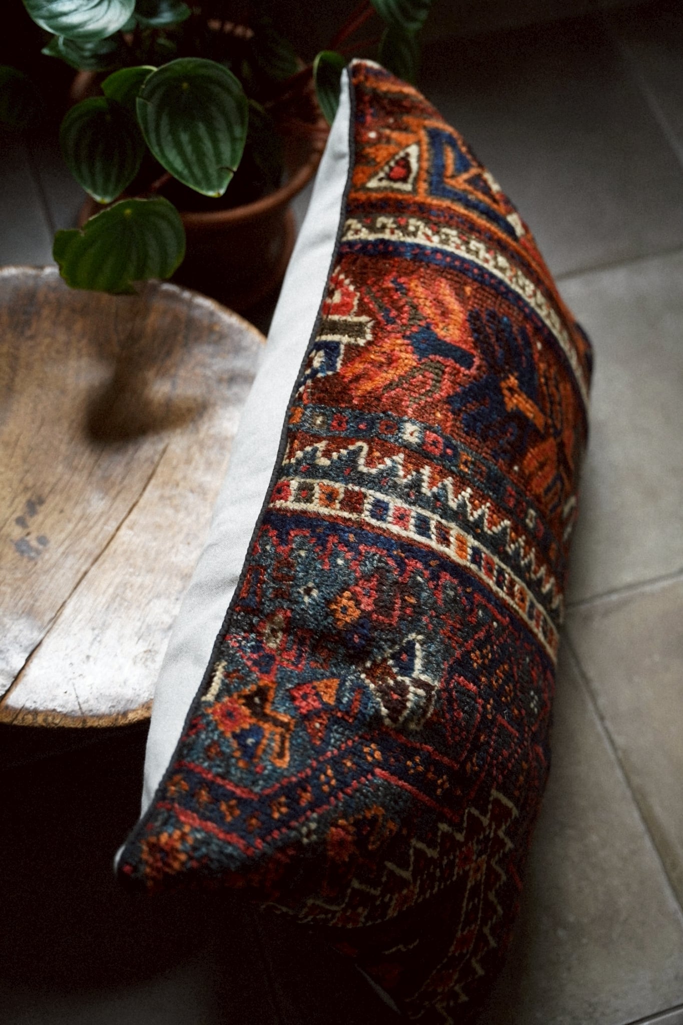 ハムセ連合によって約80年前に織られたアンティークラグを再利用して作られたクッションカバー。
