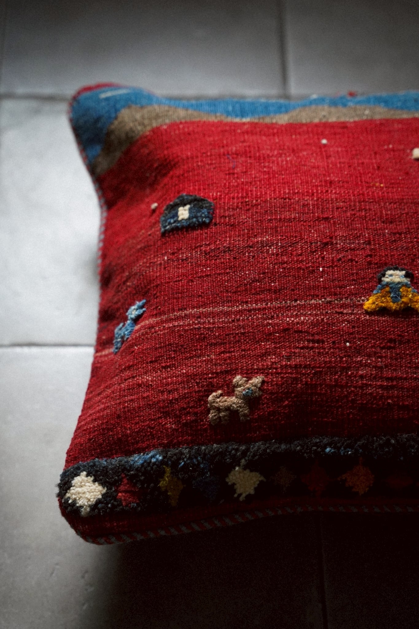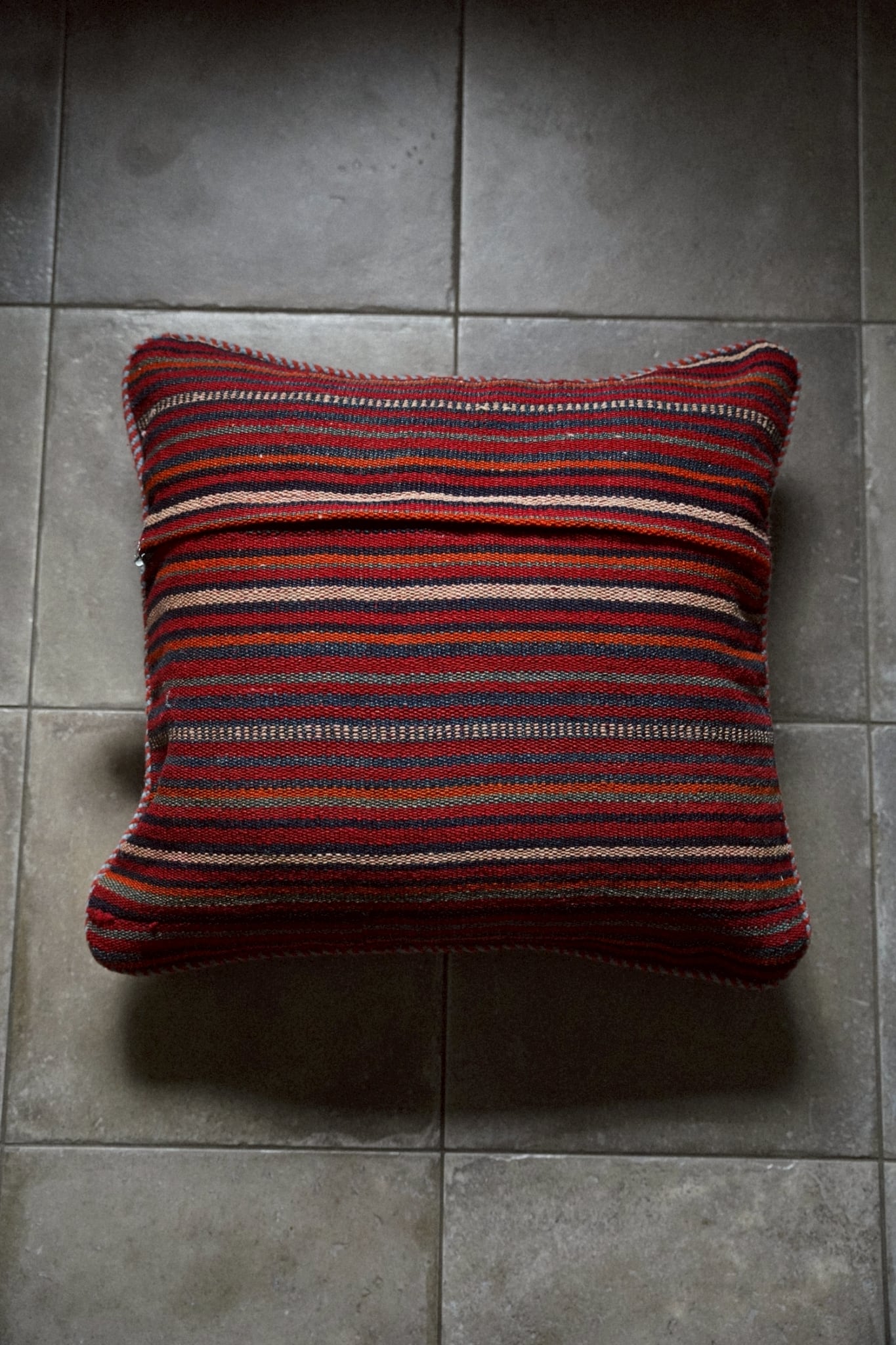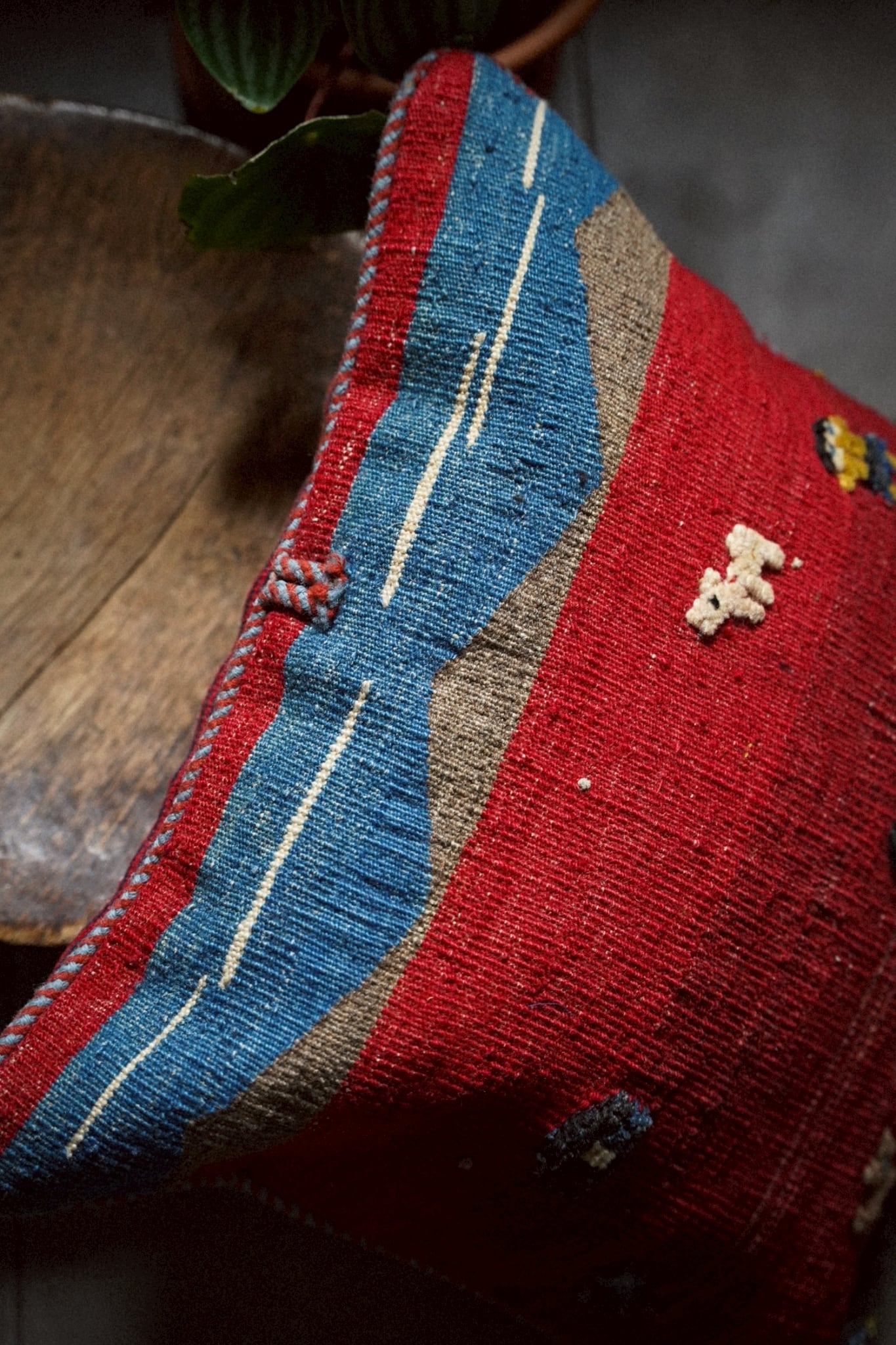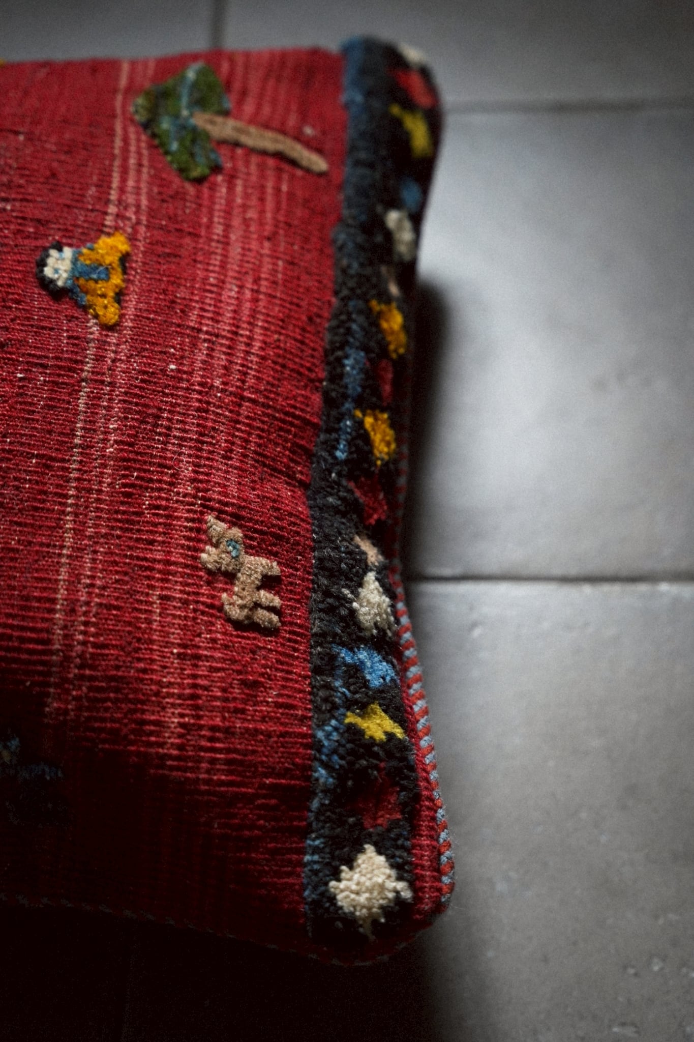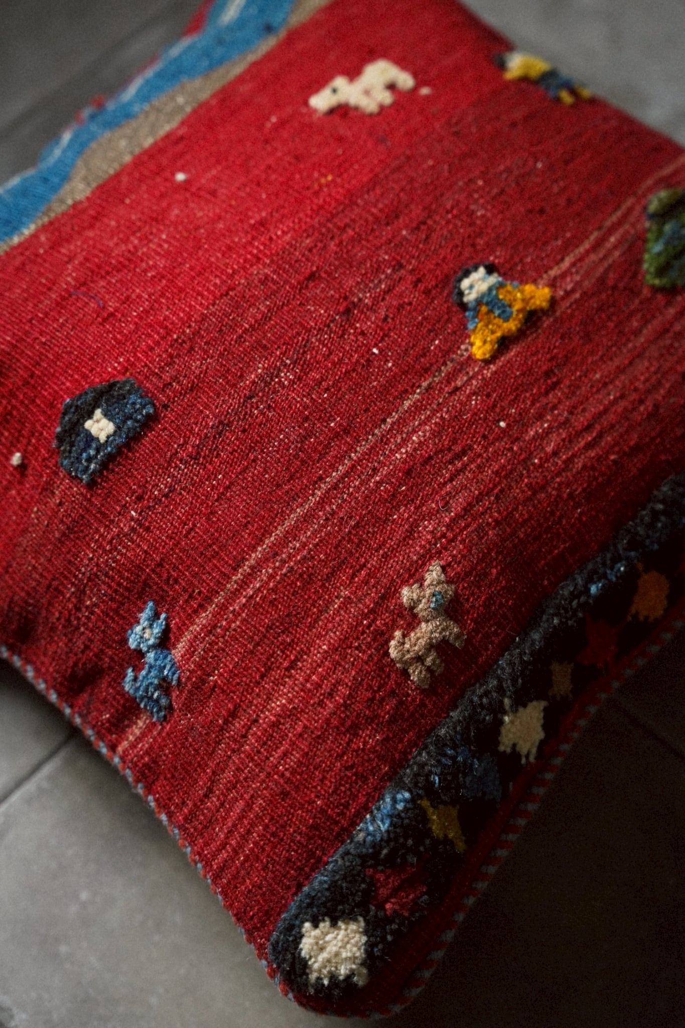 アフガニスタンで織られたヴィンテージキリムを用いたクッションカバー。
