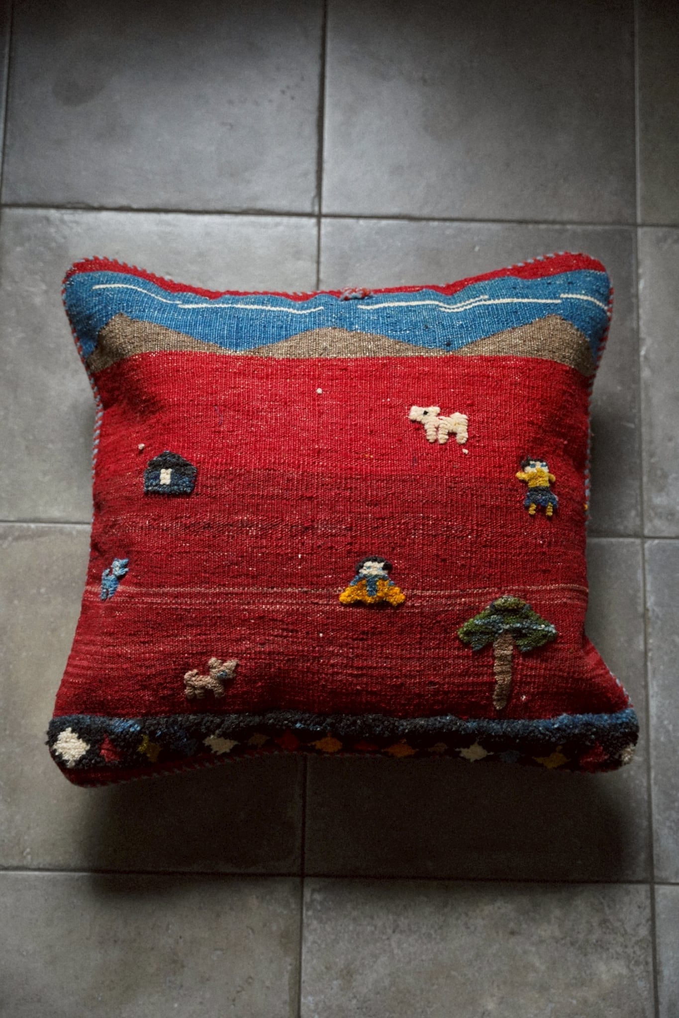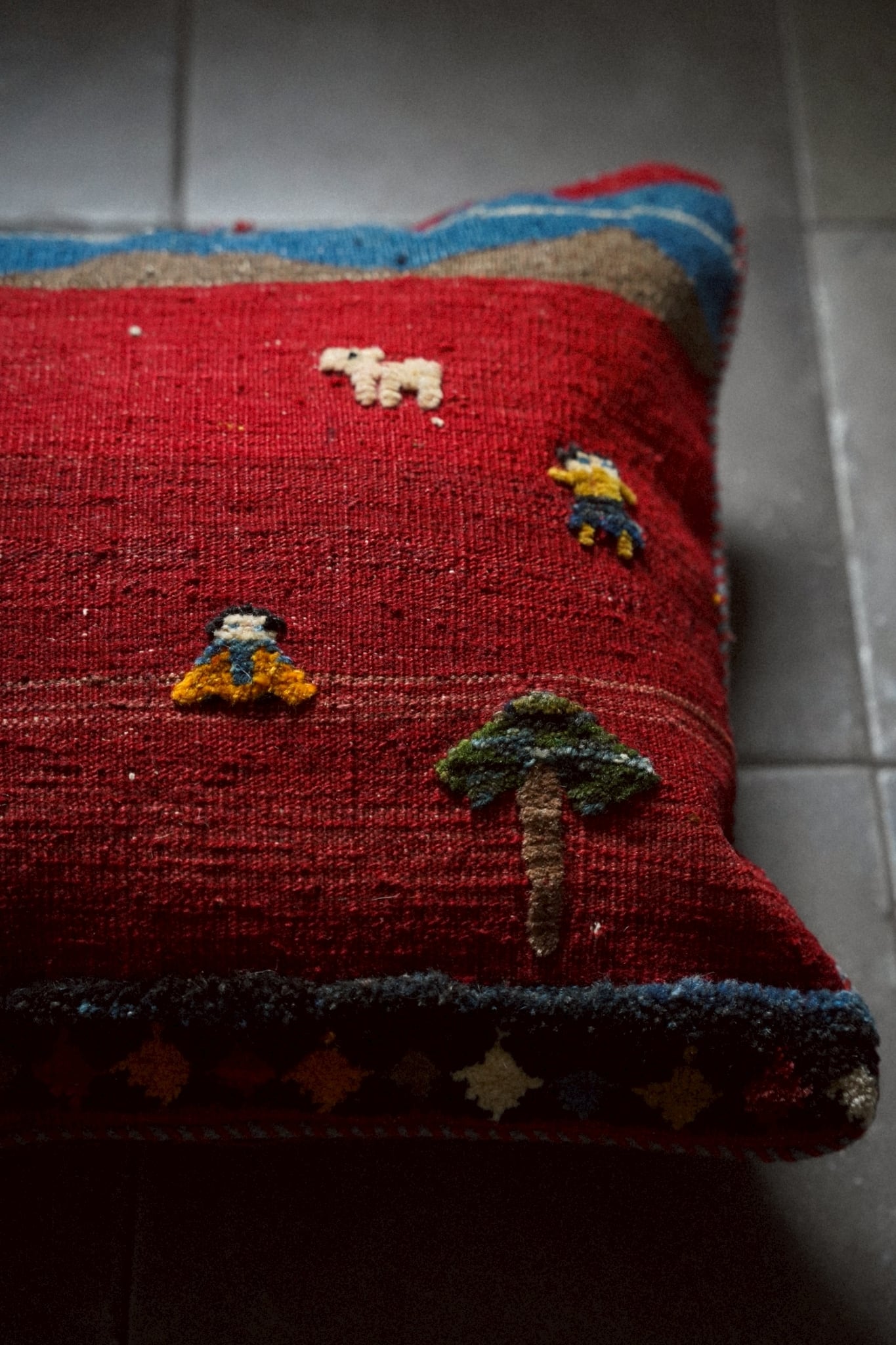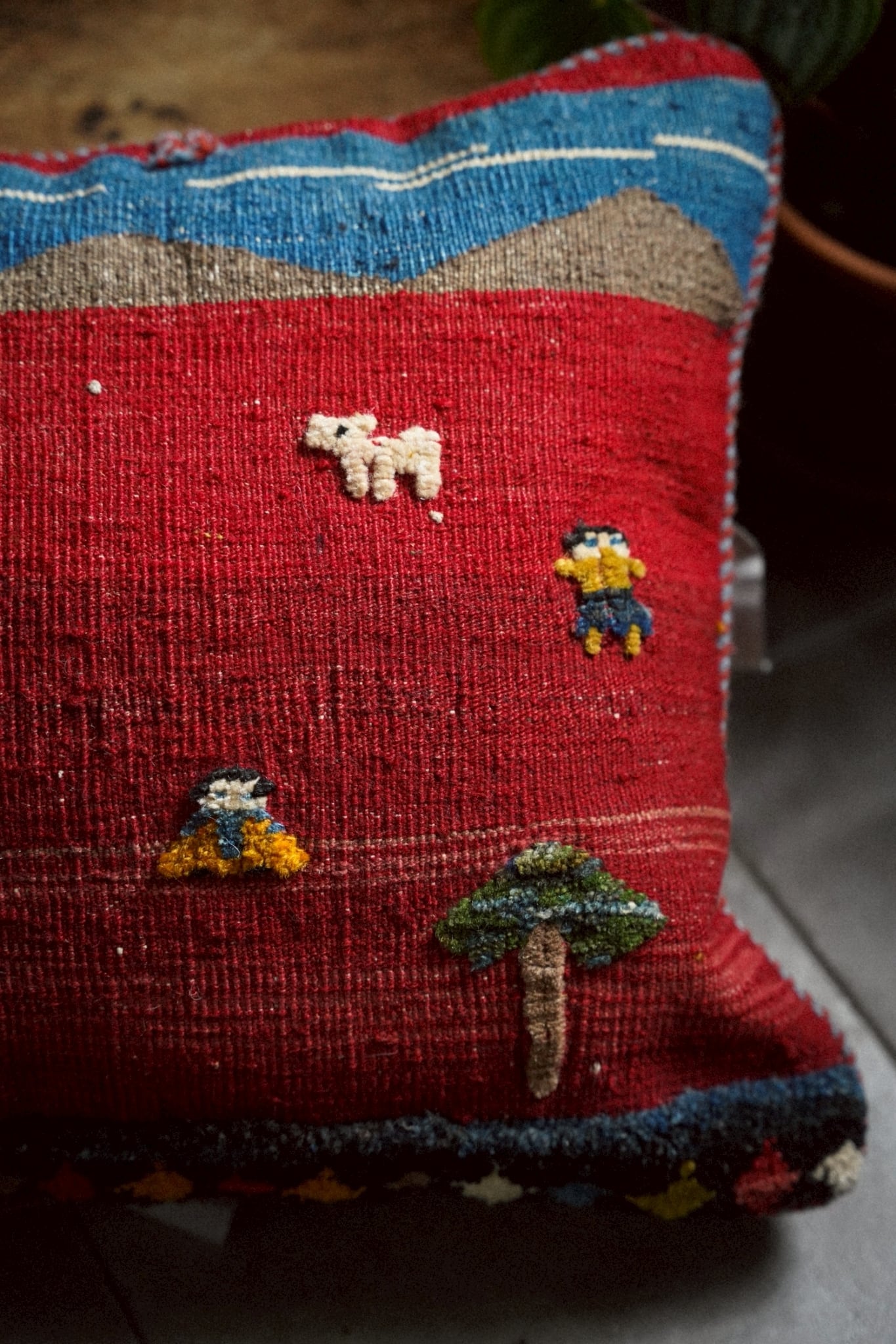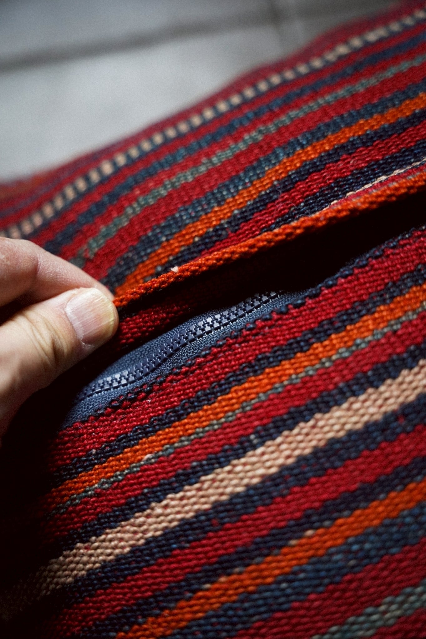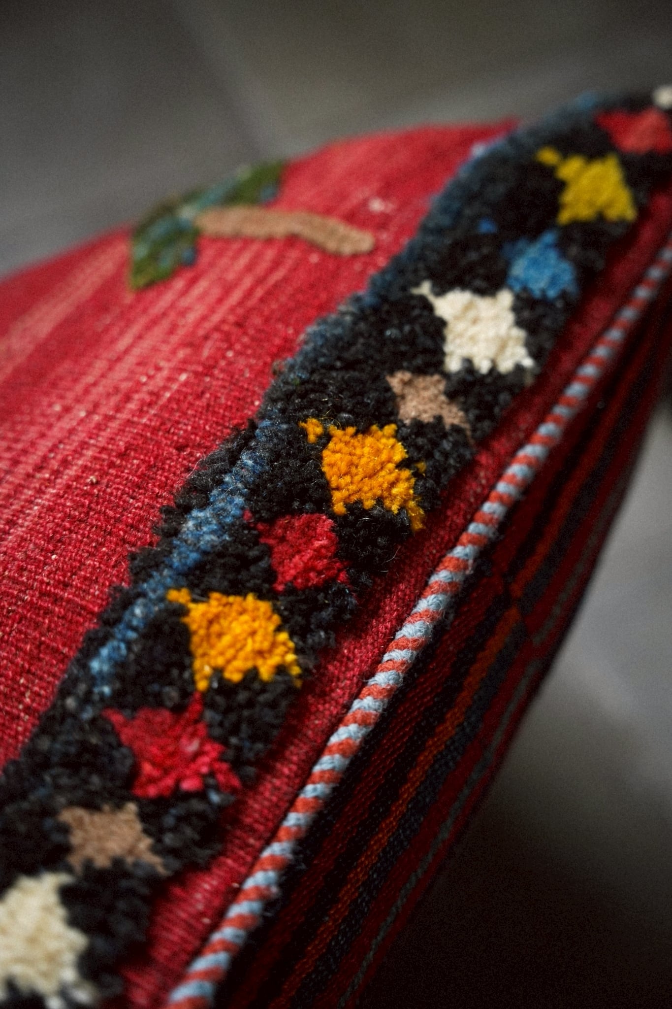 アフガニスタンで織られたヴィンテージキリムを用いたクッションカバー。