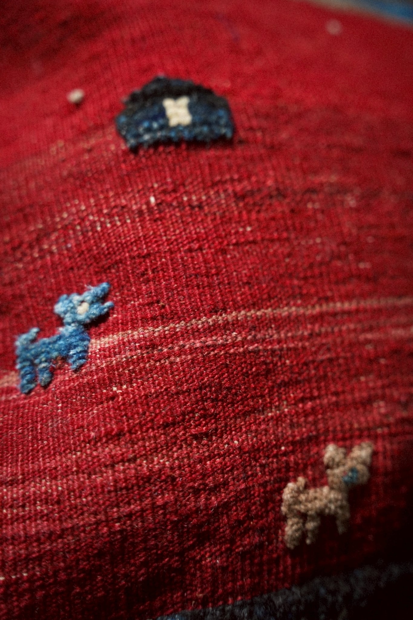 手織りならではの素朴な風合いと、経年によって落ち着いた色味が魅力。