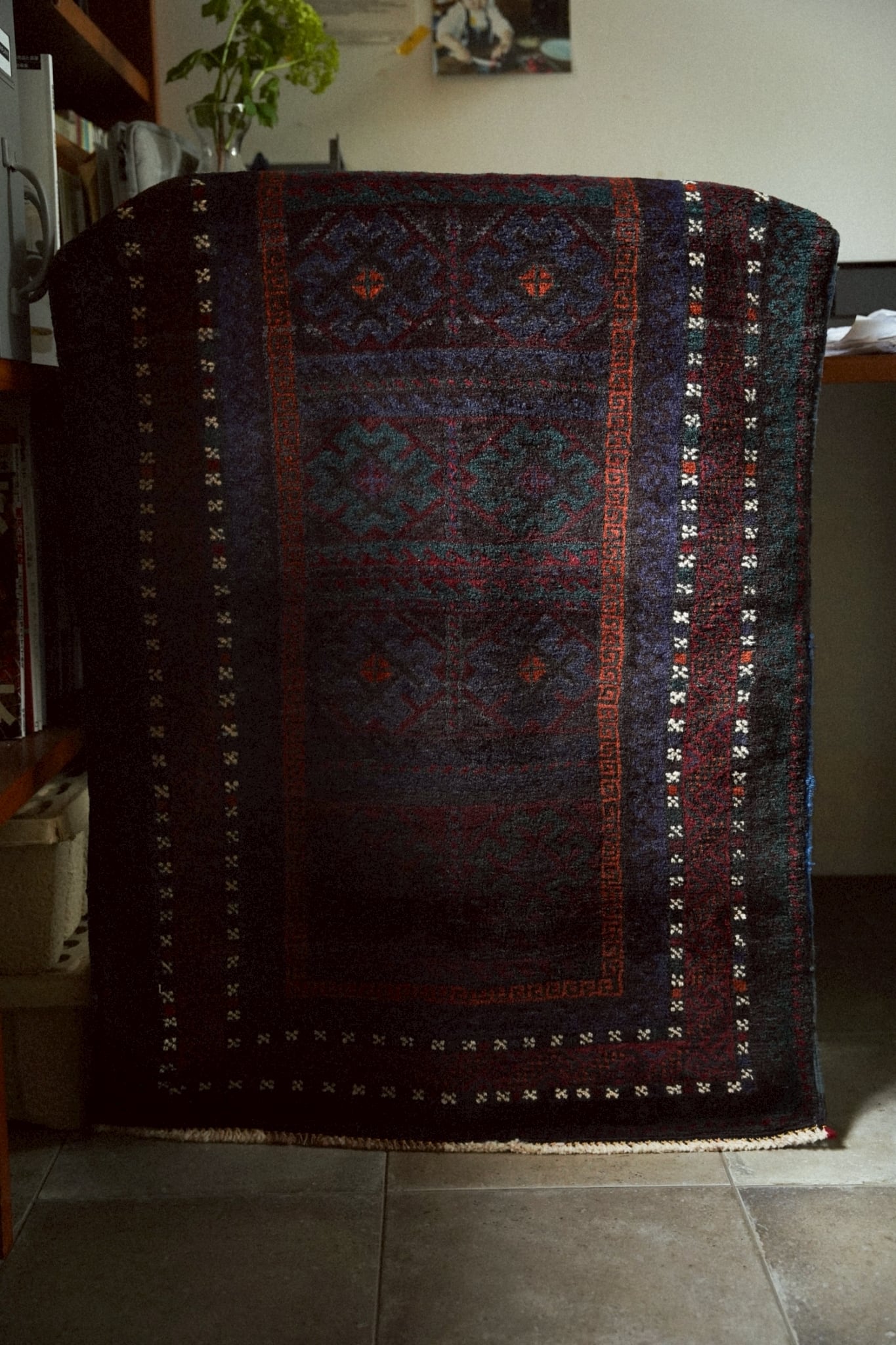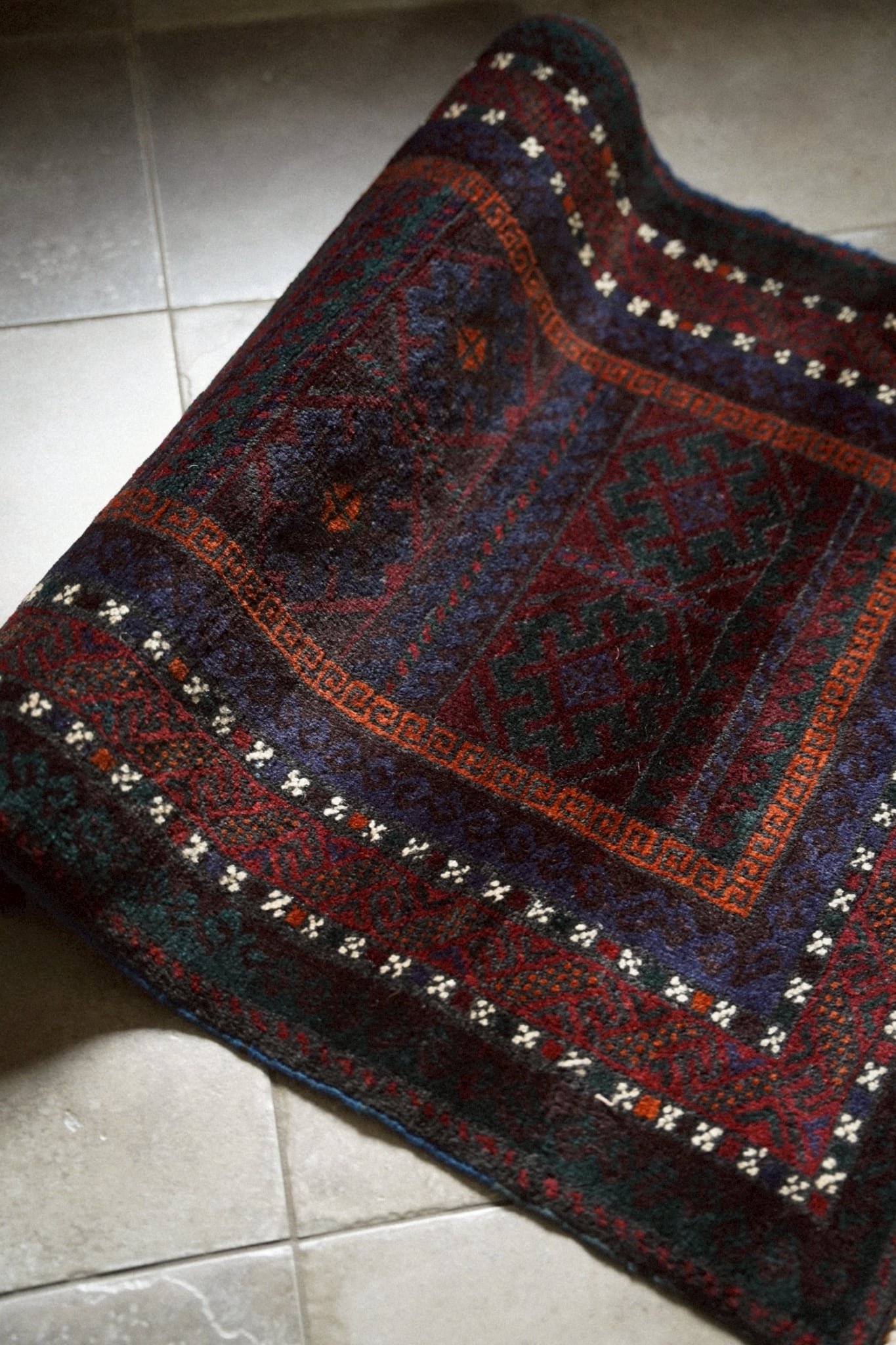 1960年代にバルーチ族によって織られたバーリシトと呼ばれる家財や食材を入れたり、屋内ではクッションとして使用される袋状のものをラグに仕立ててもらいました。