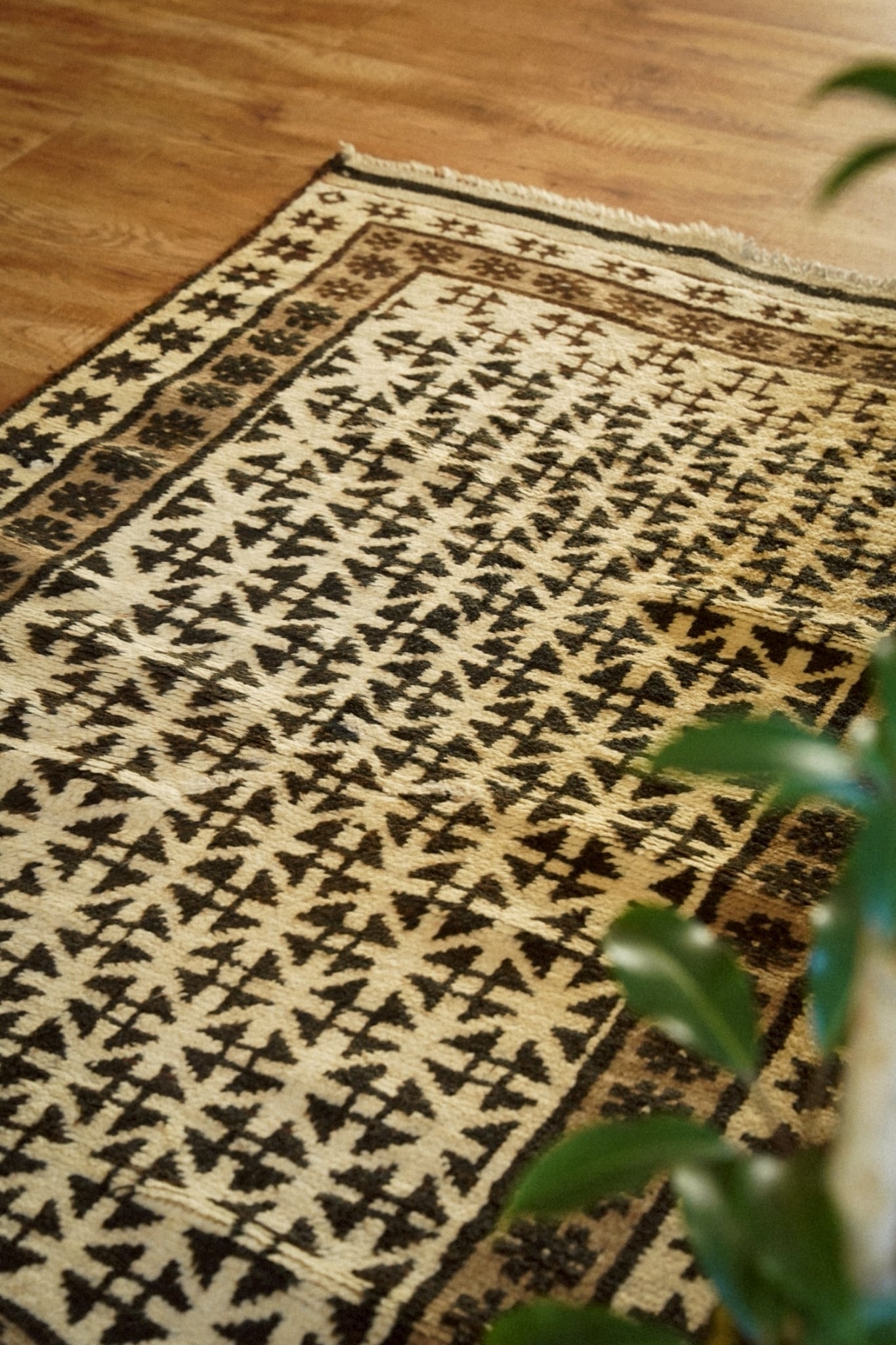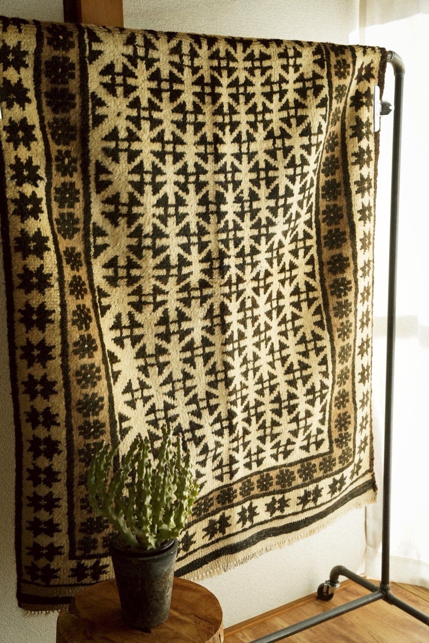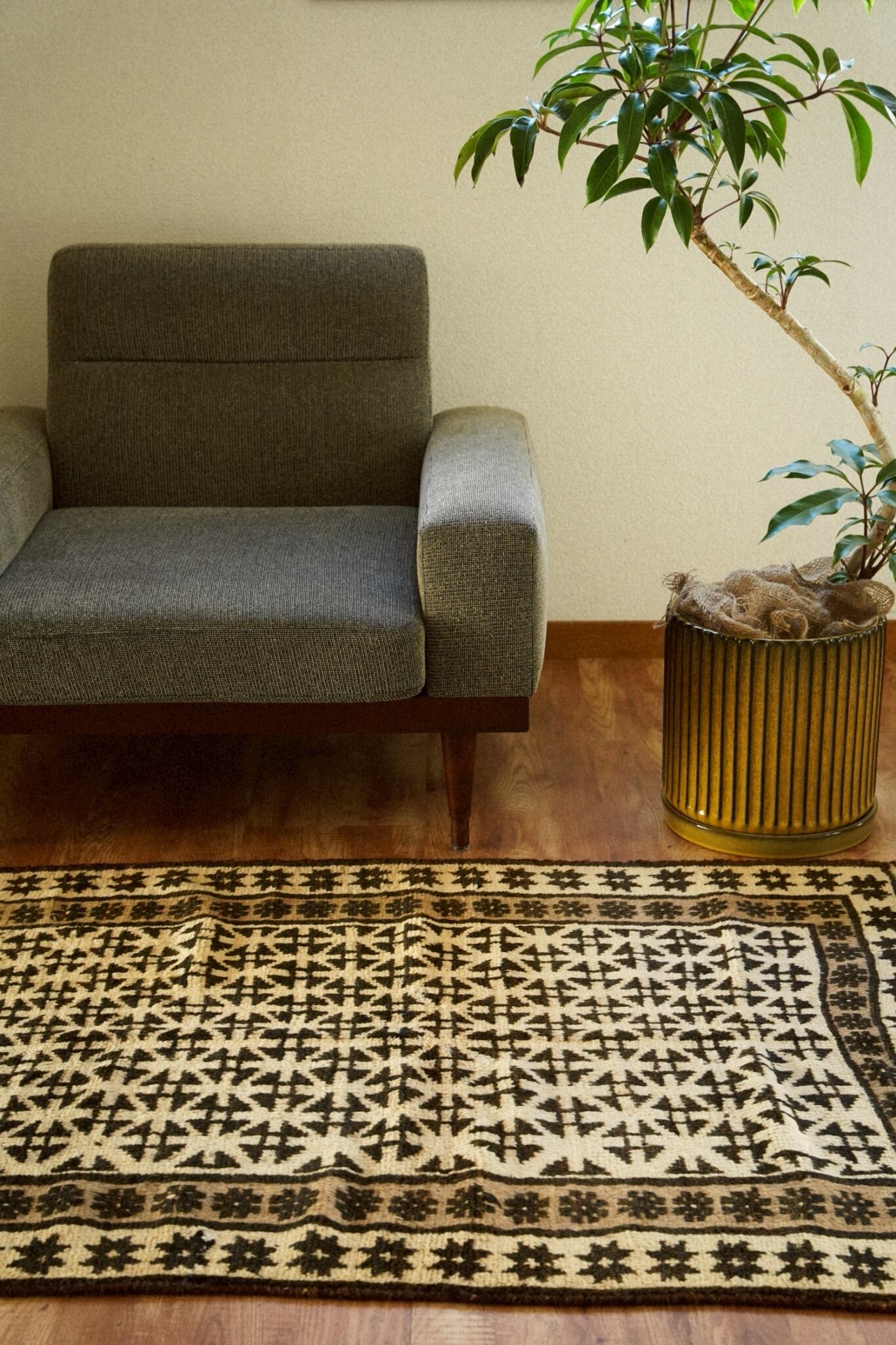 染色していない原毛色のウールで織られたタイマニラグ。