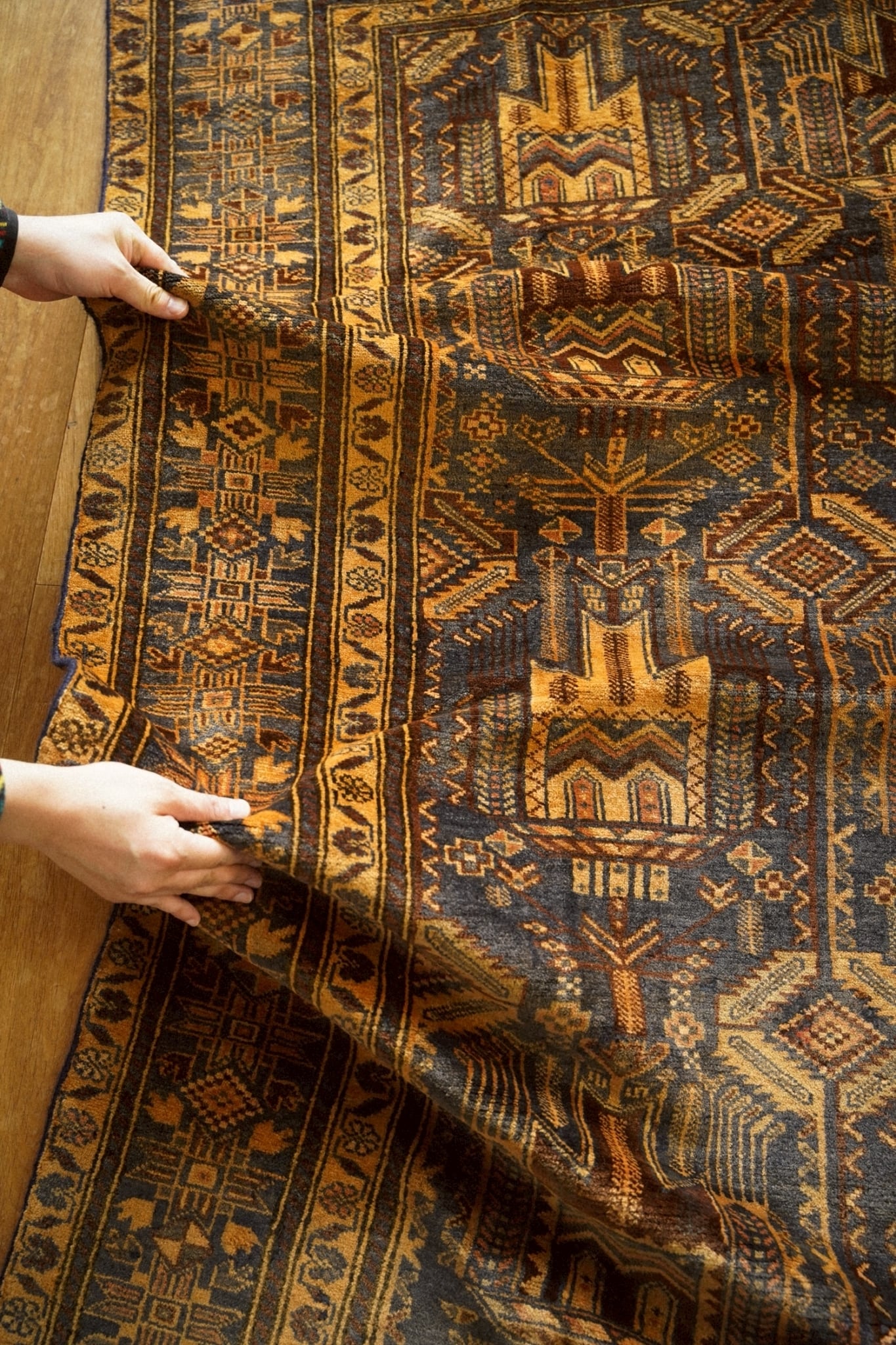 1950年代に織られたアフガニスタン産のMaliki Familyデザインのバルーチラグ。