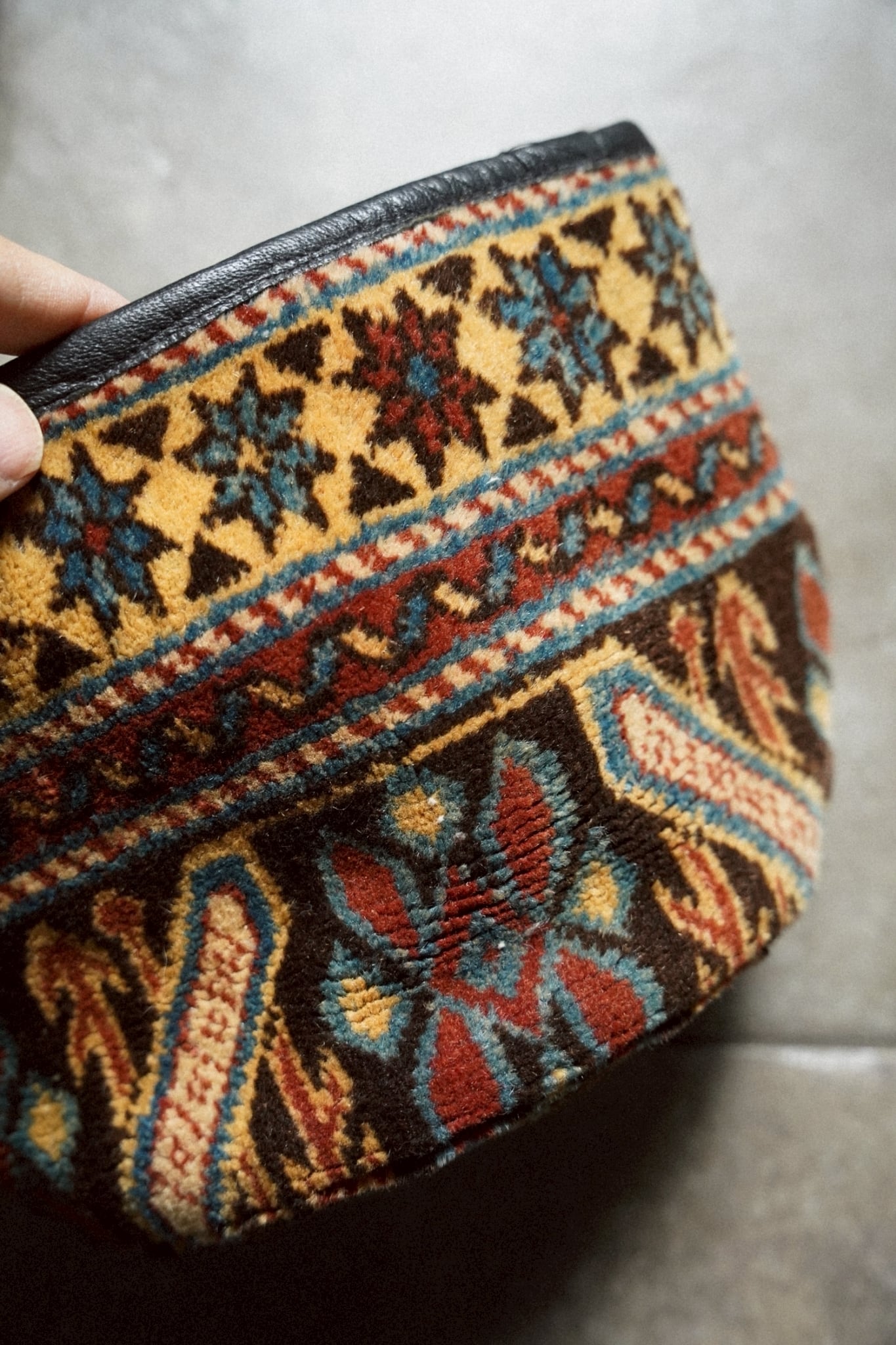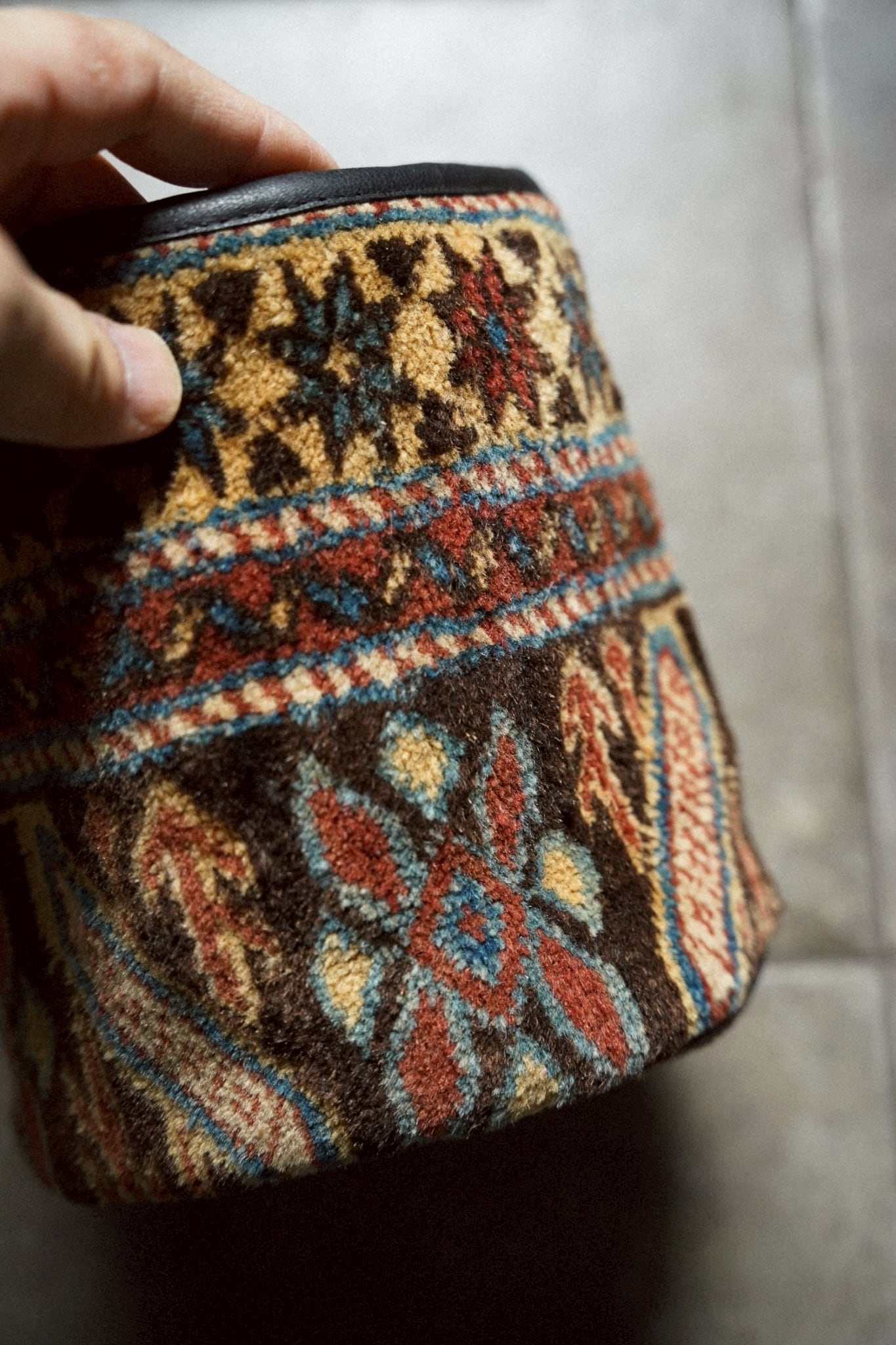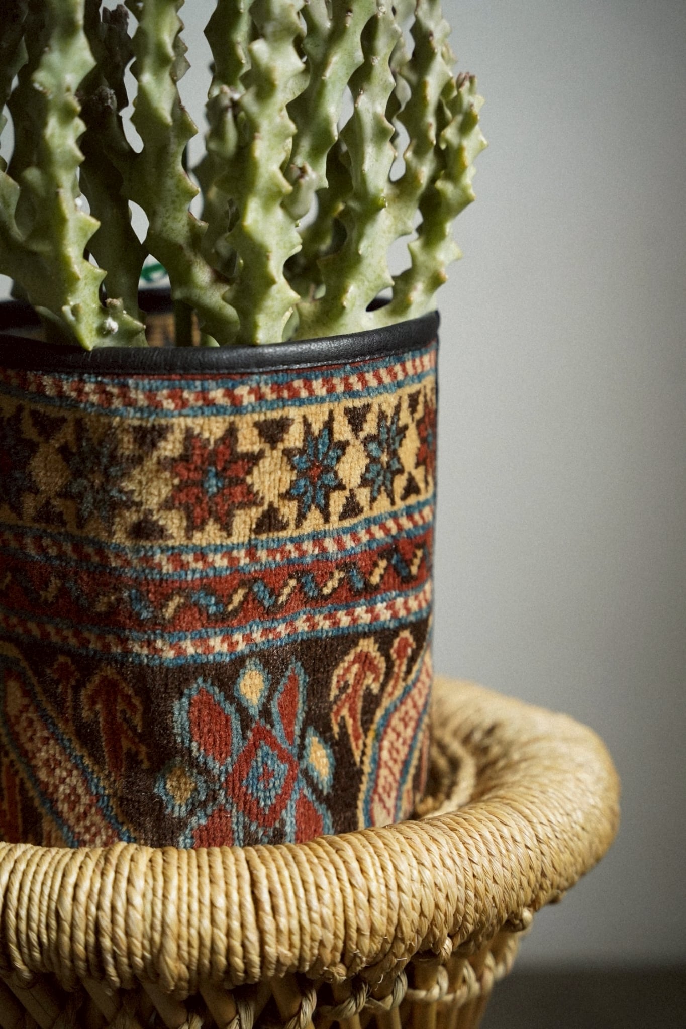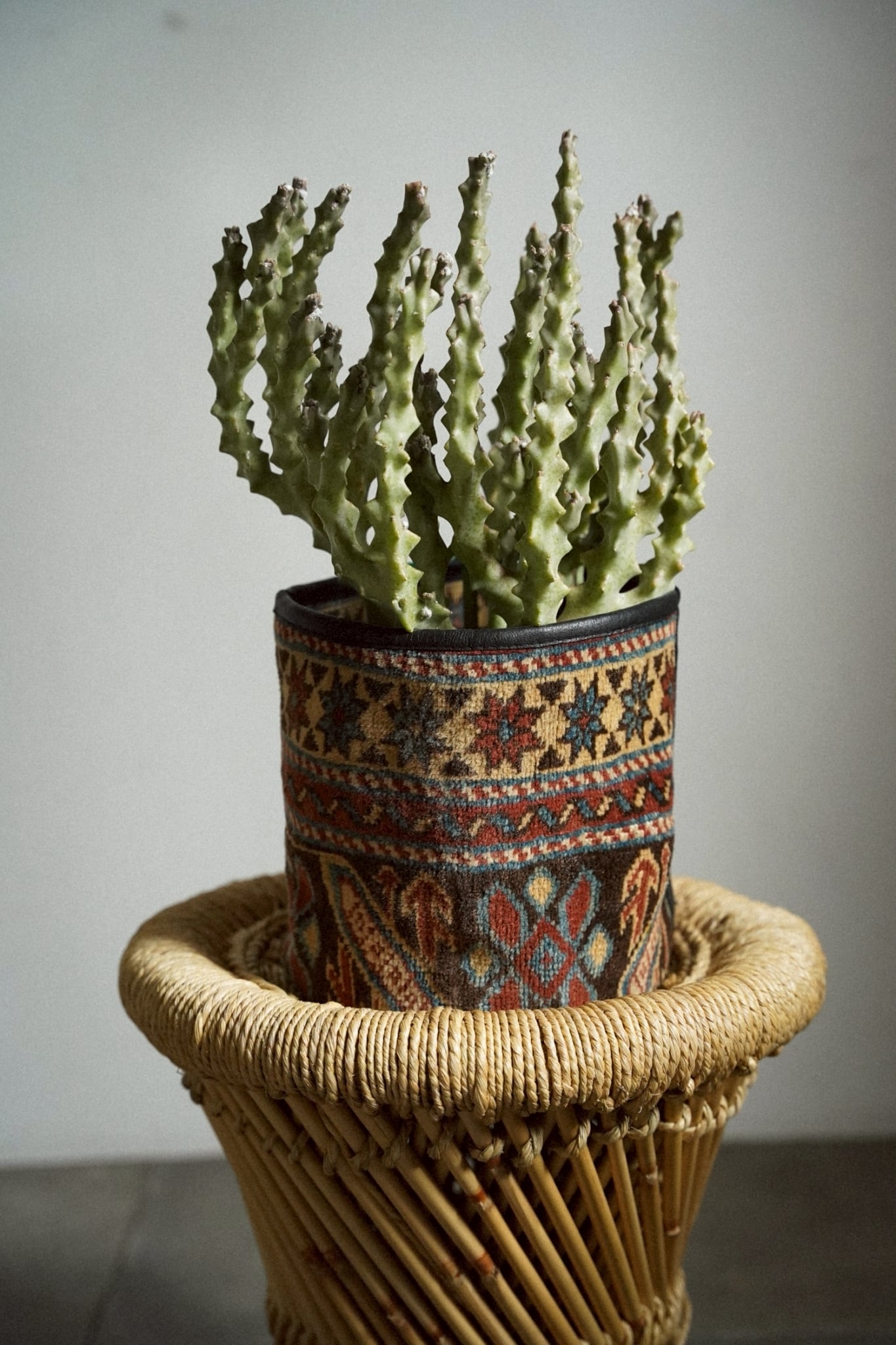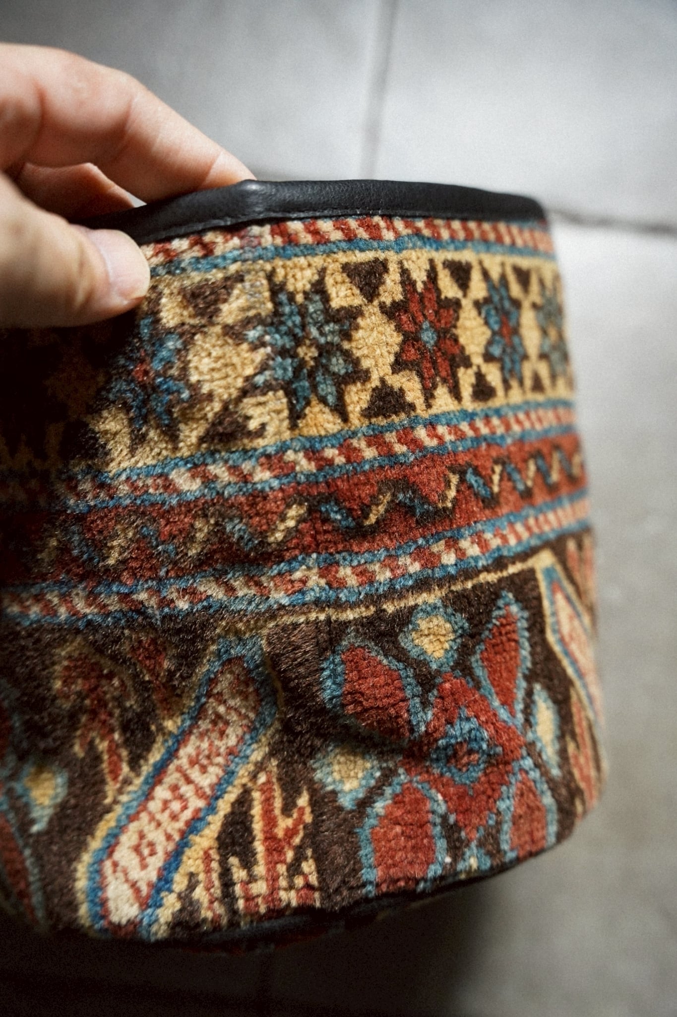コーカサスラグのボーダー部分を使用してリメイクしてもらったラグの鉢カバーです。