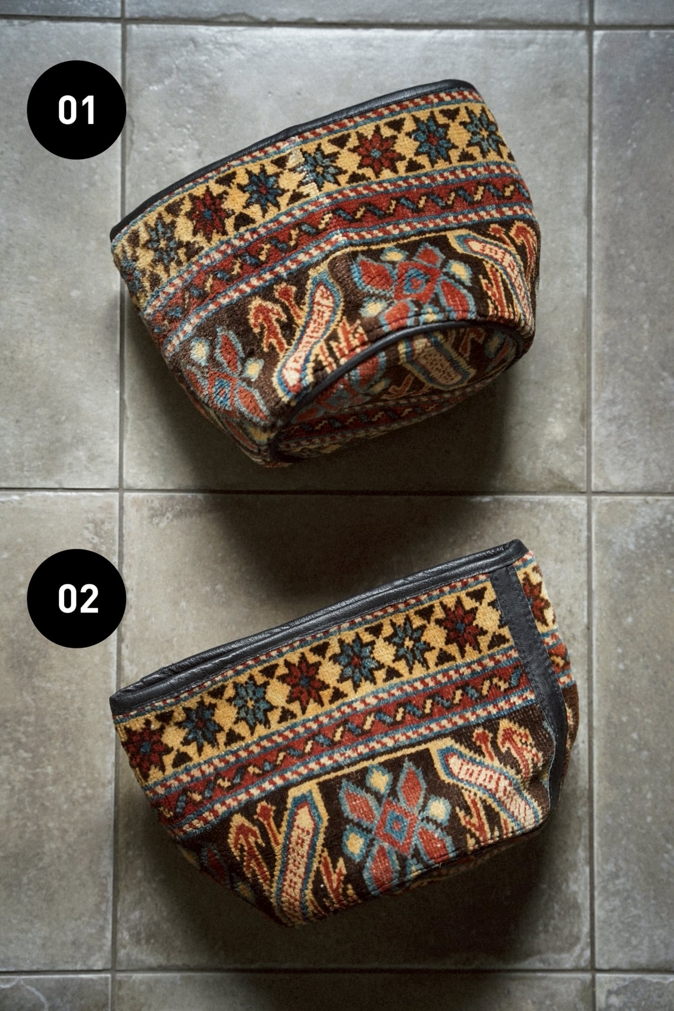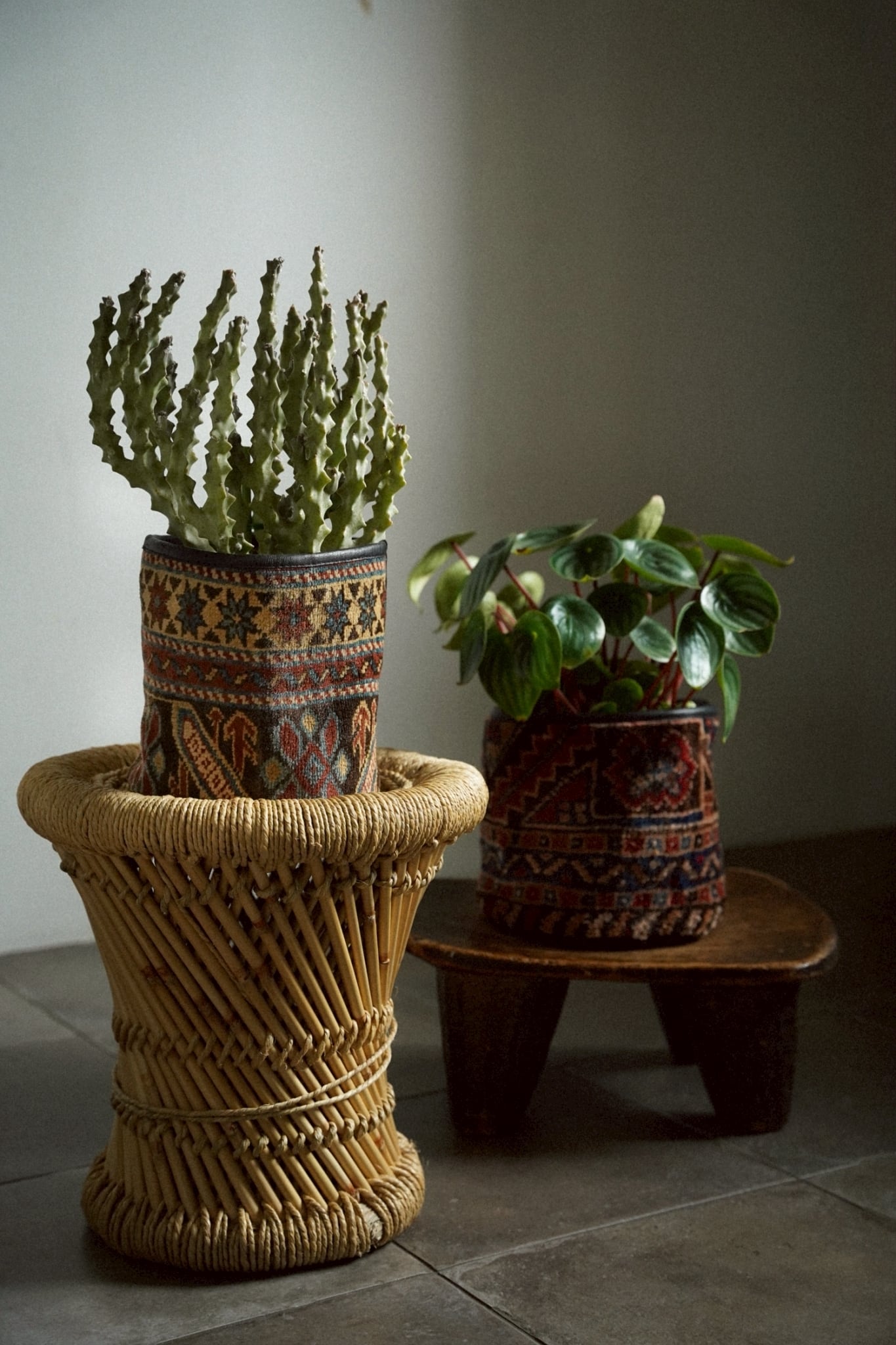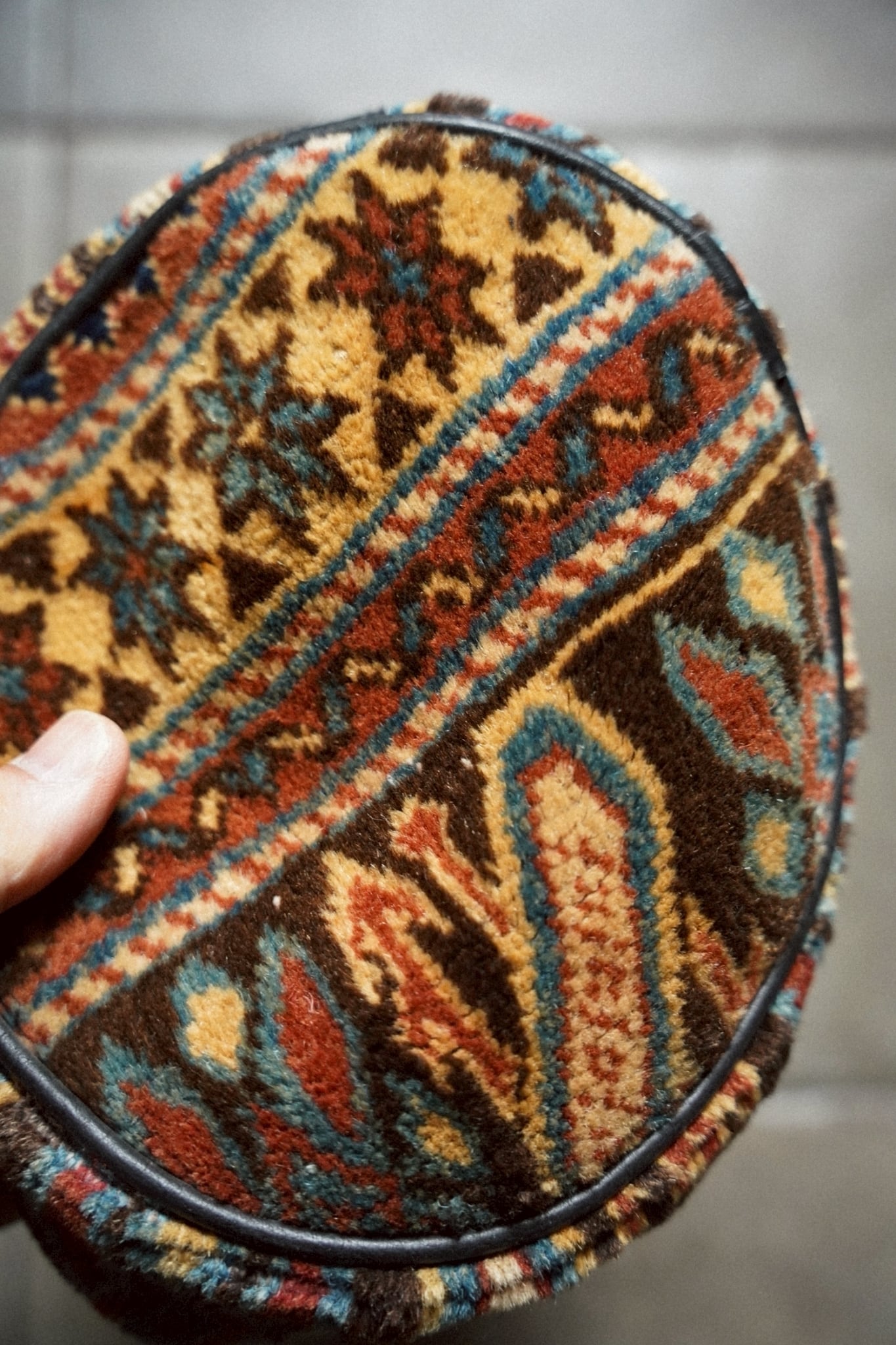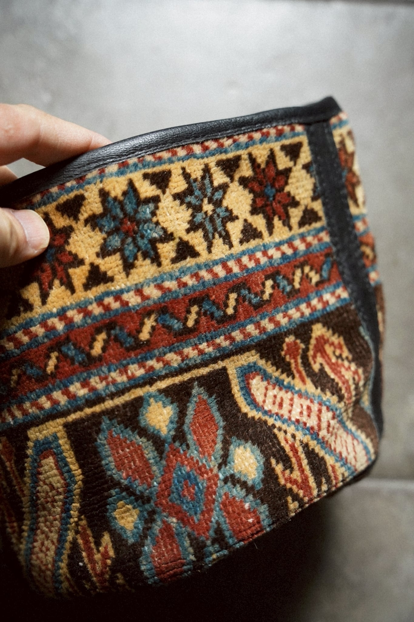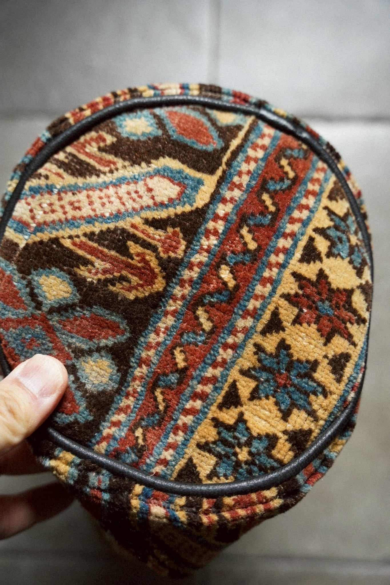 コーカサスラグのボーダー部分を使用してリメイクしてもらったラグの鉢カバーです。