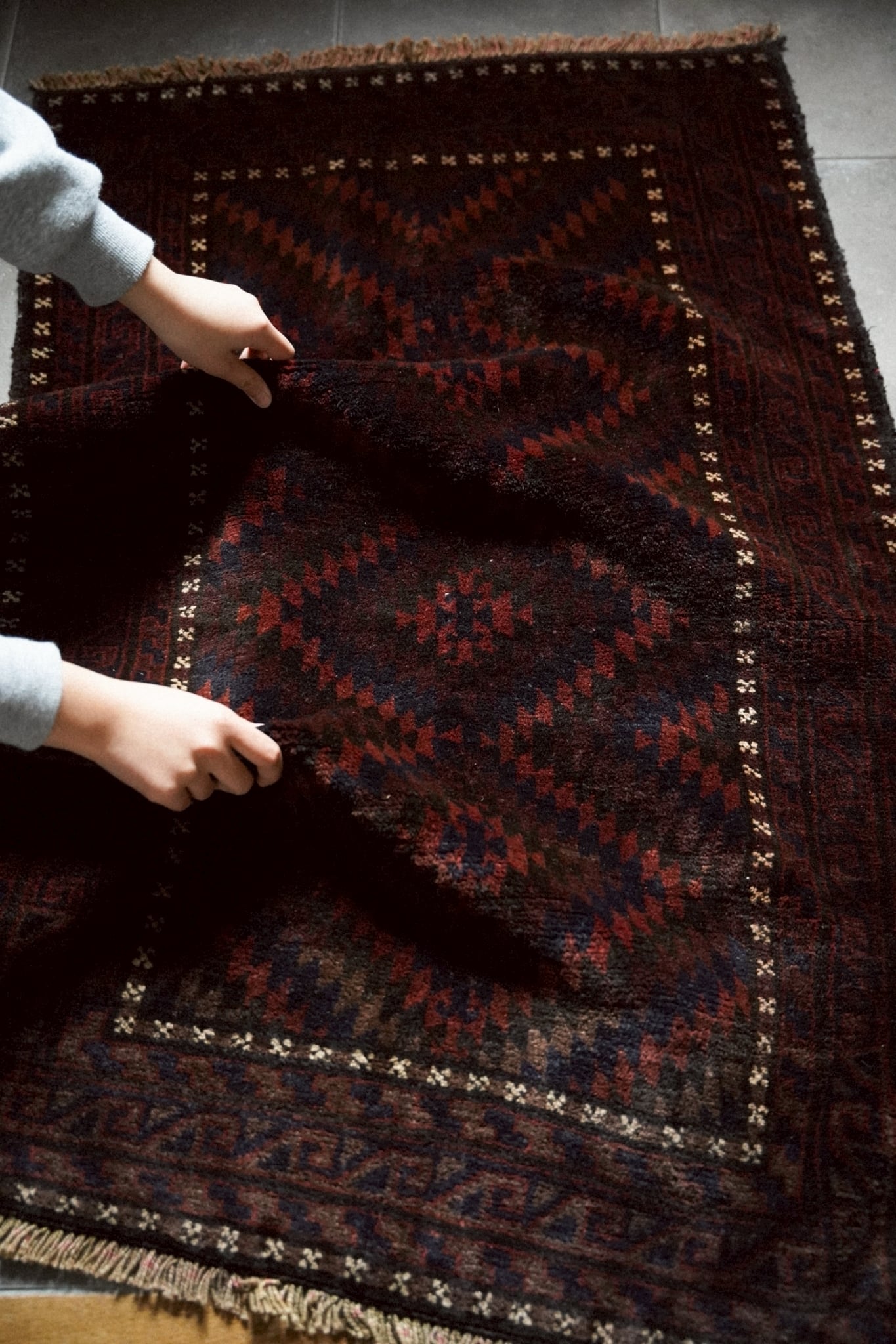 バーリシトと呼ばれる袋状のものをリメイクしラグに仕立ててもらいました。