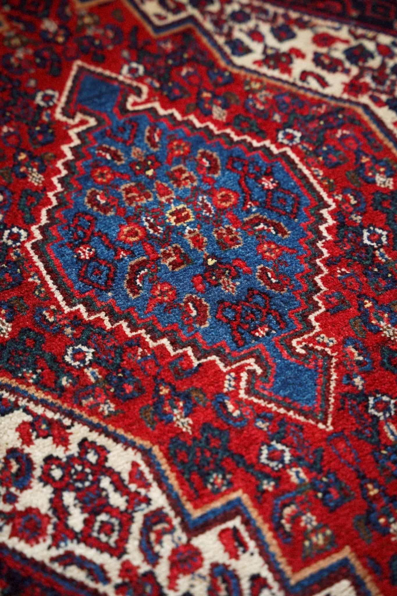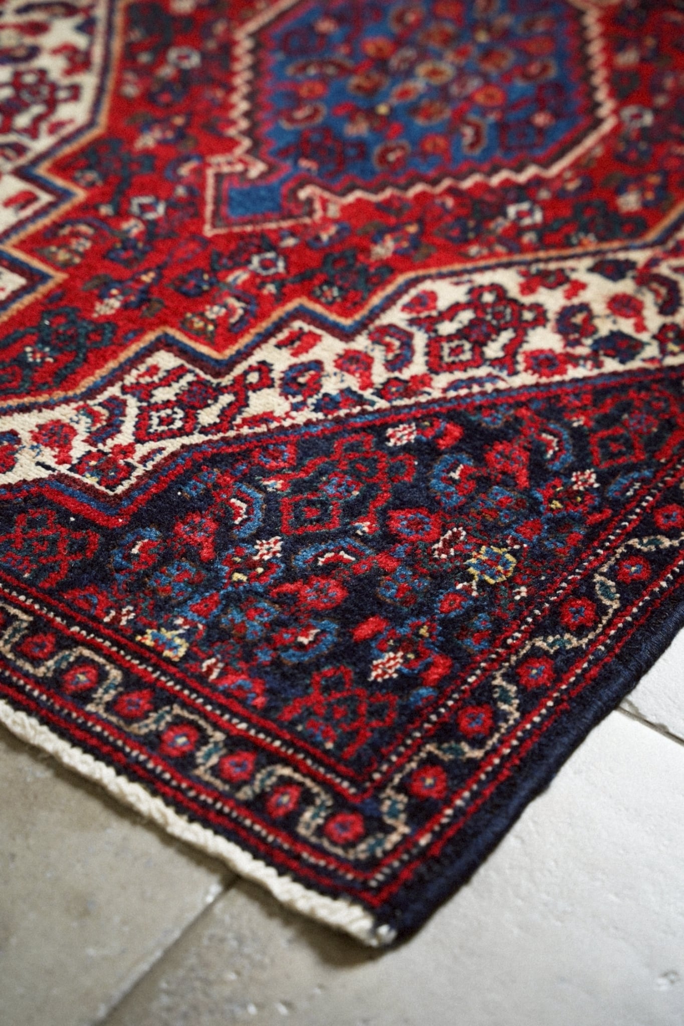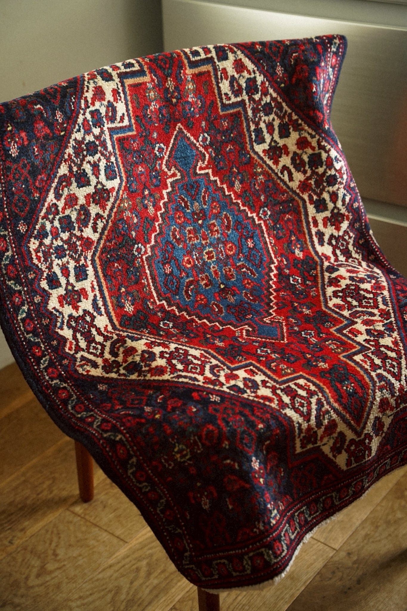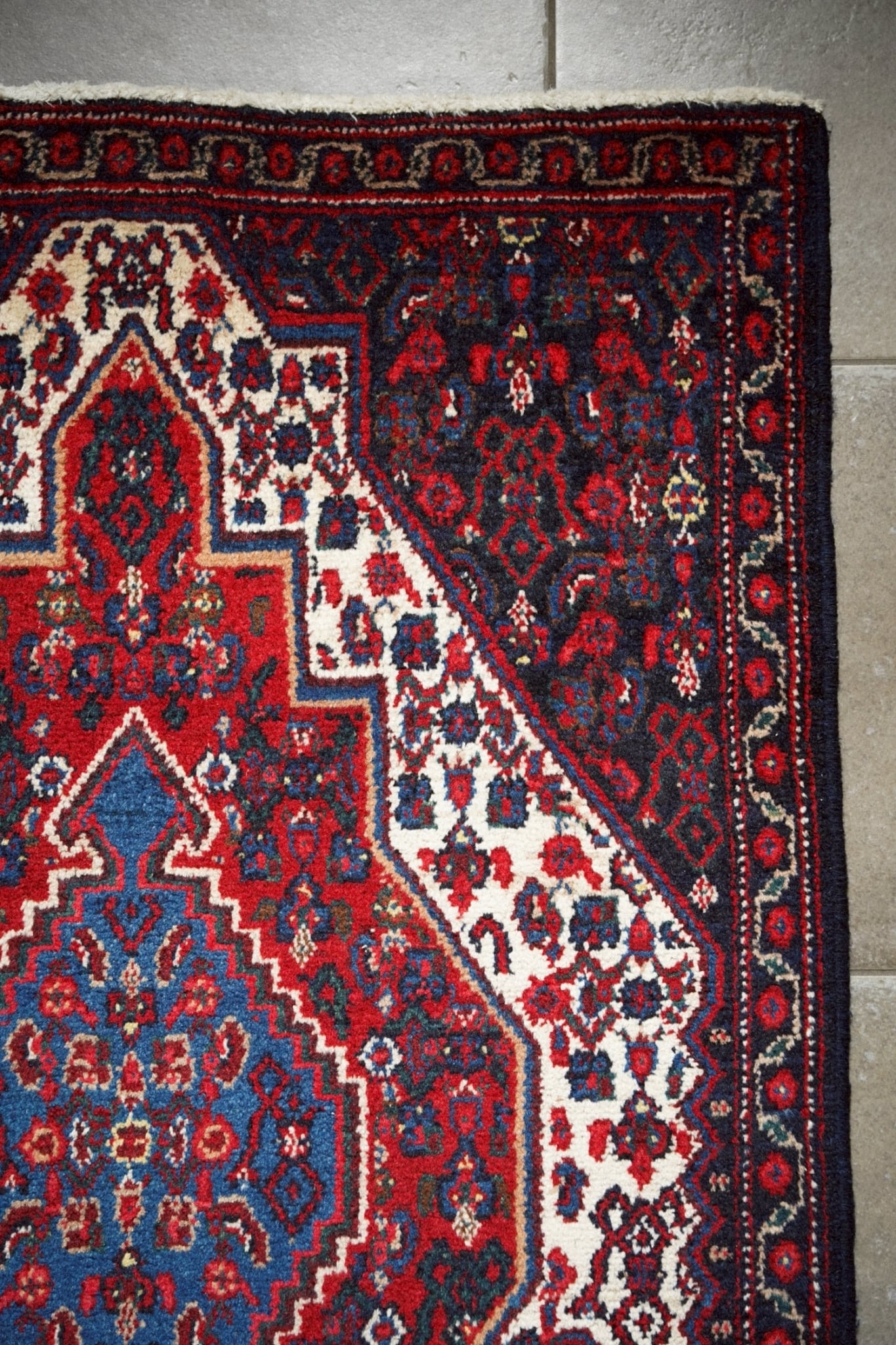 1980年代にペルシャ北西部にあるセネ(現サナンダジ)で織られたラグ。