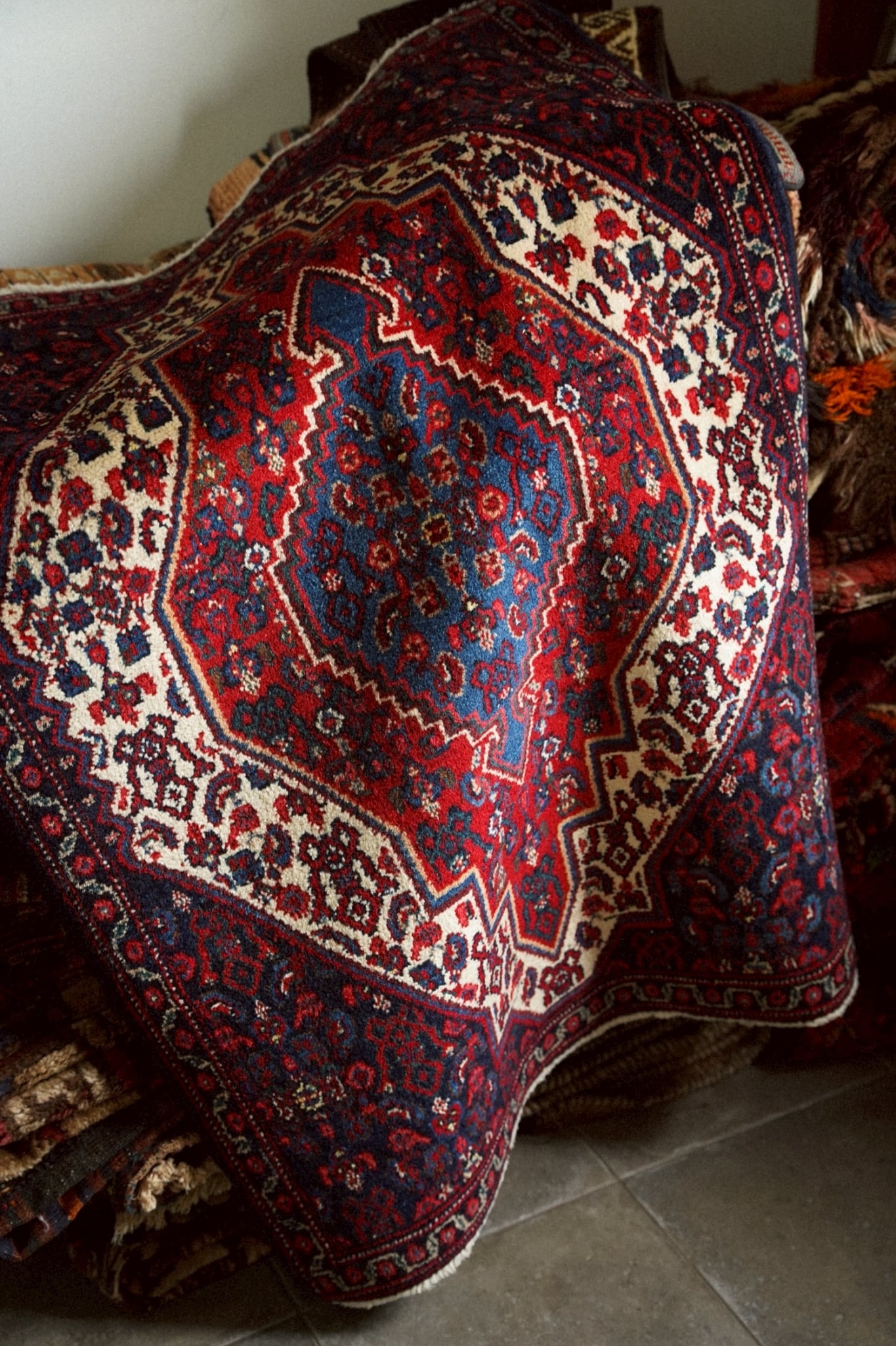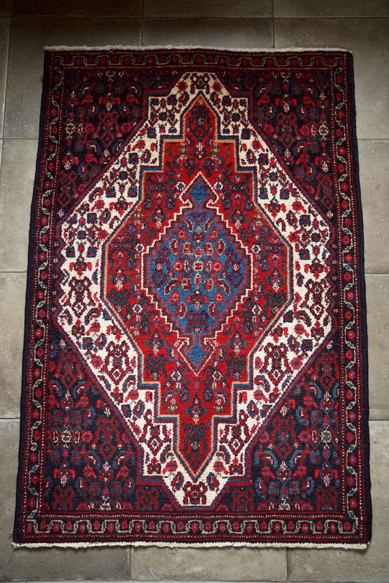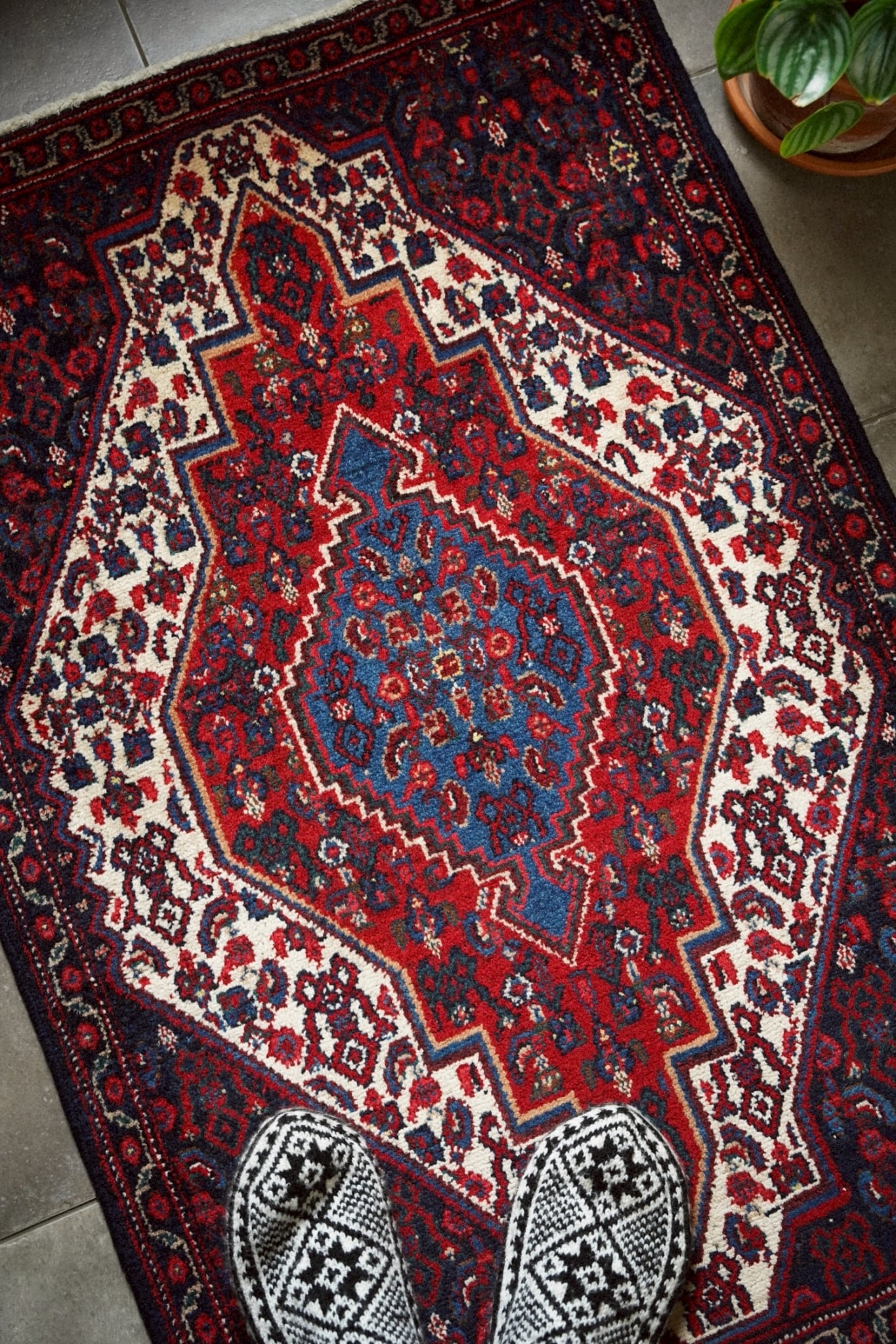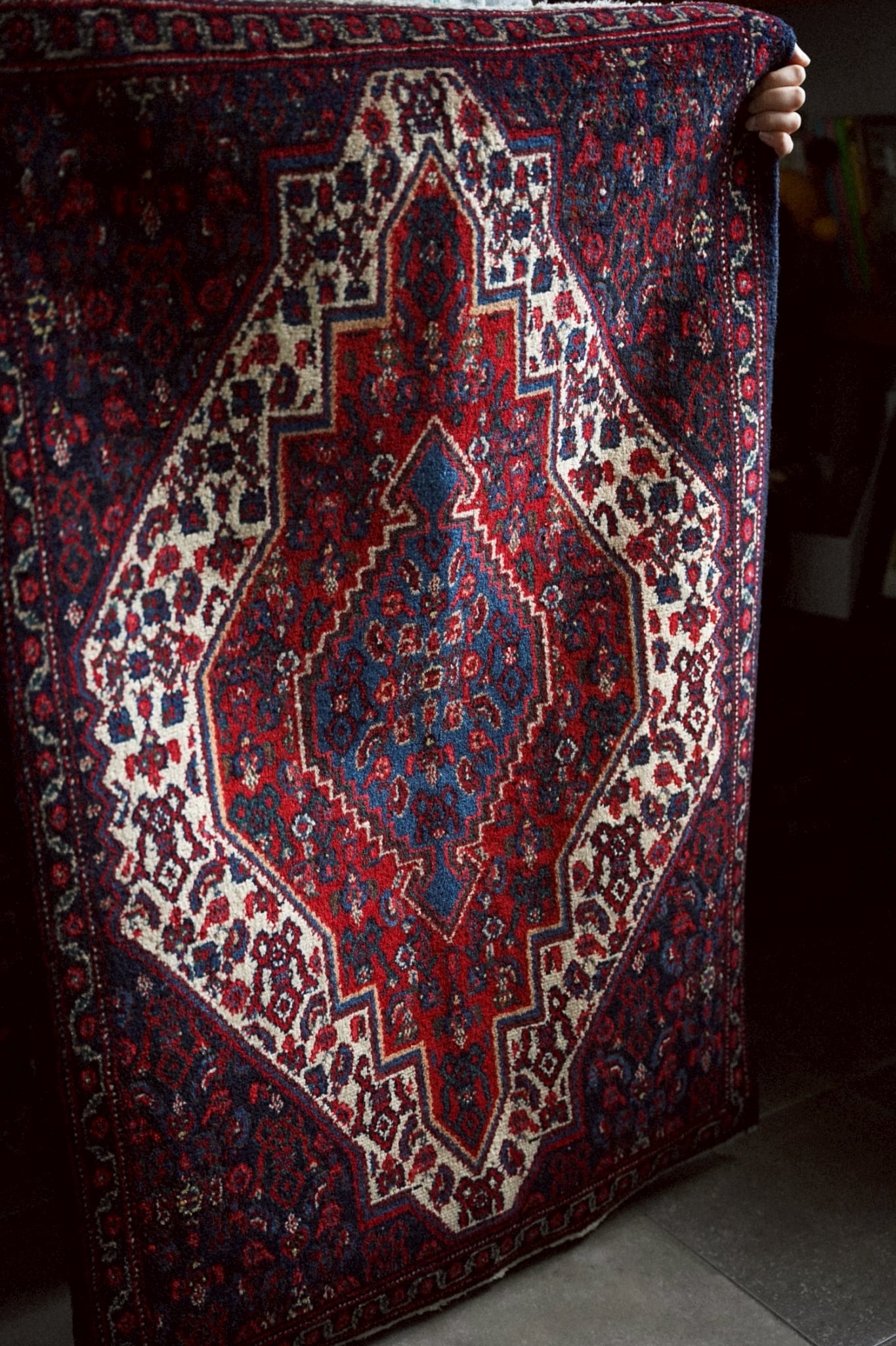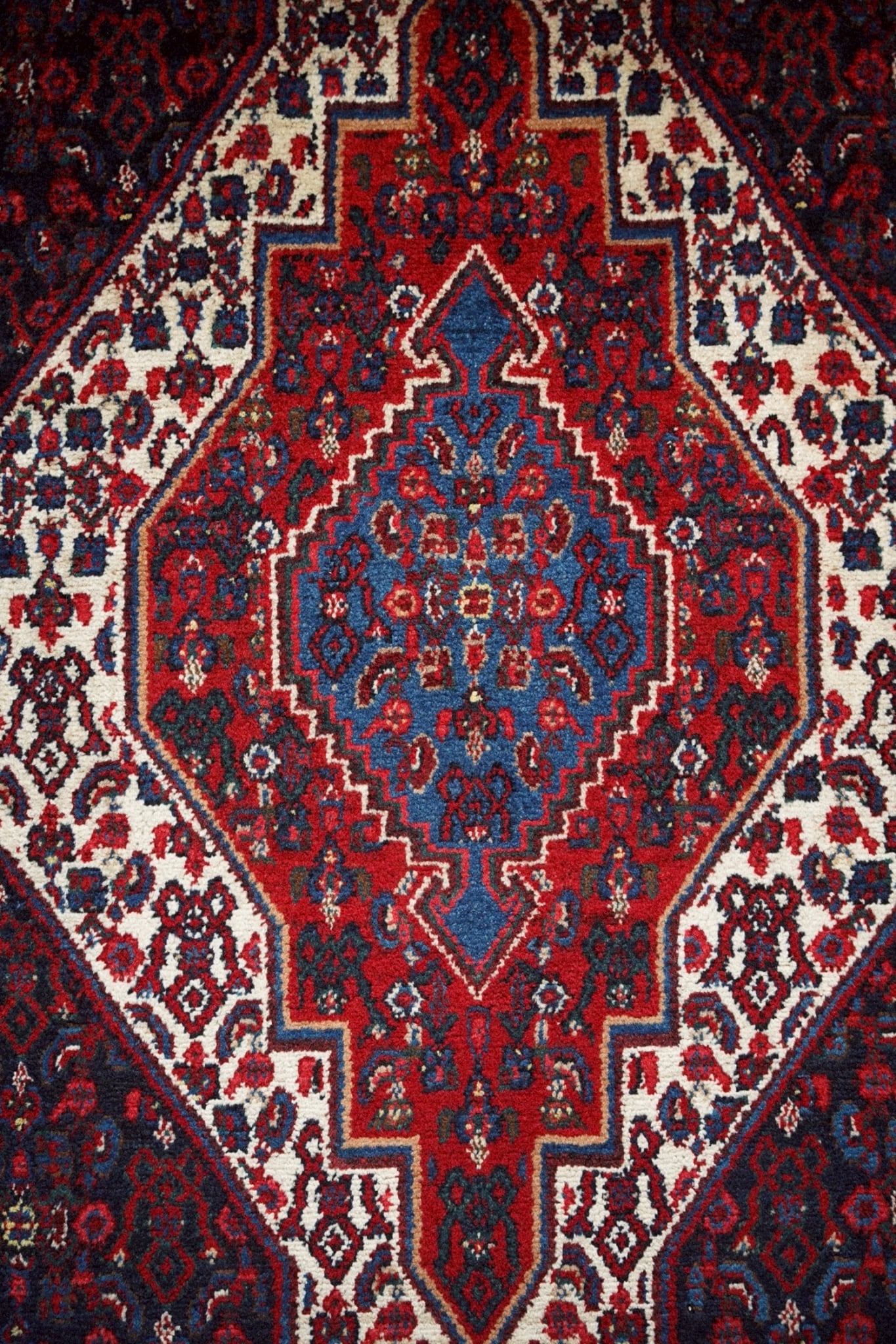 1980年代にペルシャ北西部にあるセネ(現サナンダジ)で織られたラグ。