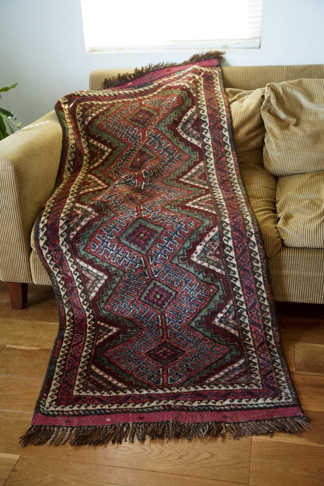 フリンジ部分はキリムエンド。目立ったダメージはなくグッドコンディション。
