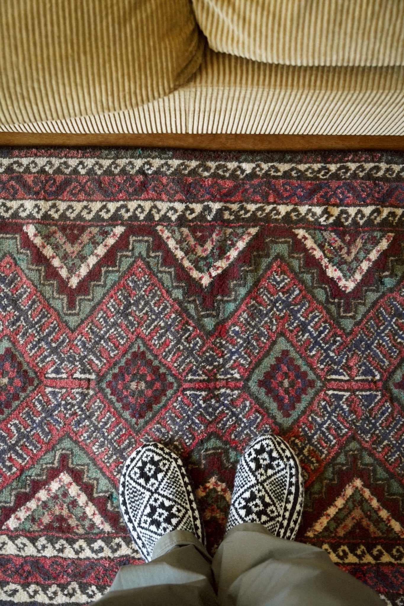 しっかりとしたパイルで厚みがあり、踏み心地はフカフカ。ウールの柔らかな質感も心地よく、日常使いにも嬉しい一枚です。