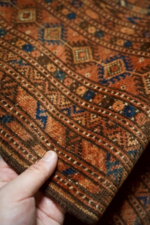遊牧民の暮らしの中で織られ、長い時間を経て今に残るラグ。