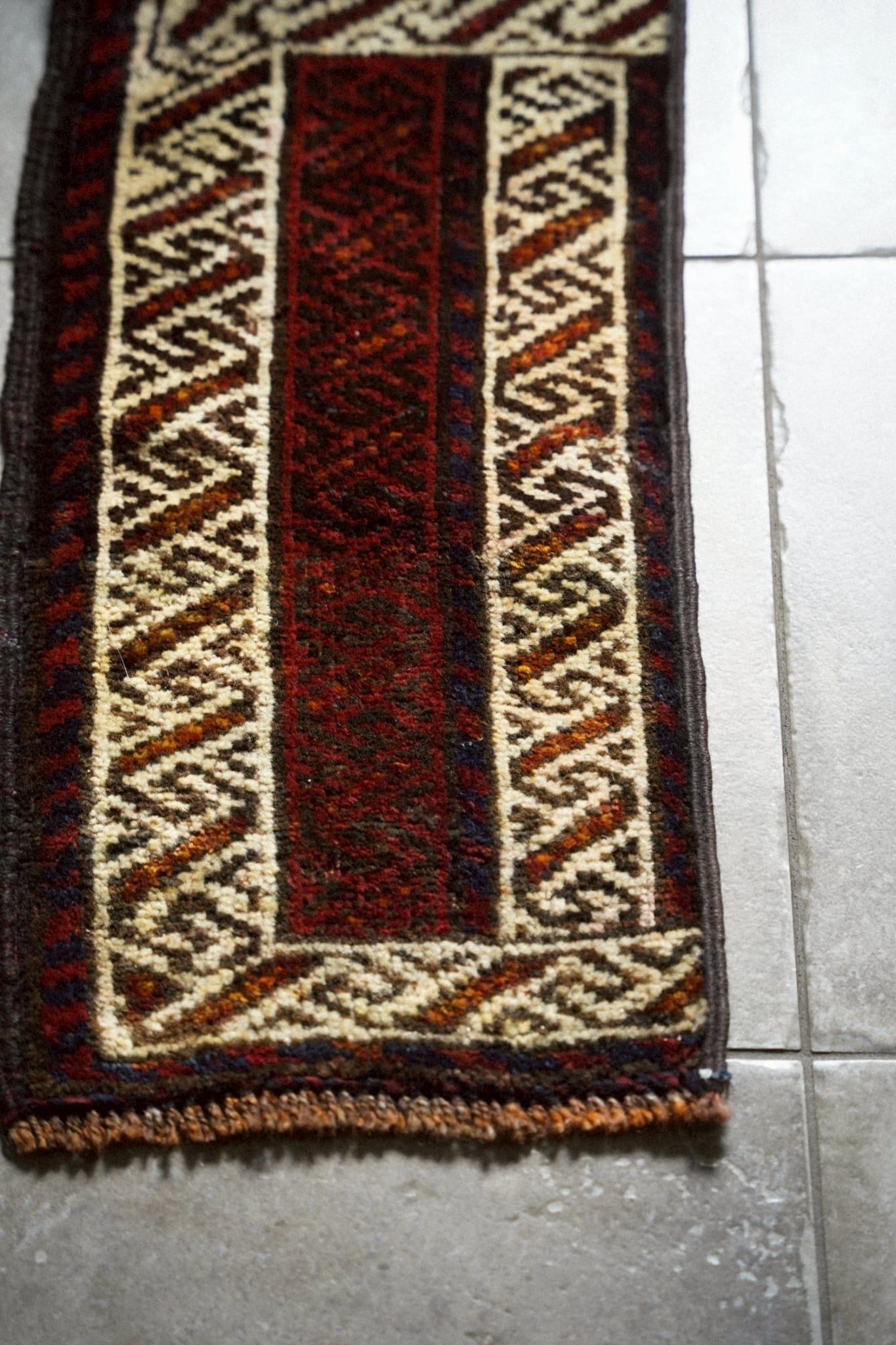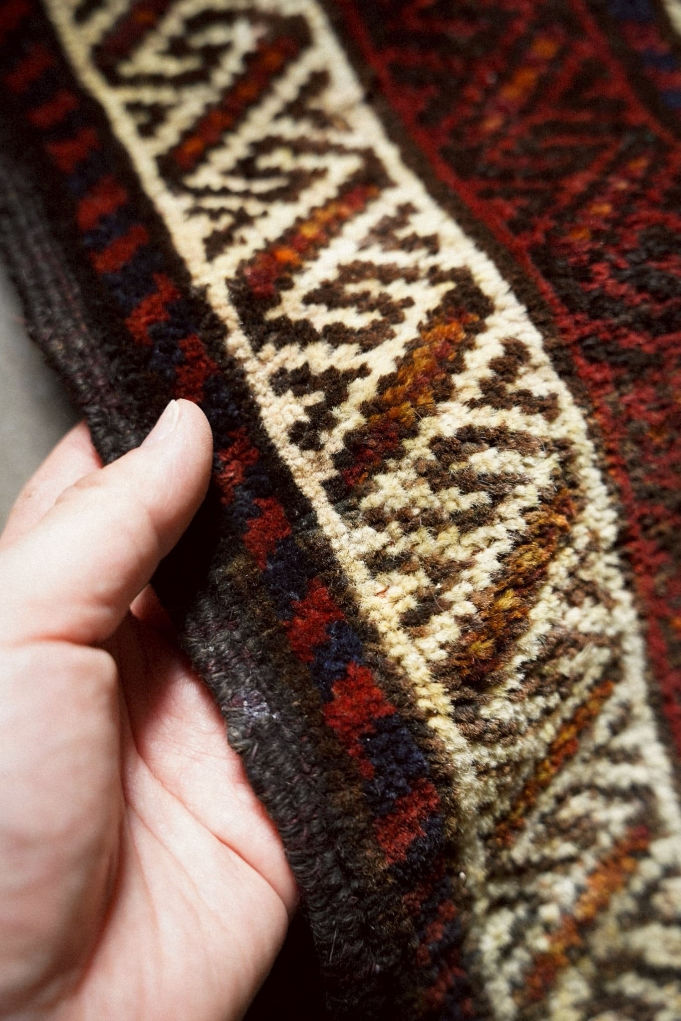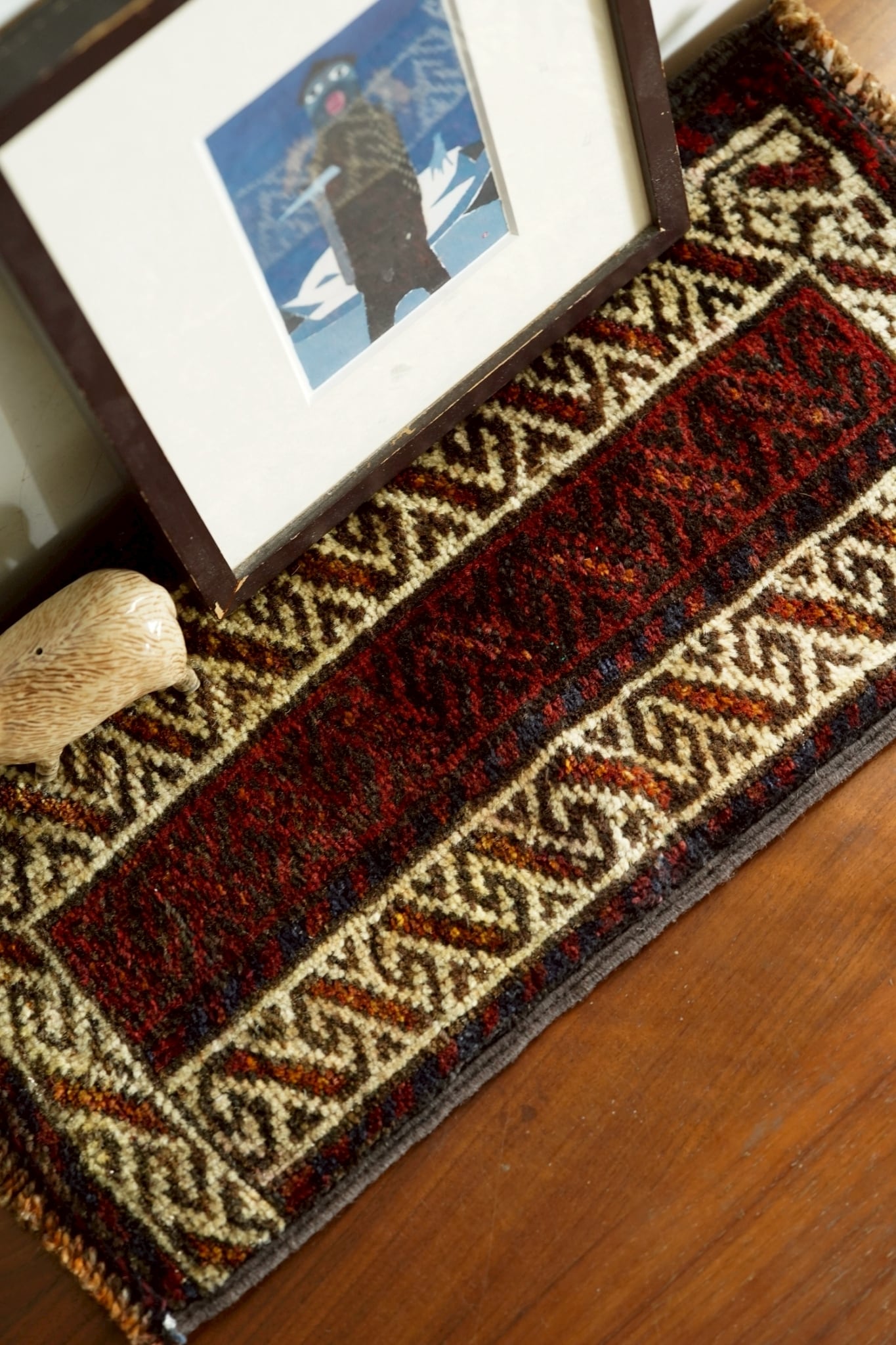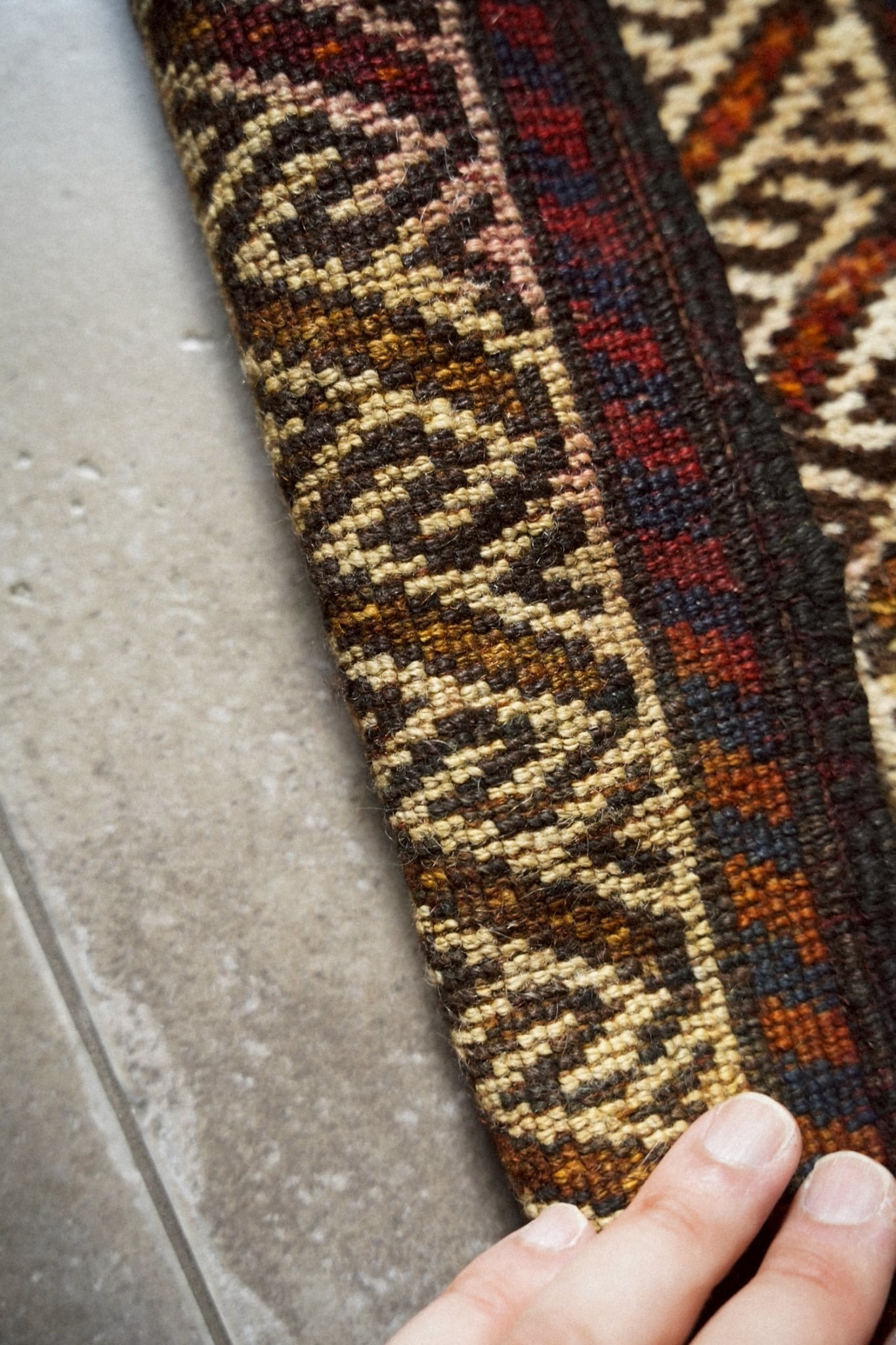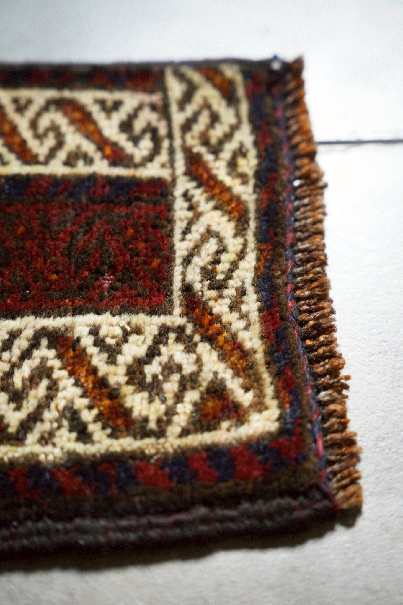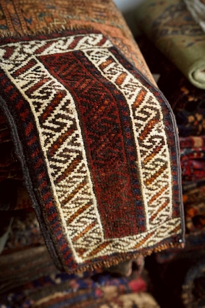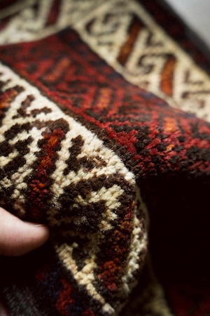 手織りラグならではのわずかな歪みがありますが、このラグの個性としてお楽しみください。