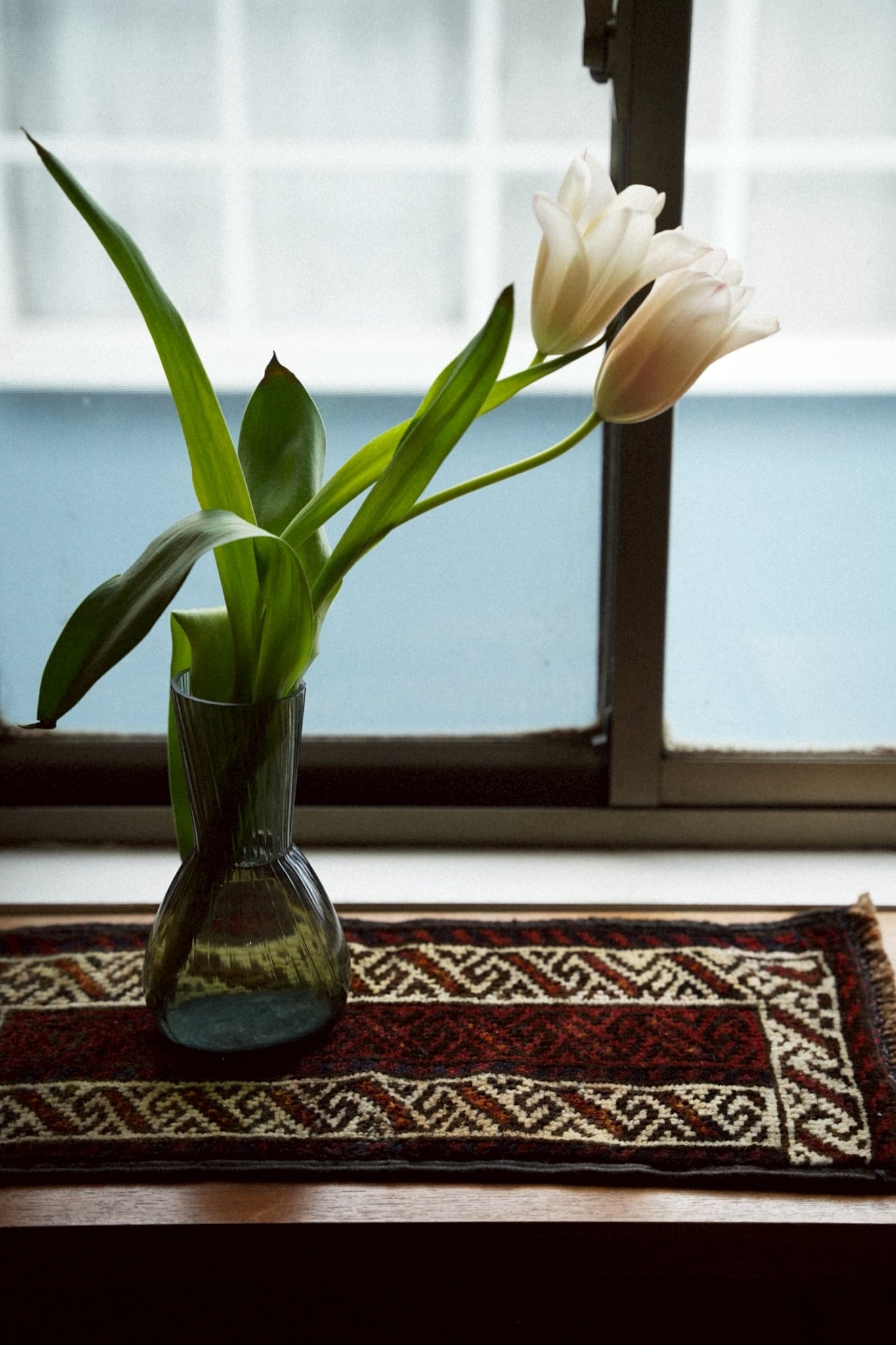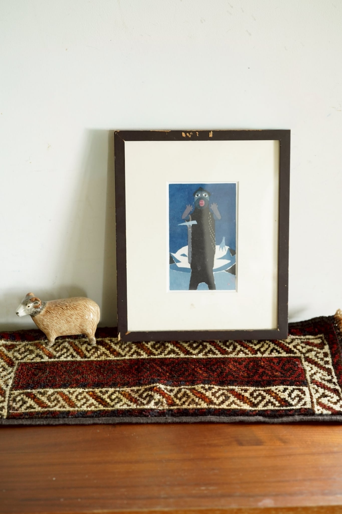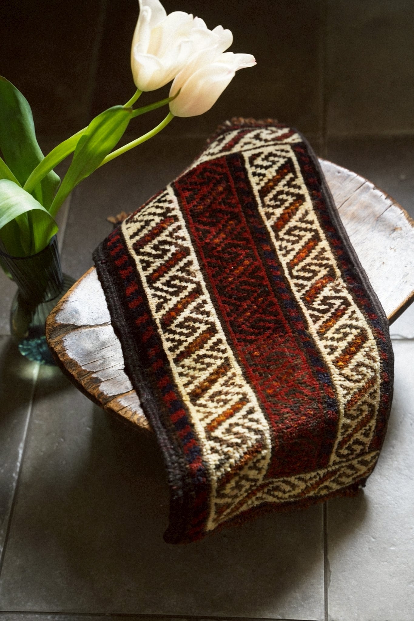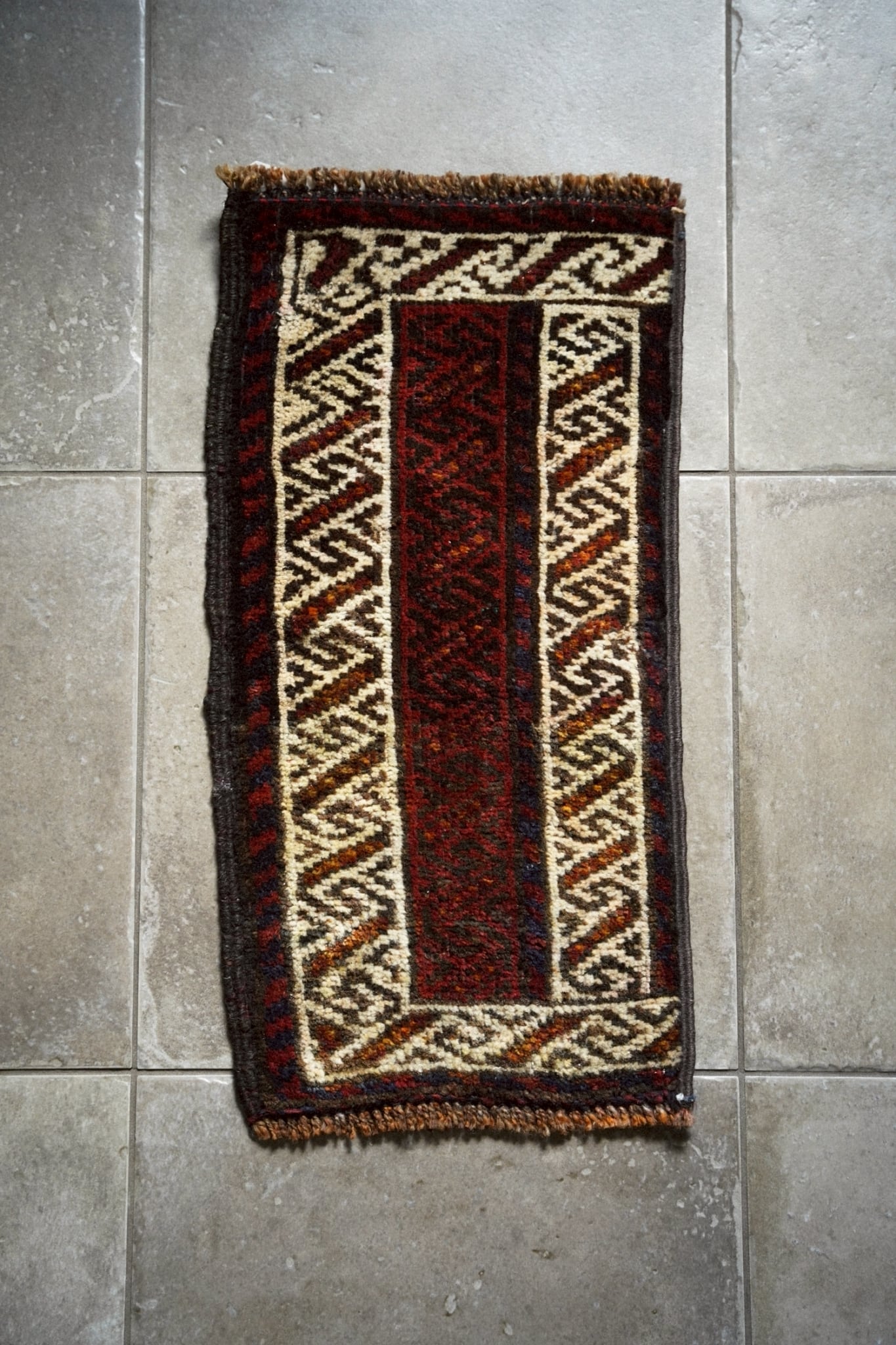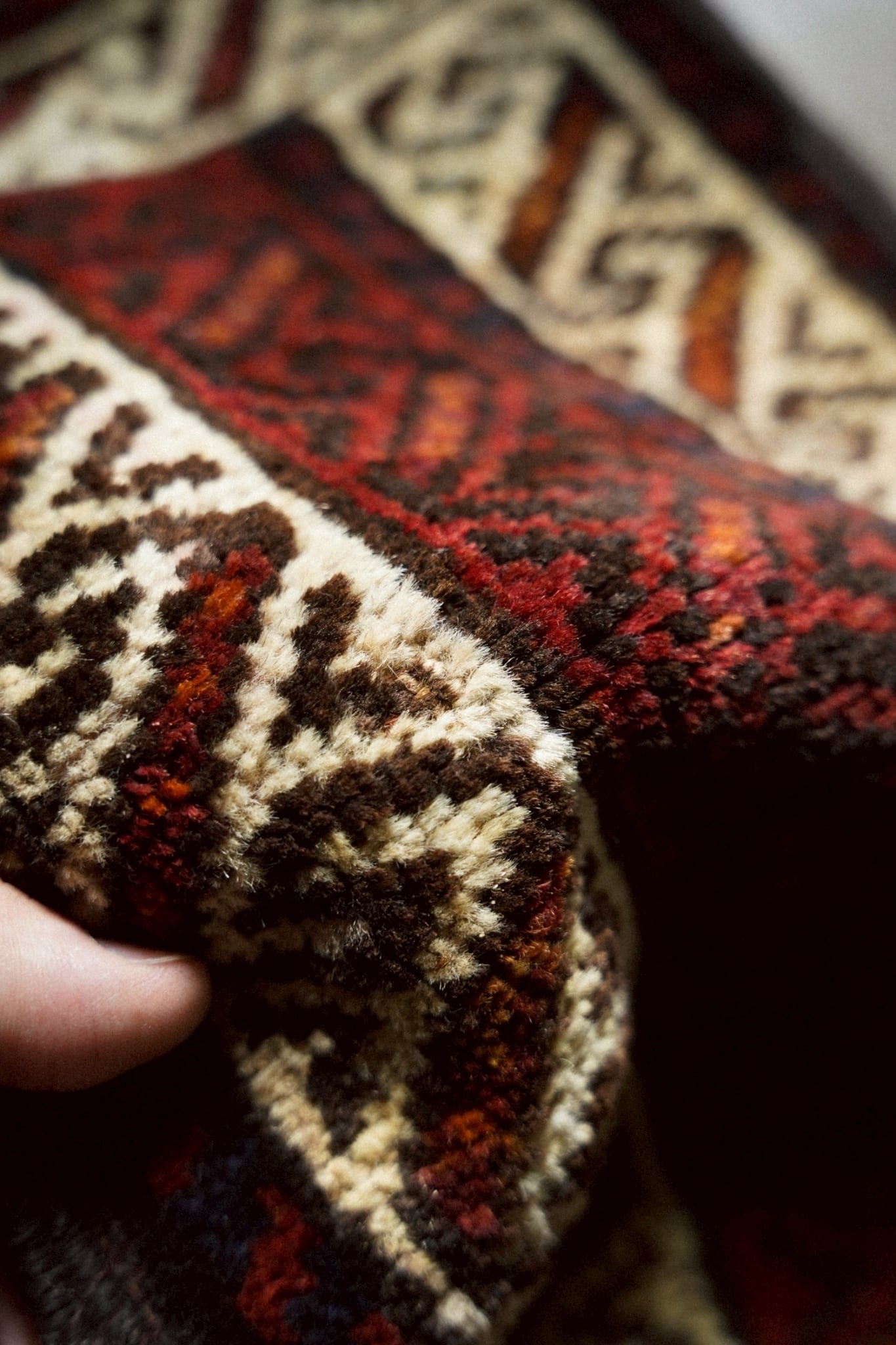 手織りラグならではのわずかな歪みがありますが、このラグの個性としてお楽しみください。