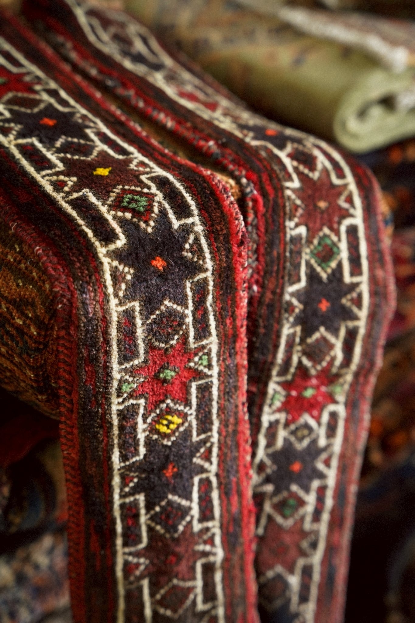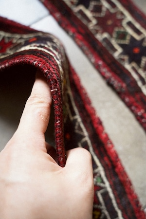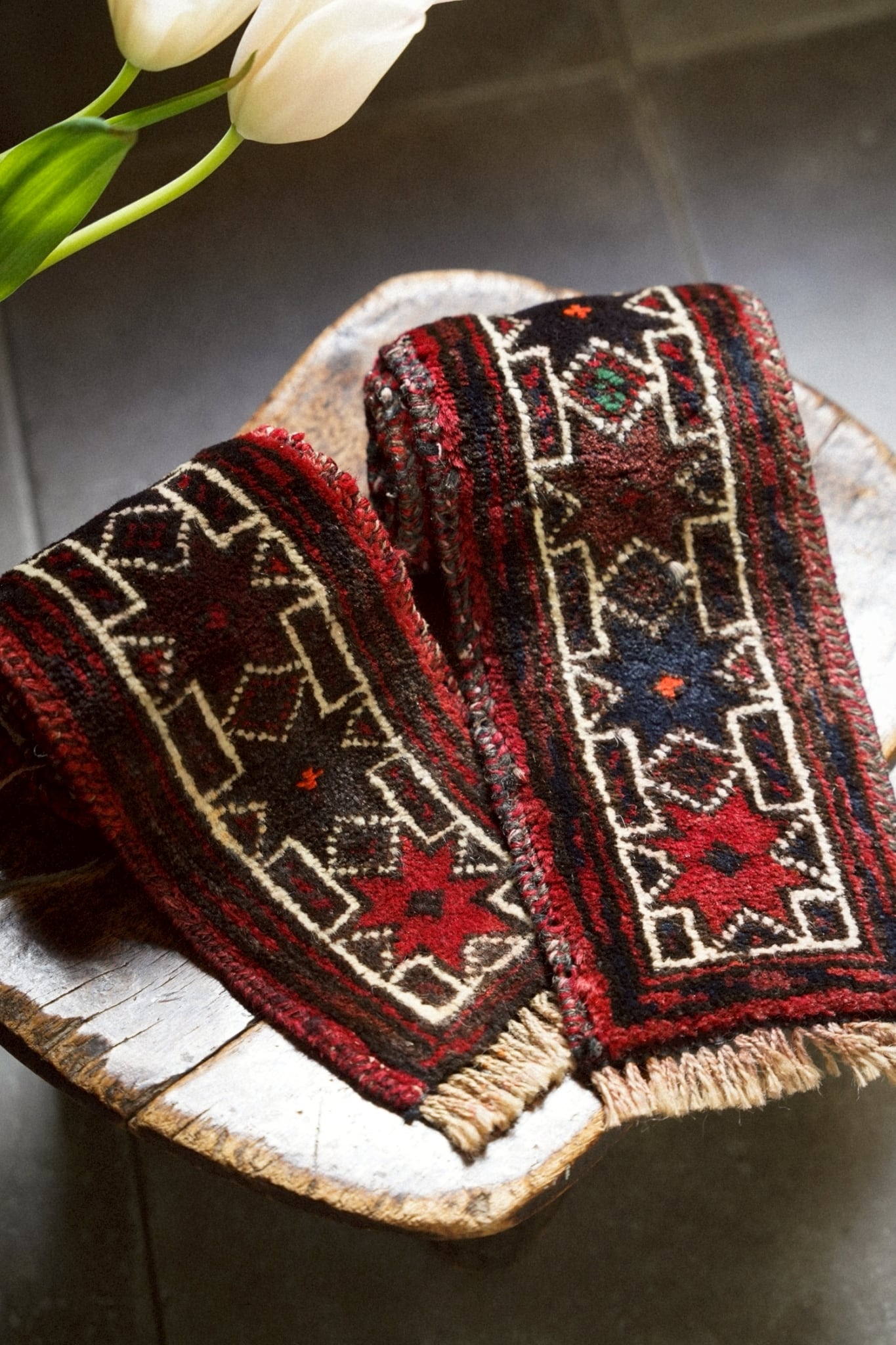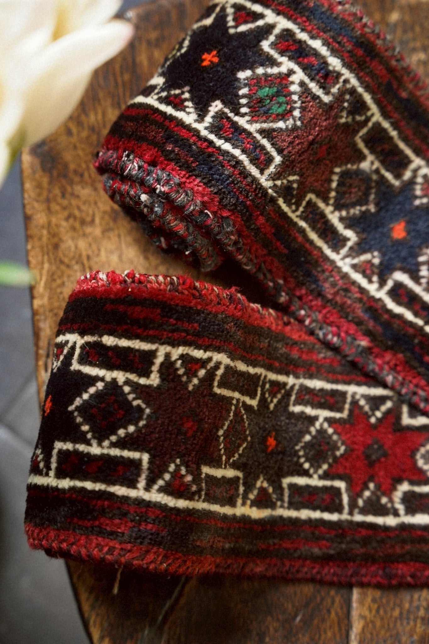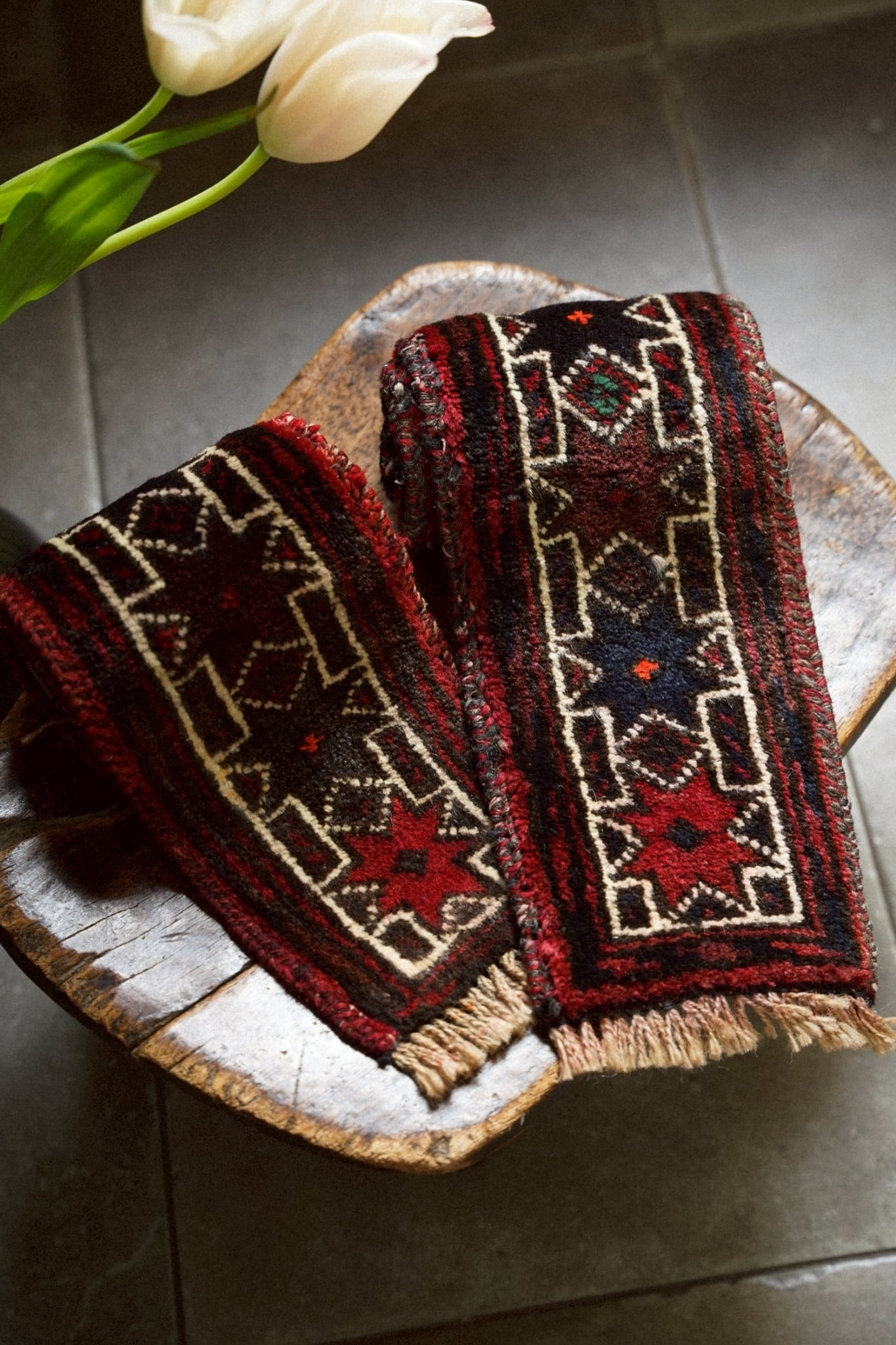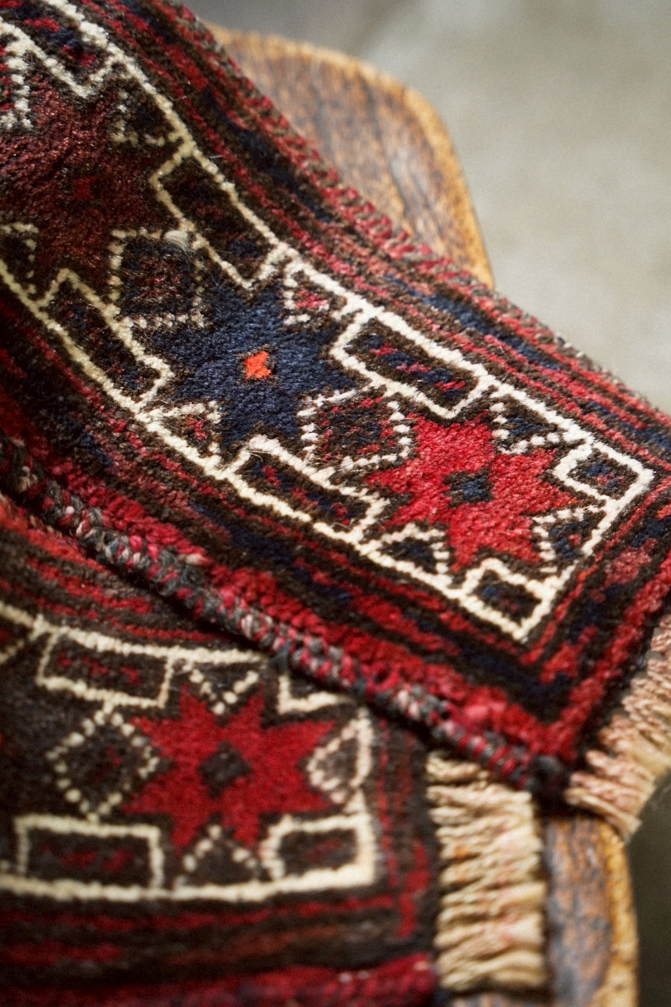 ネックバンドと呼ばれるラクダ用の飾りをミニラグに仕立ててもらいました。