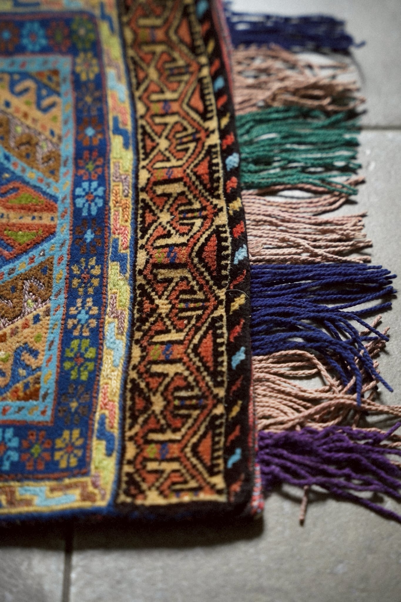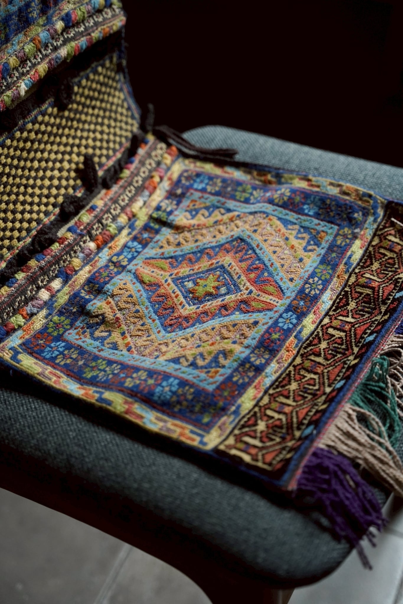 アフガニスタンに暮らすマシュワニ族によって織られたサドルバッグ。