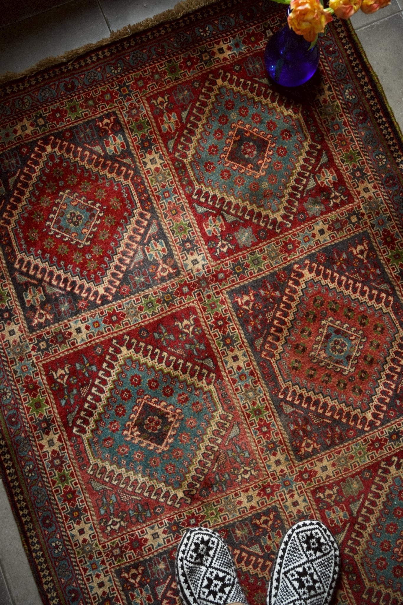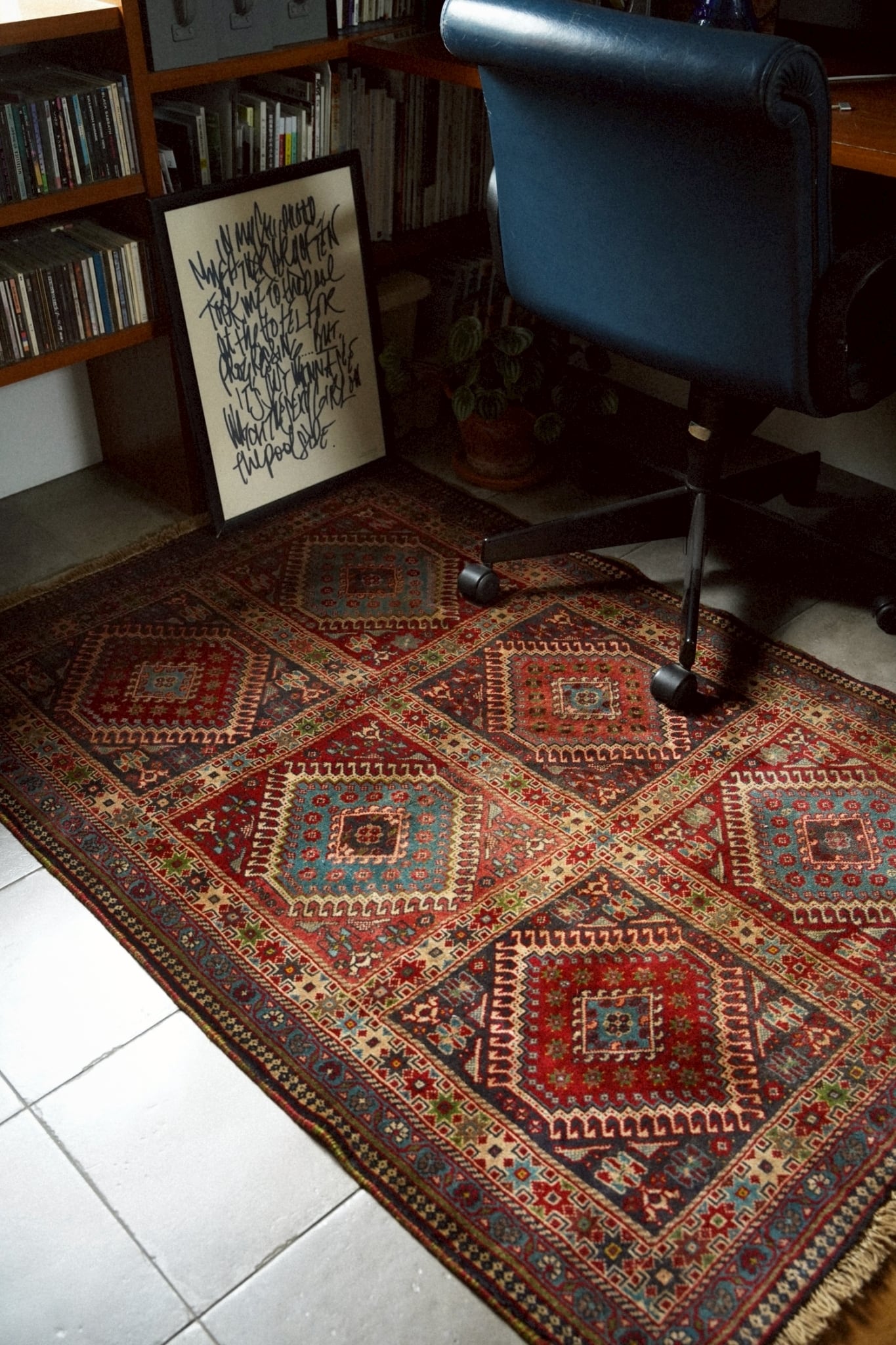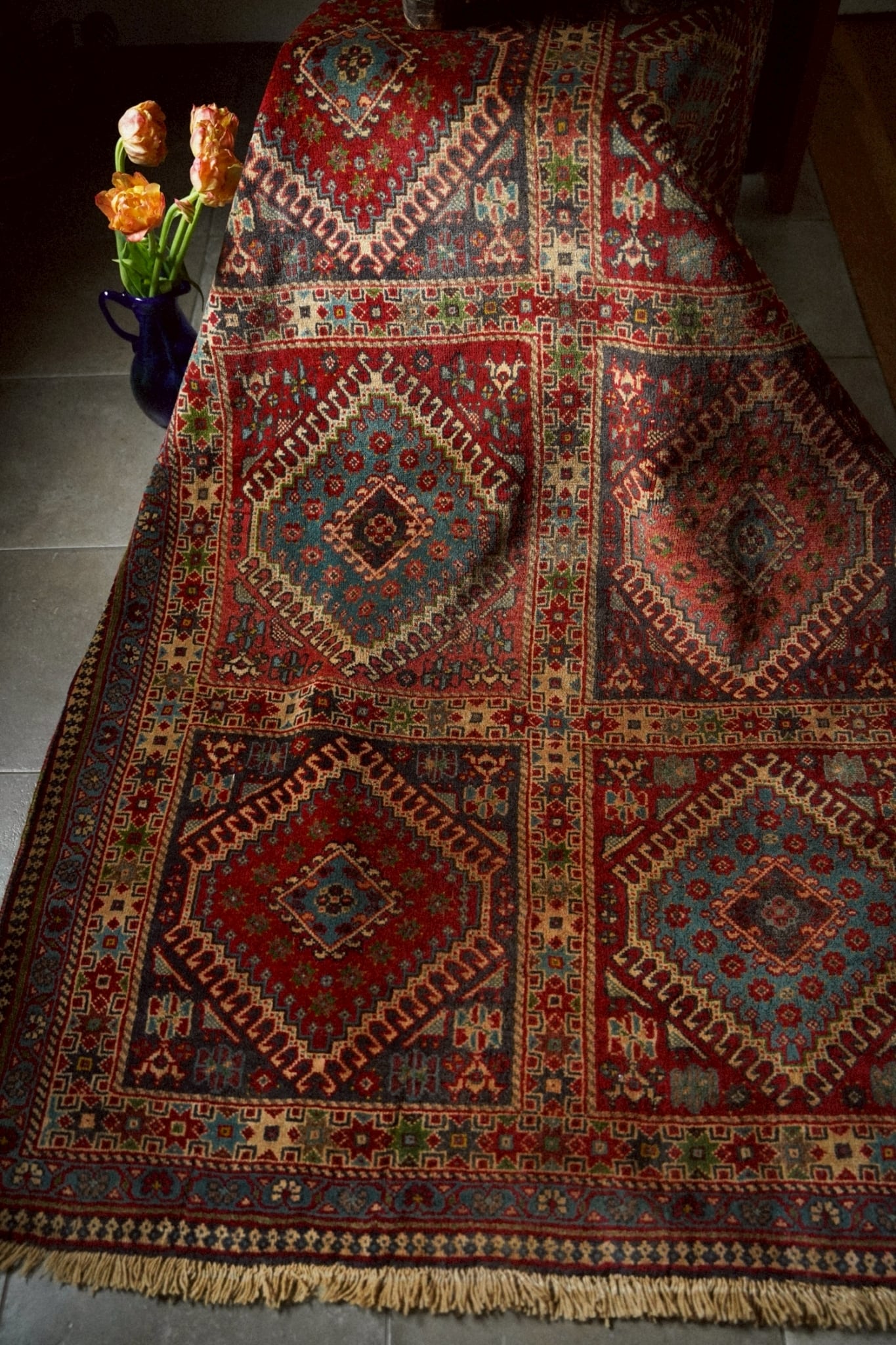 ヴィンテージラグならではの深みを増した色彩が、空間に自然と馴染みます。