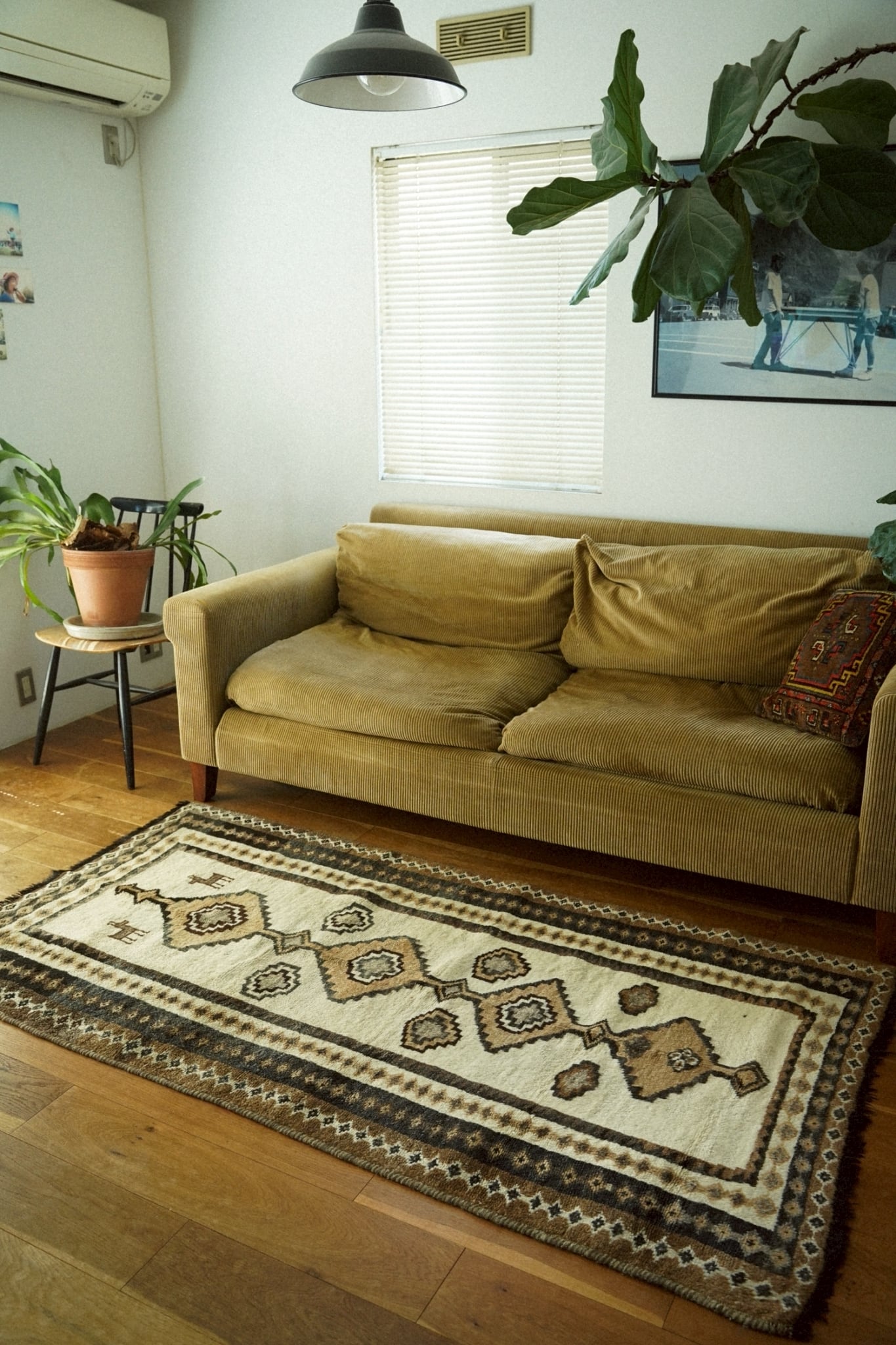 木の床やナチュラルインテリアとの相性も抜群で、温かみのある空間作りにピッタリの一枚です。