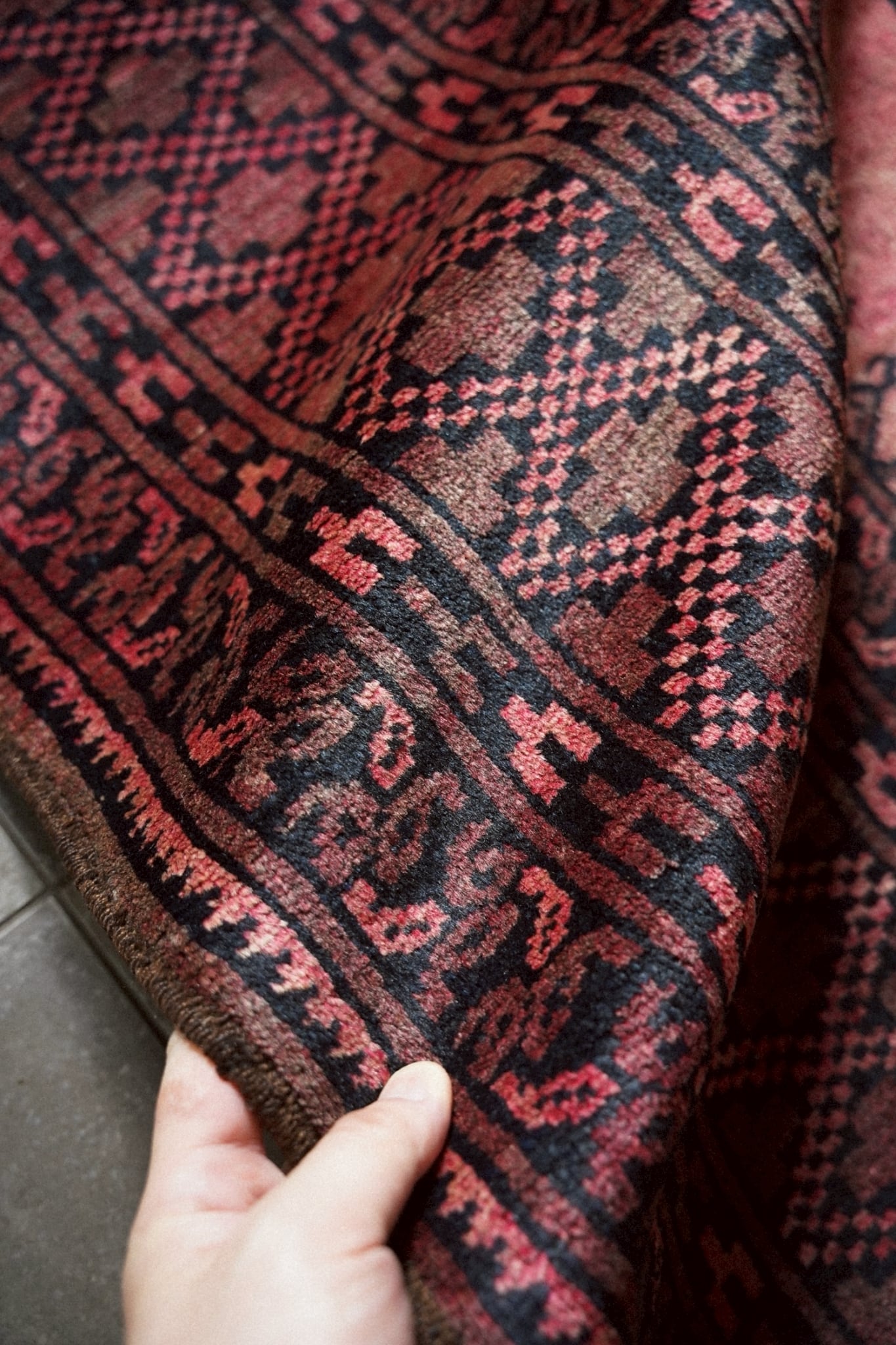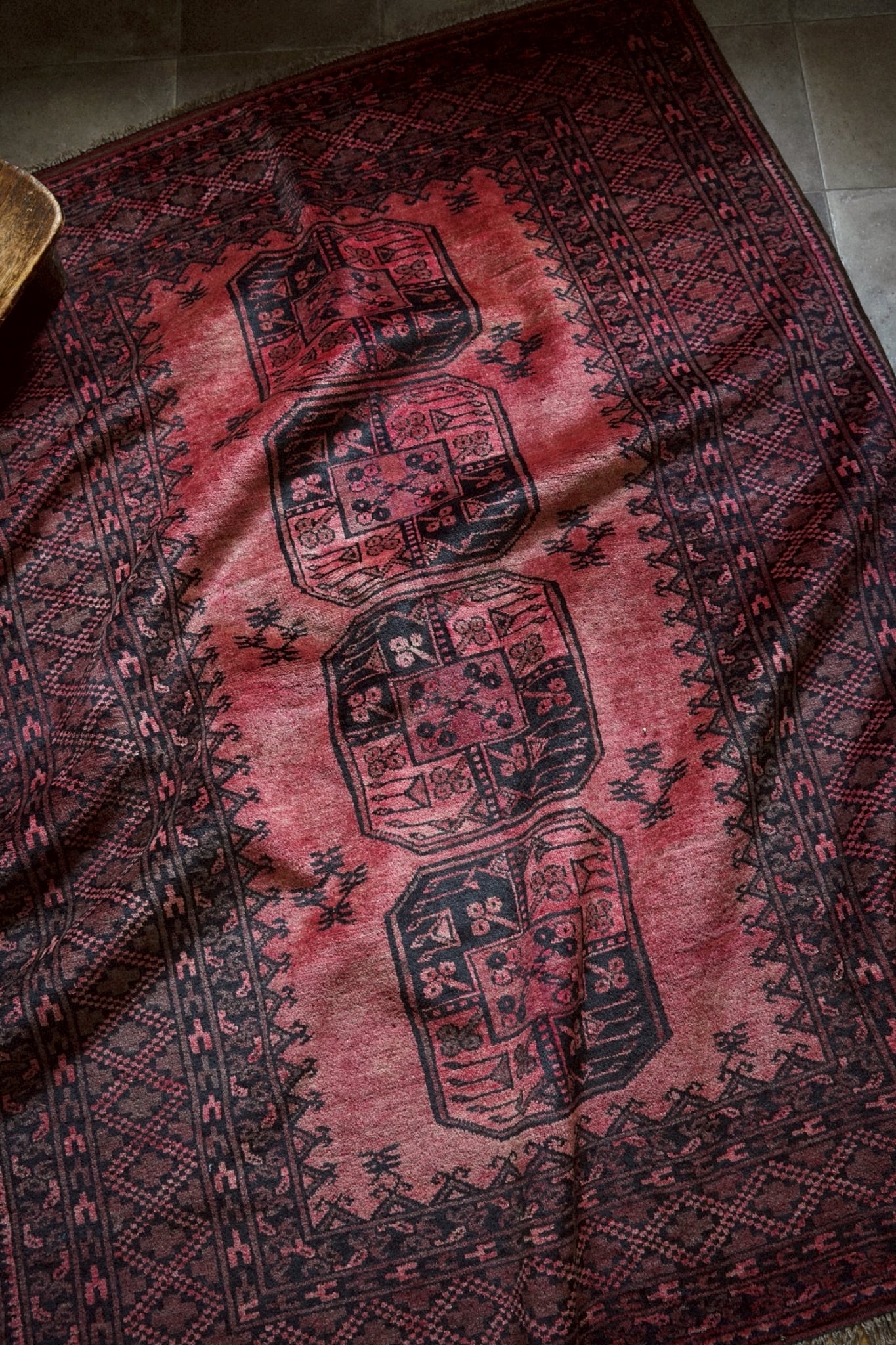 存在感のあるトルクメンレッドが、インテリアのアクセントとして空間を引き締めてくれる一枚です。